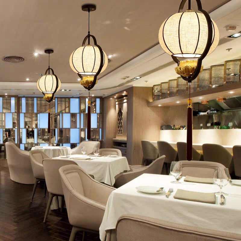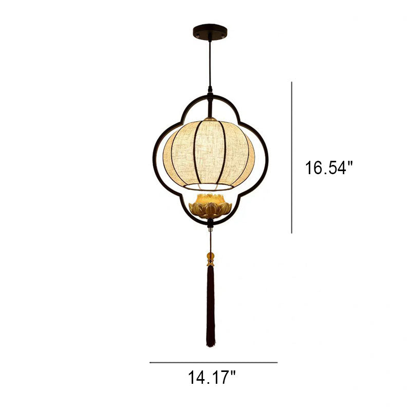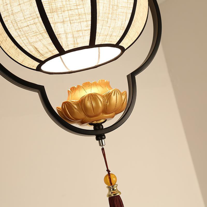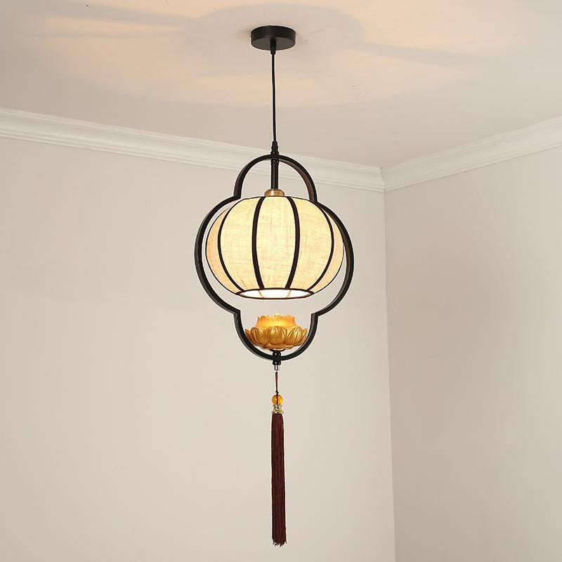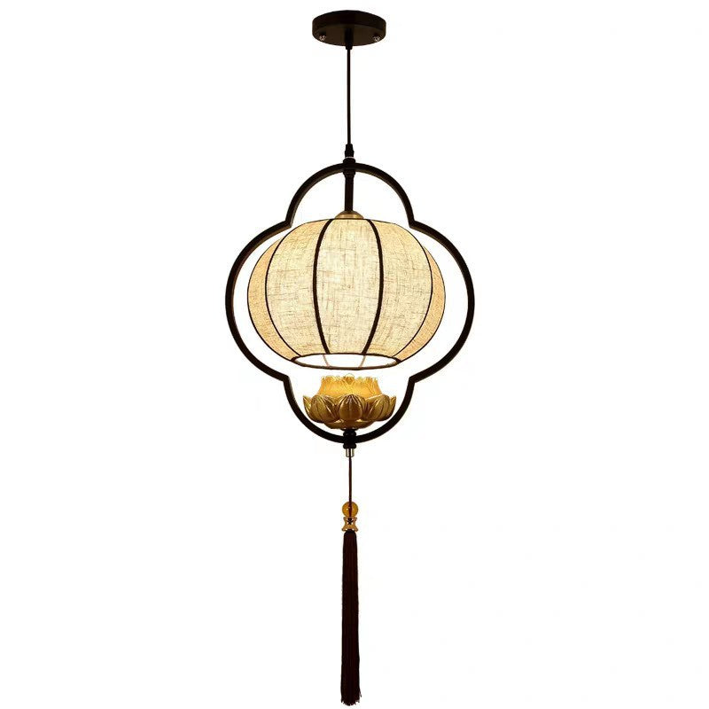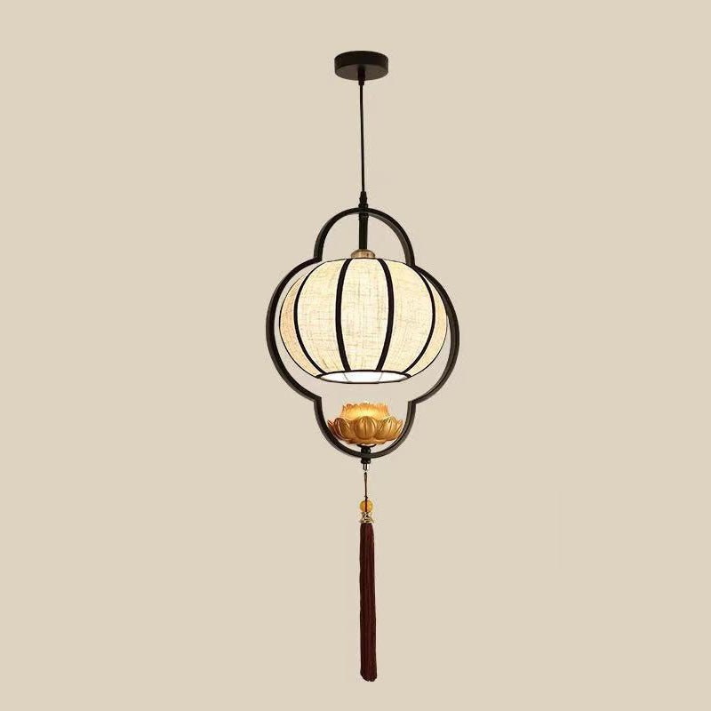 モダンチャイニーズランタンファブリックアイアン禅1灯ペンダントライト