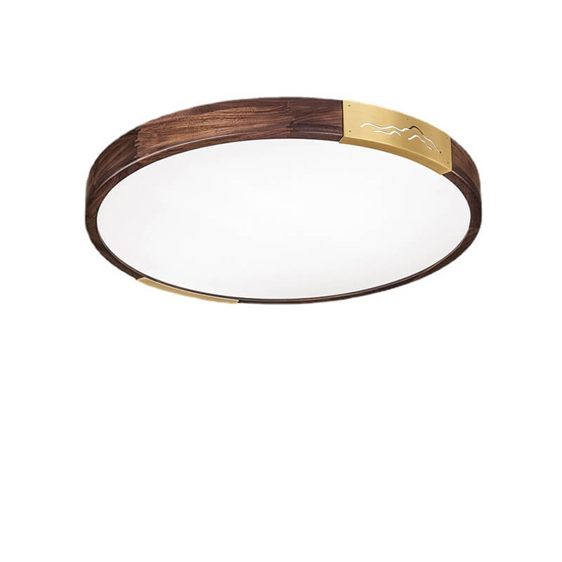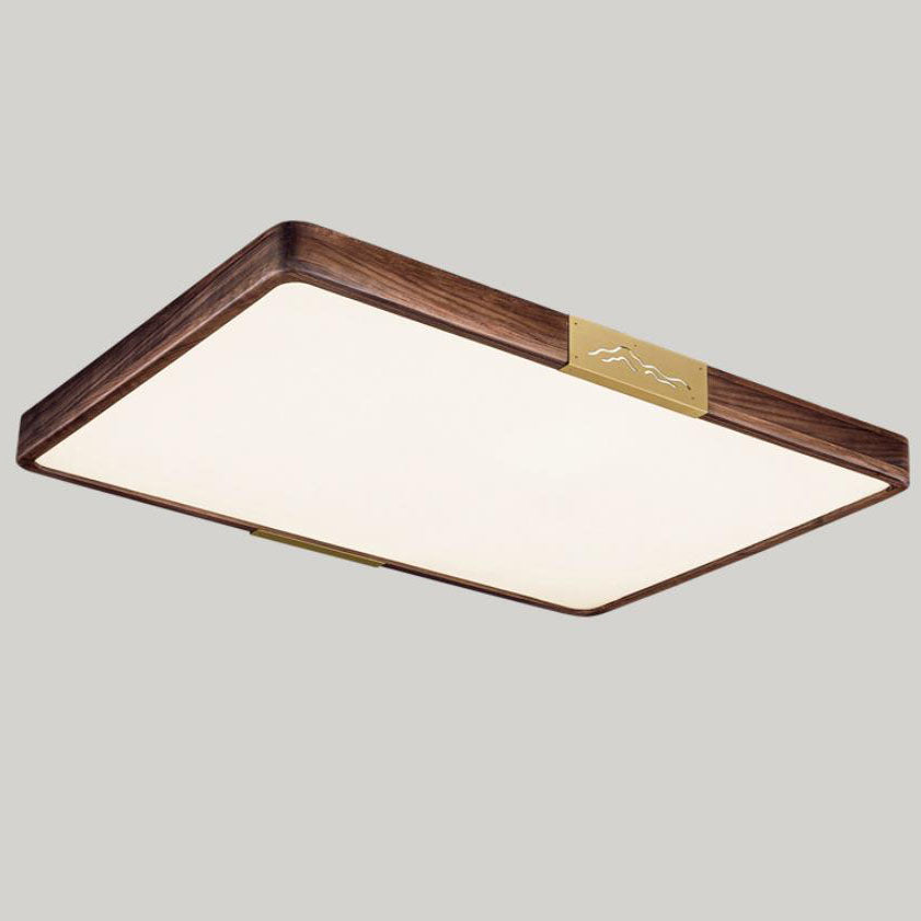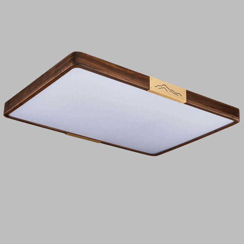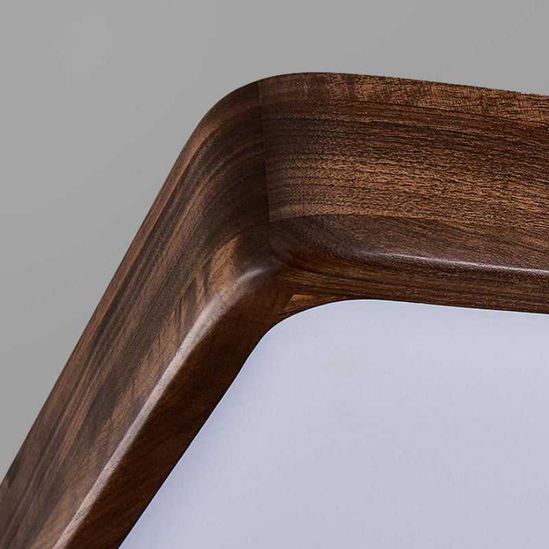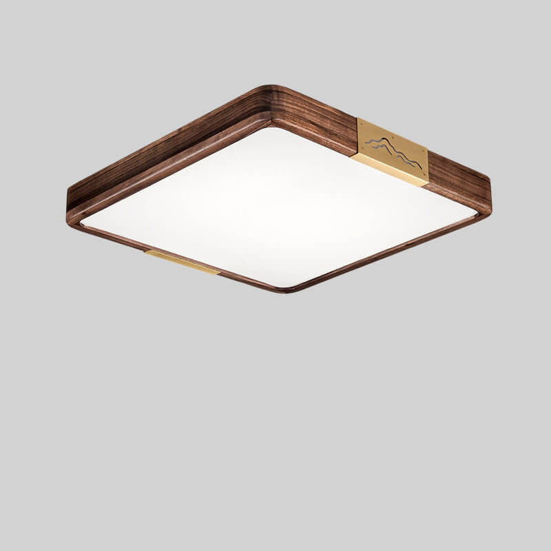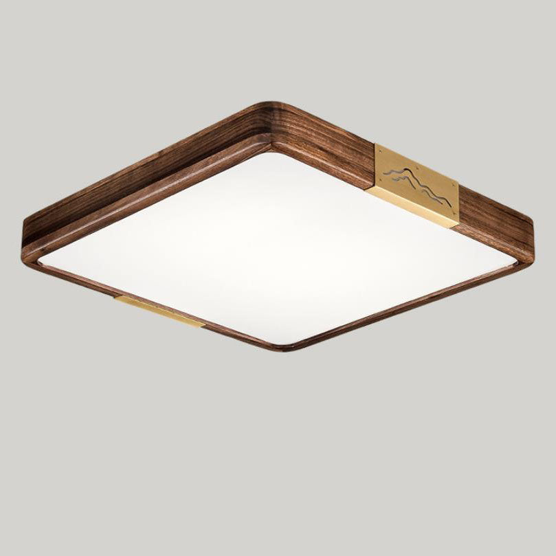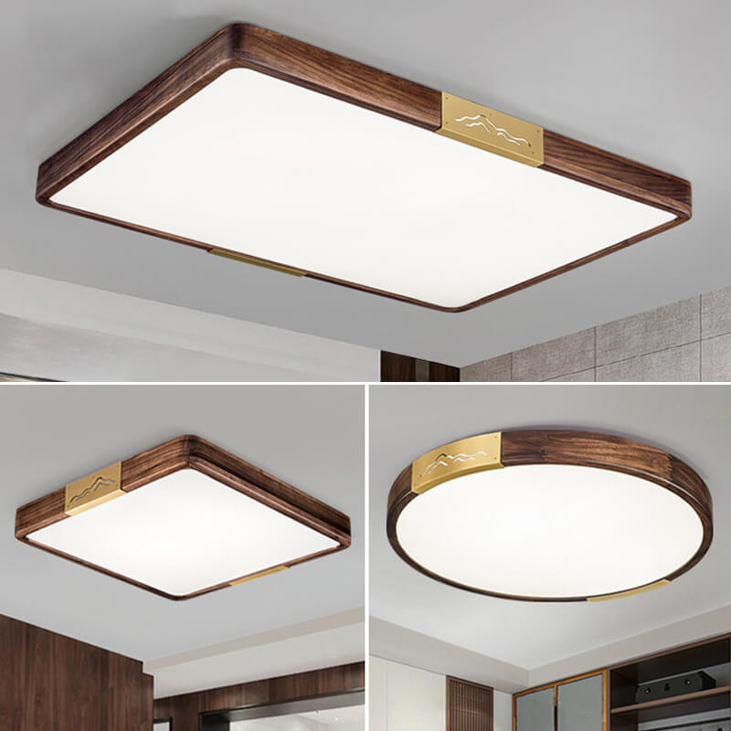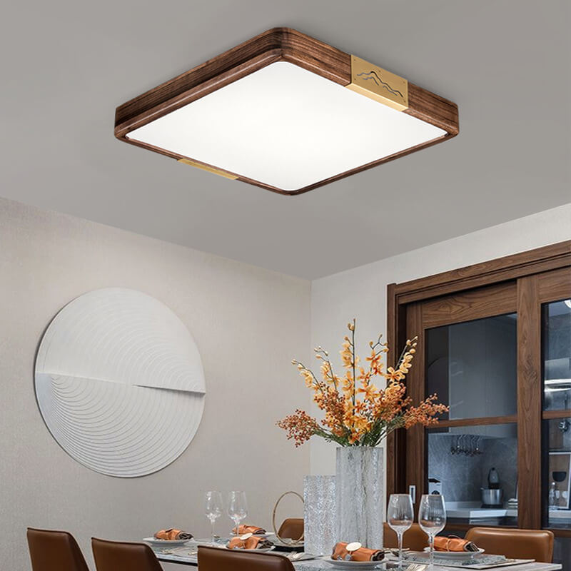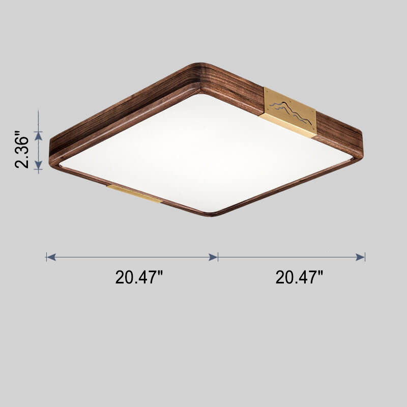モダンな中国製ウォールナット無垢材ラウンドスクエアジオメトリLEDフラッシュマウントシーリングライト