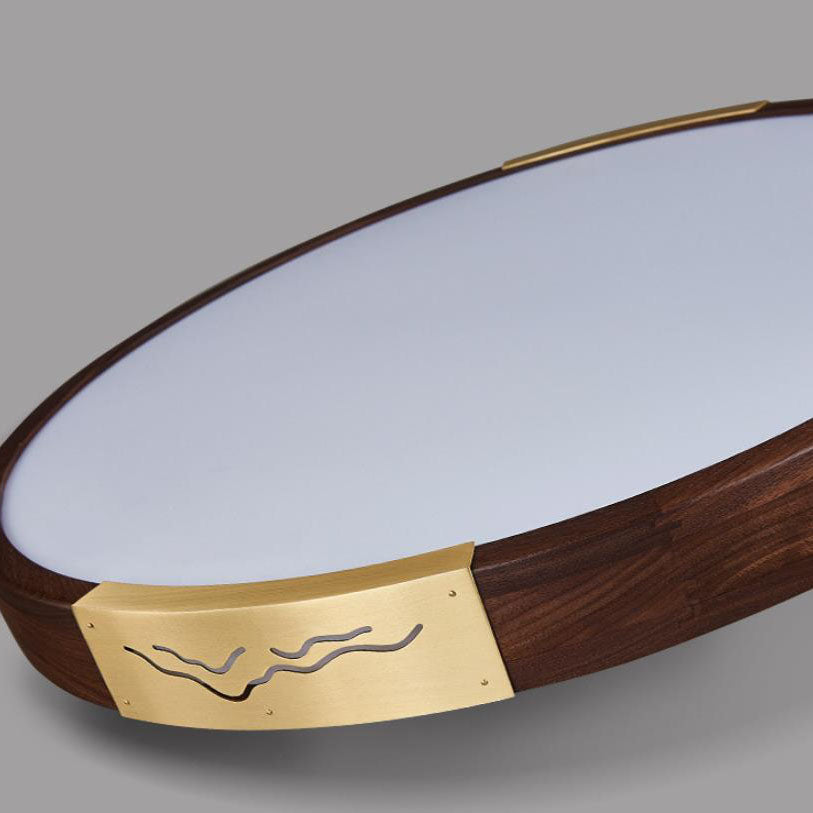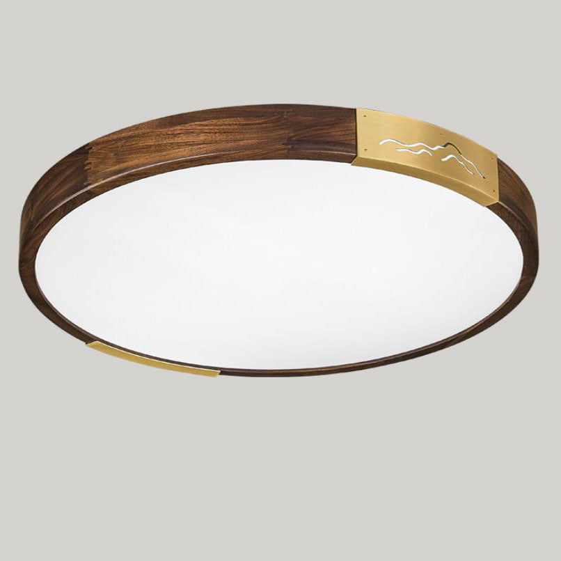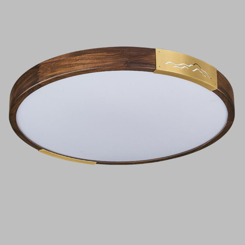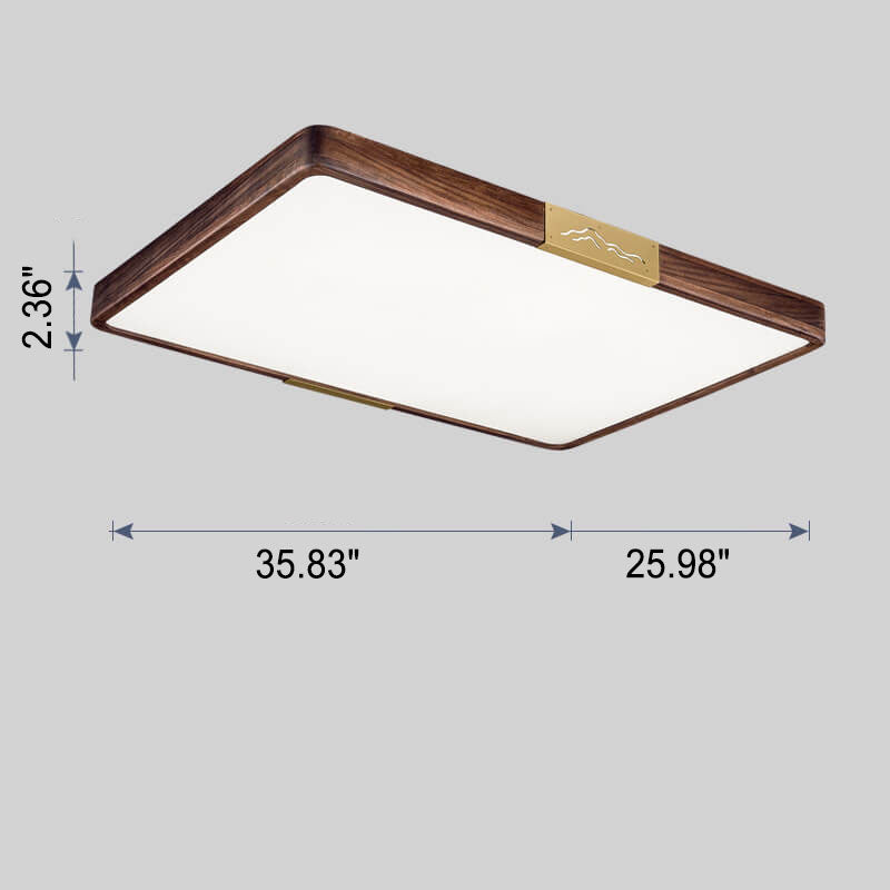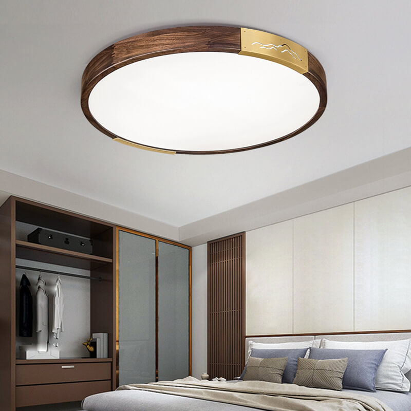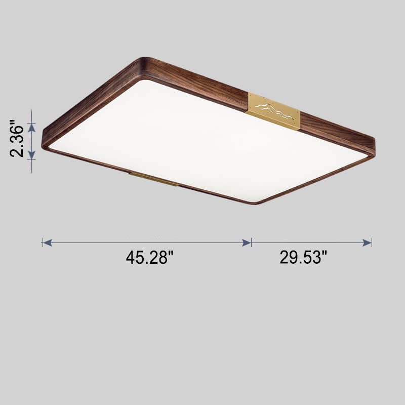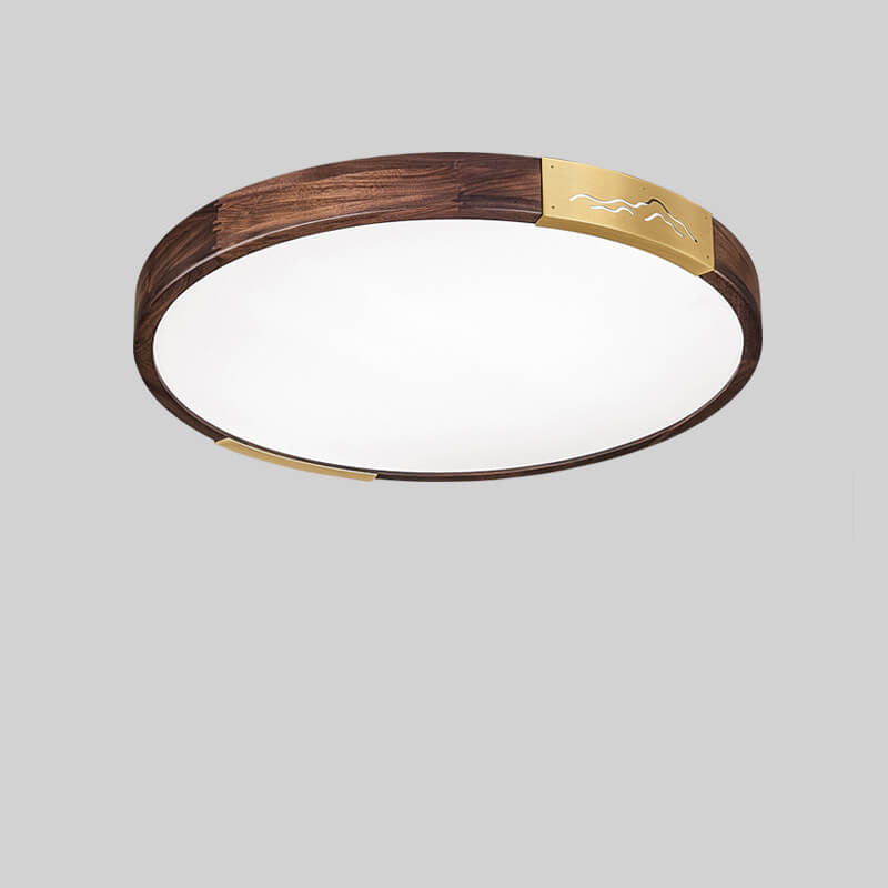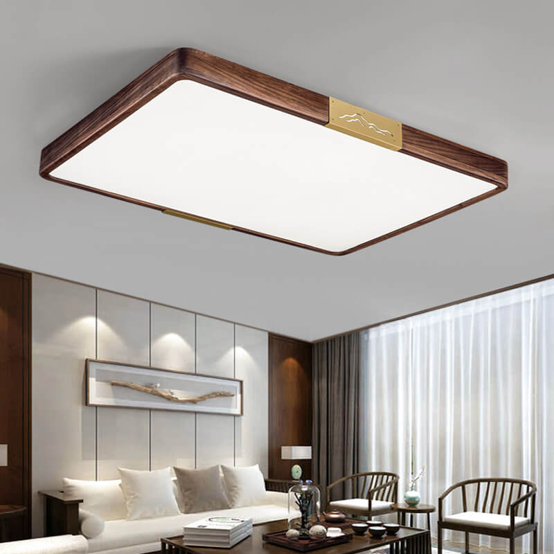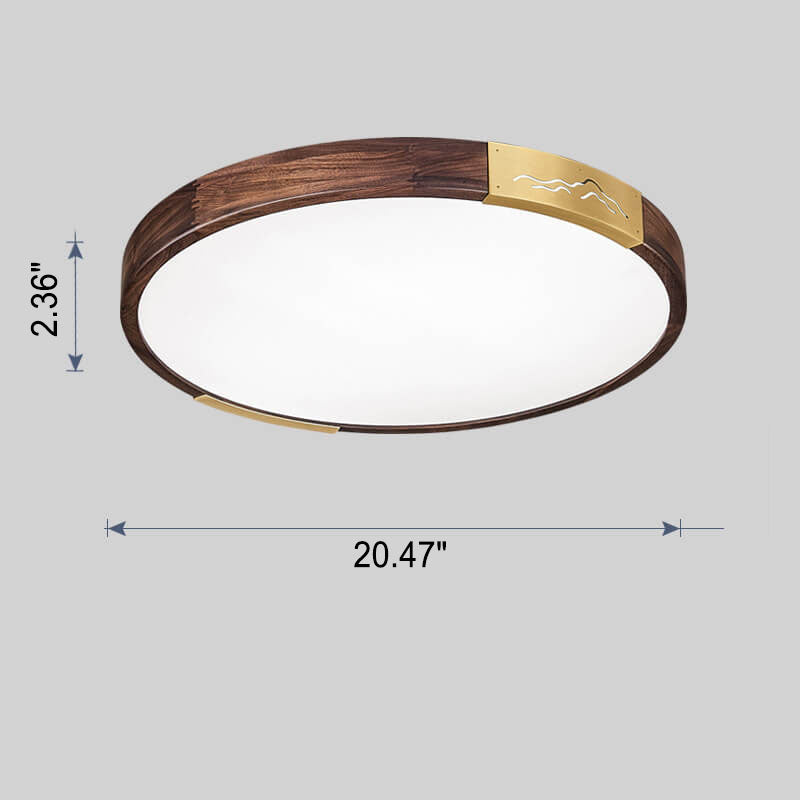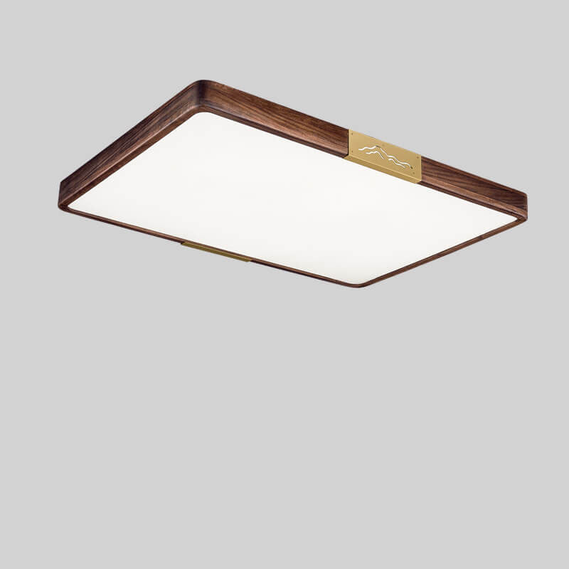 モダンな中国製ウォールナット無垢材ラウンドスクエアジオメトリLEDフラッシュマウントシーリングライト