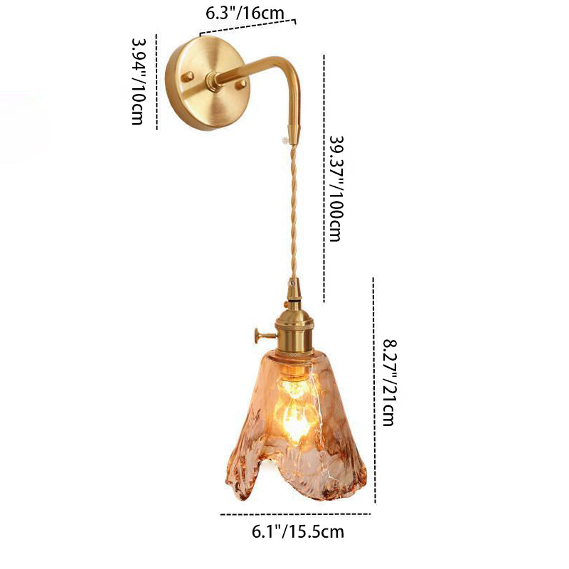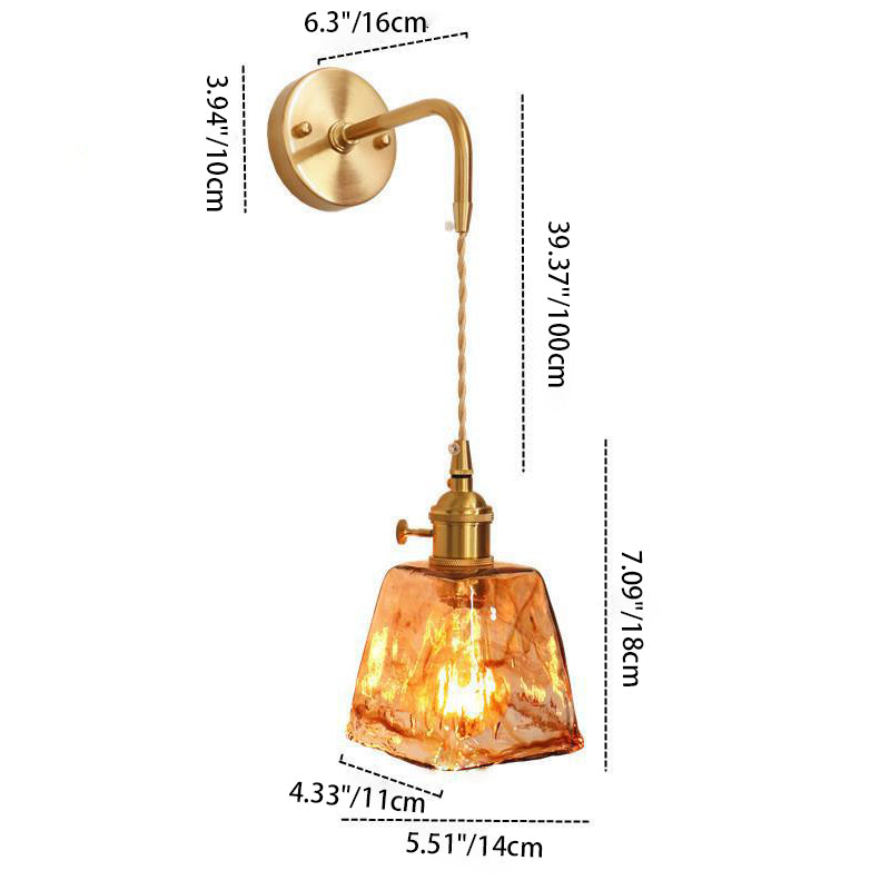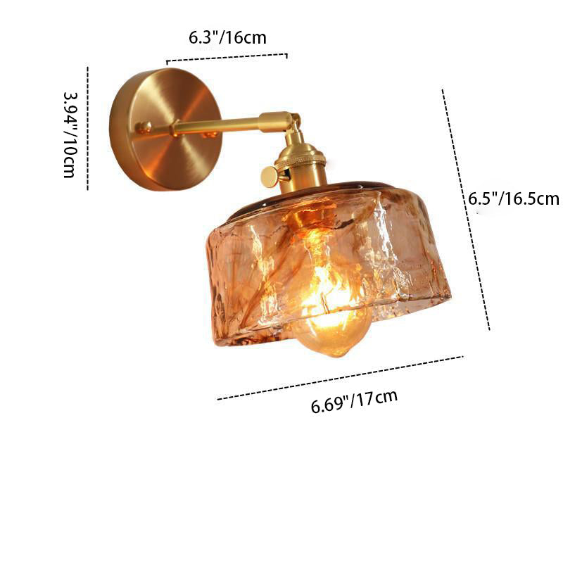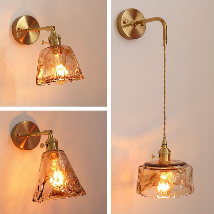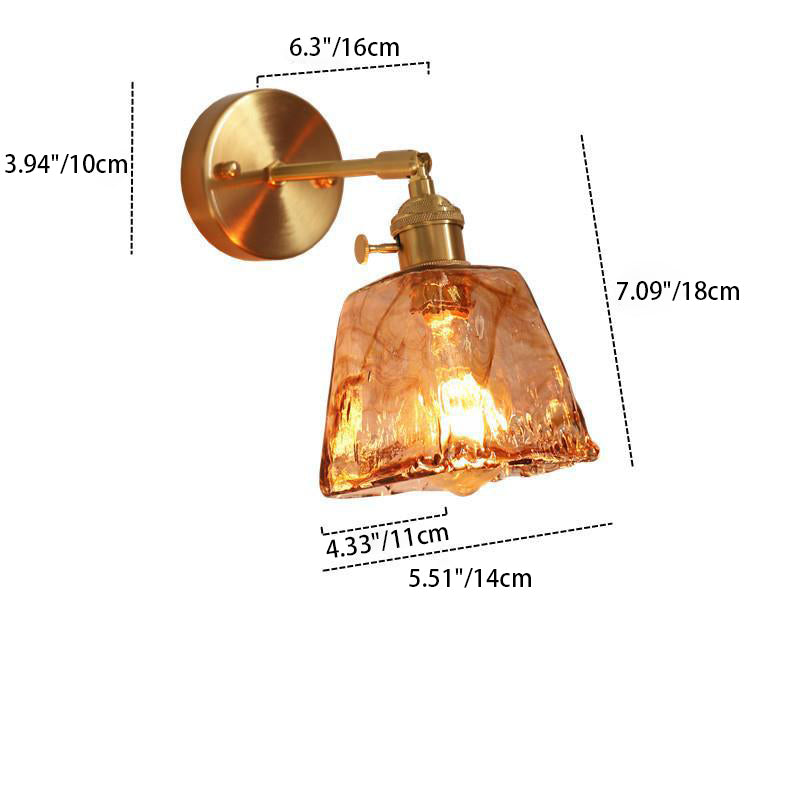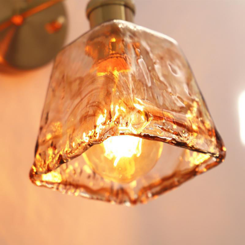 モダンで折衷的なアンバーガラスの幾何学模様の1灯壁取り付け用燭台ランプ(リビングルーム用)