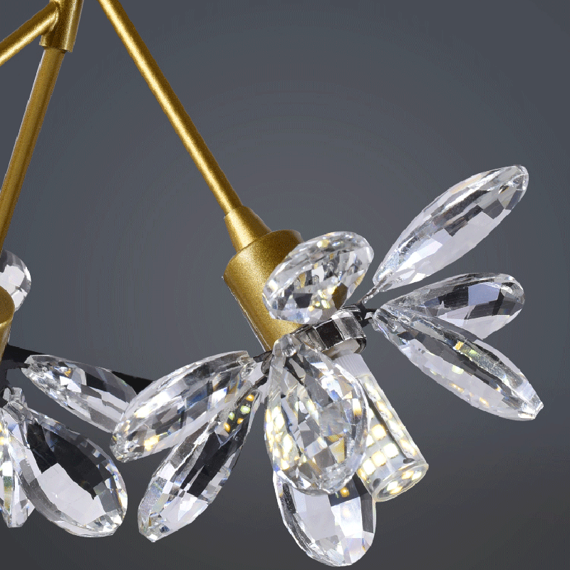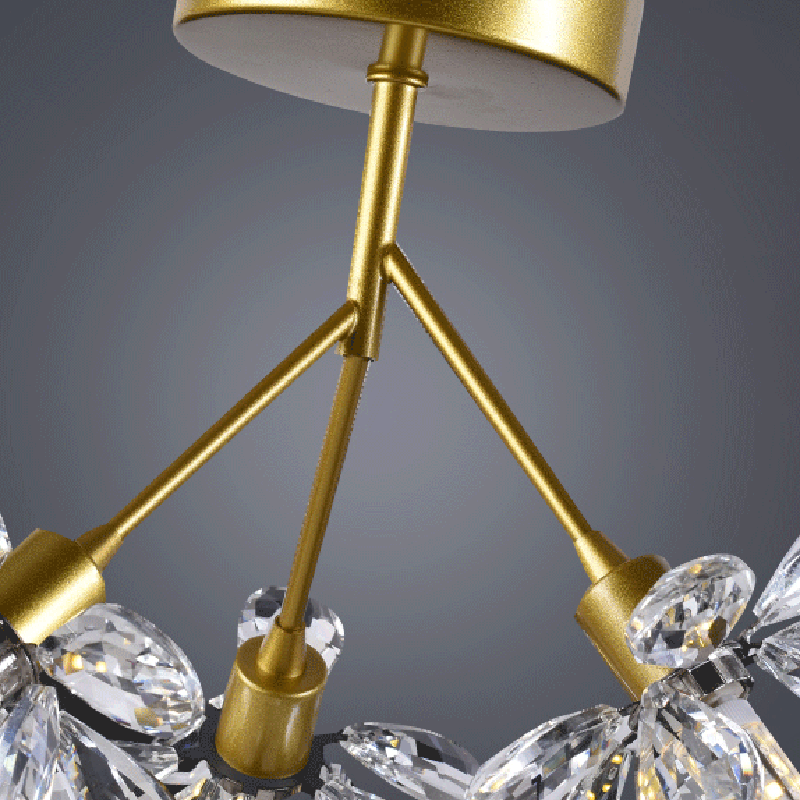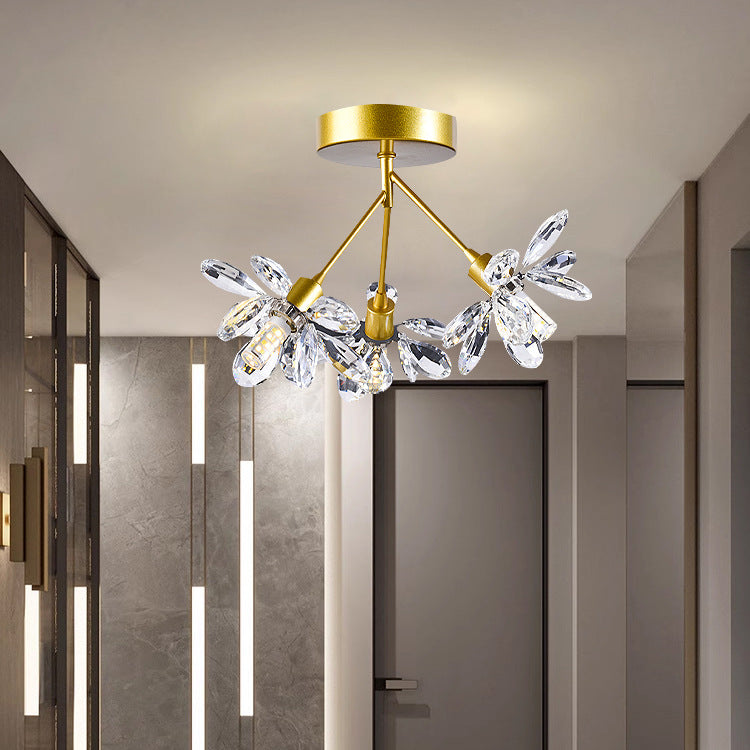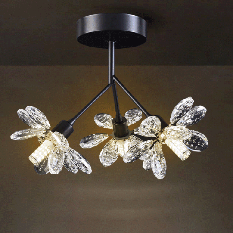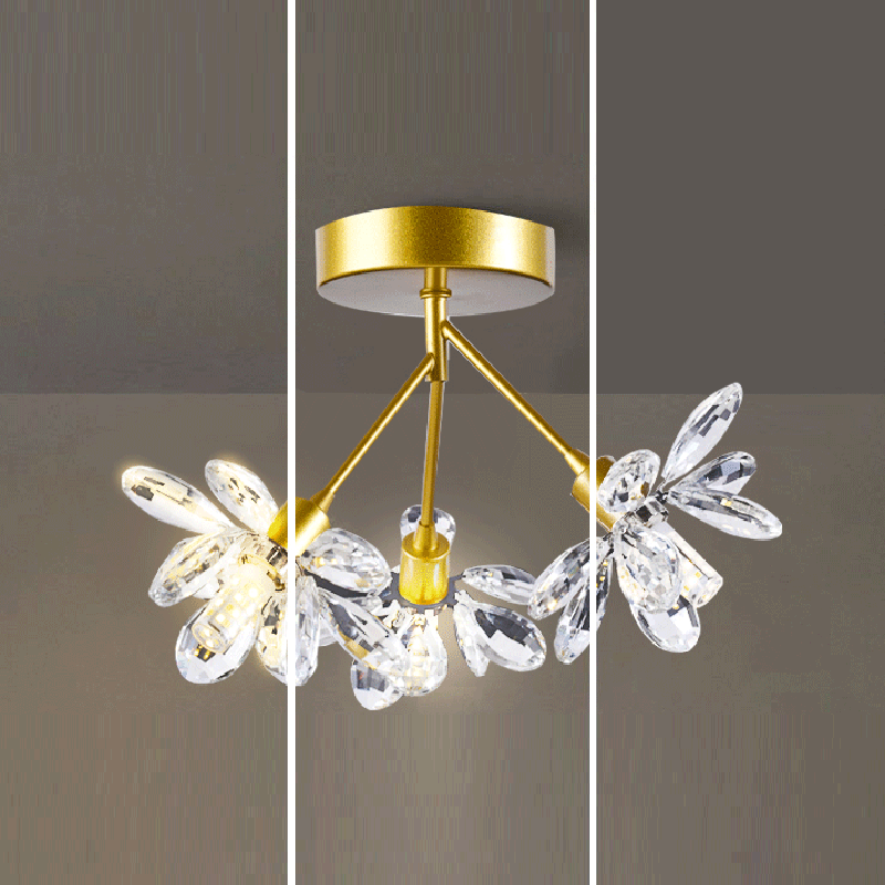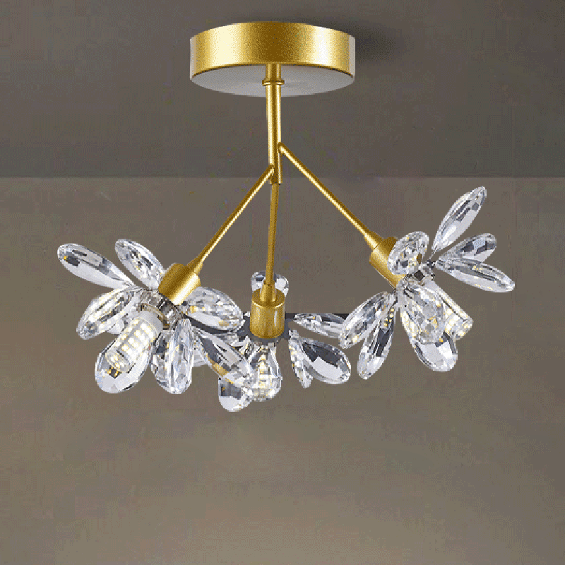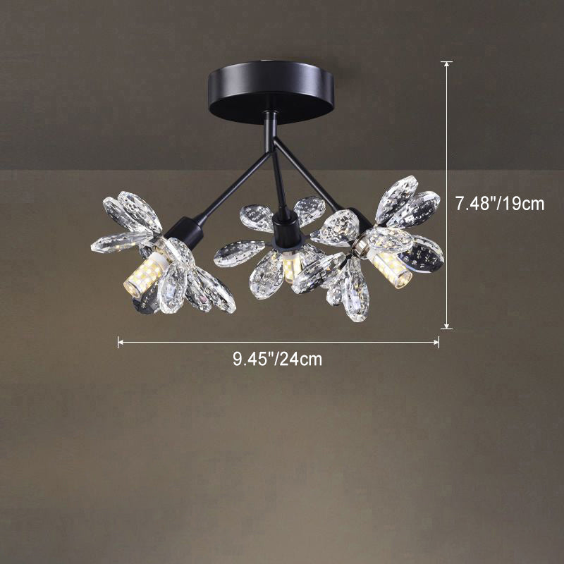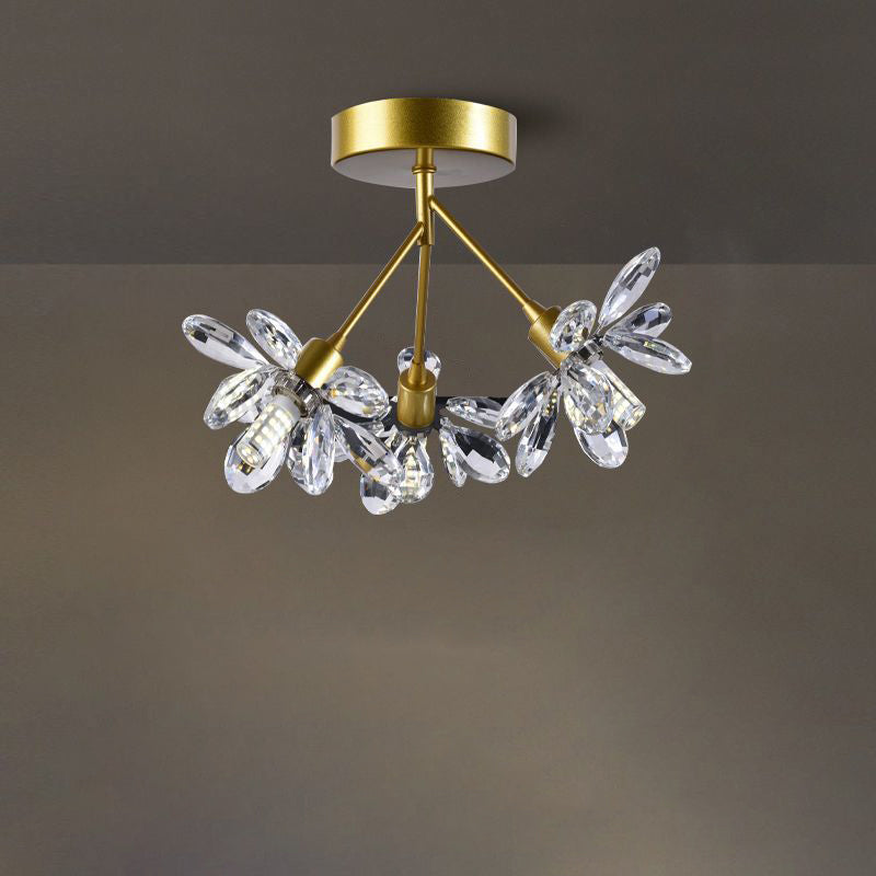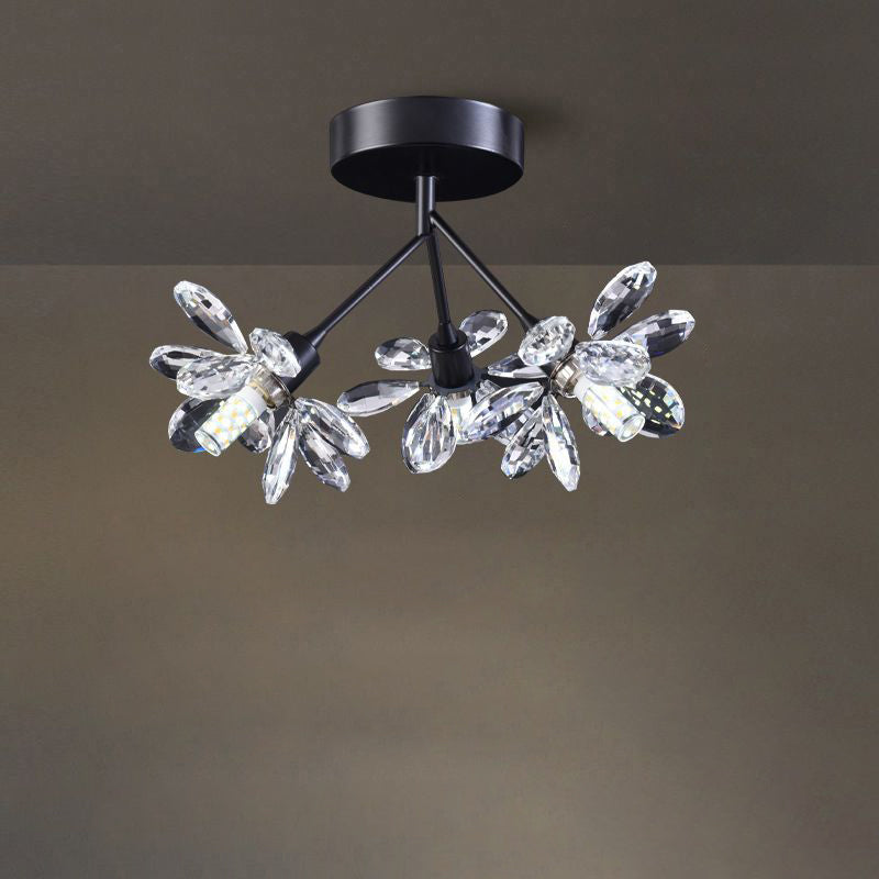 モダンで豪華なブランチラウンドクリスタルアイアン3ライトセミフラッシュマウントシーリングライト寝室用