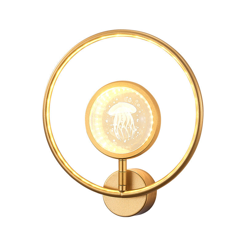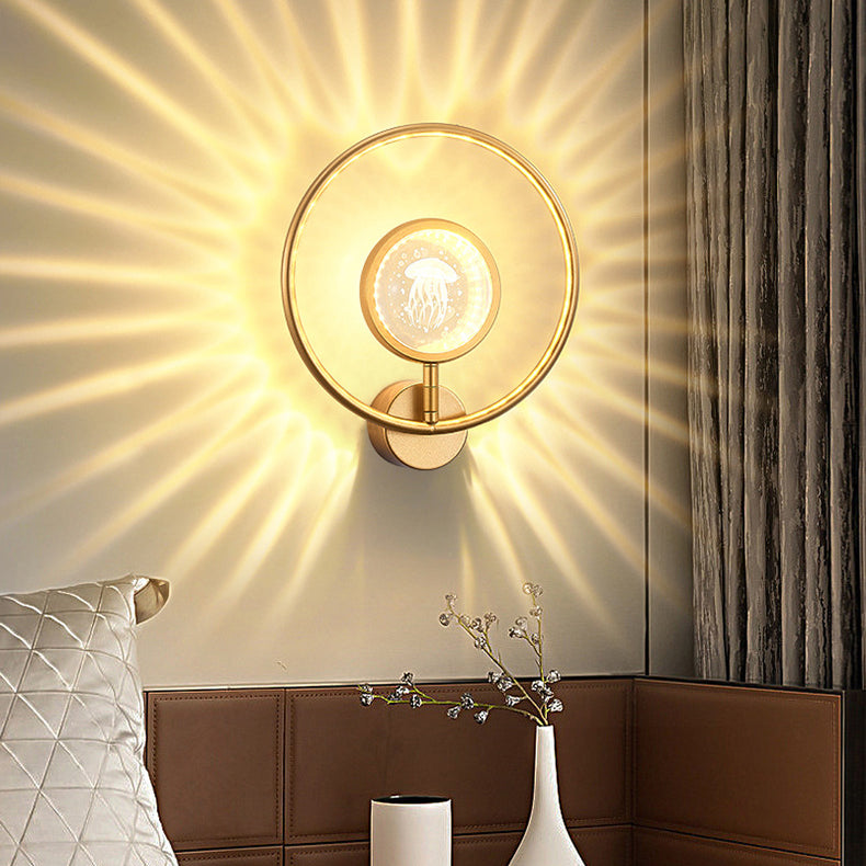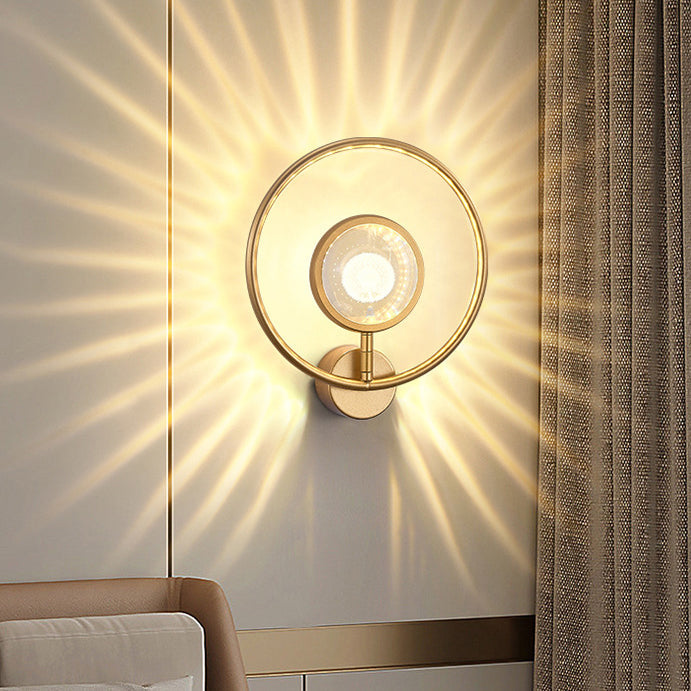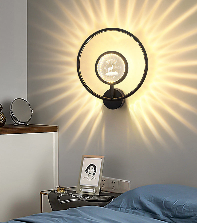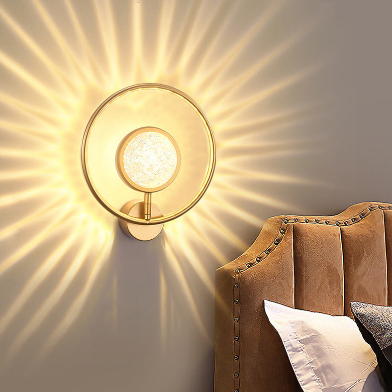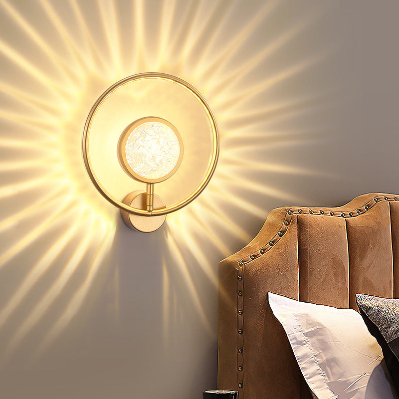寝室用モダンで豪華な円形クリスタルアイアンLED壁取り付け用ランプ