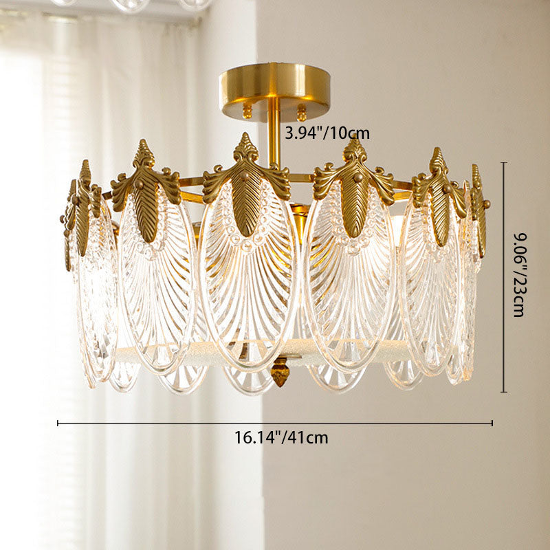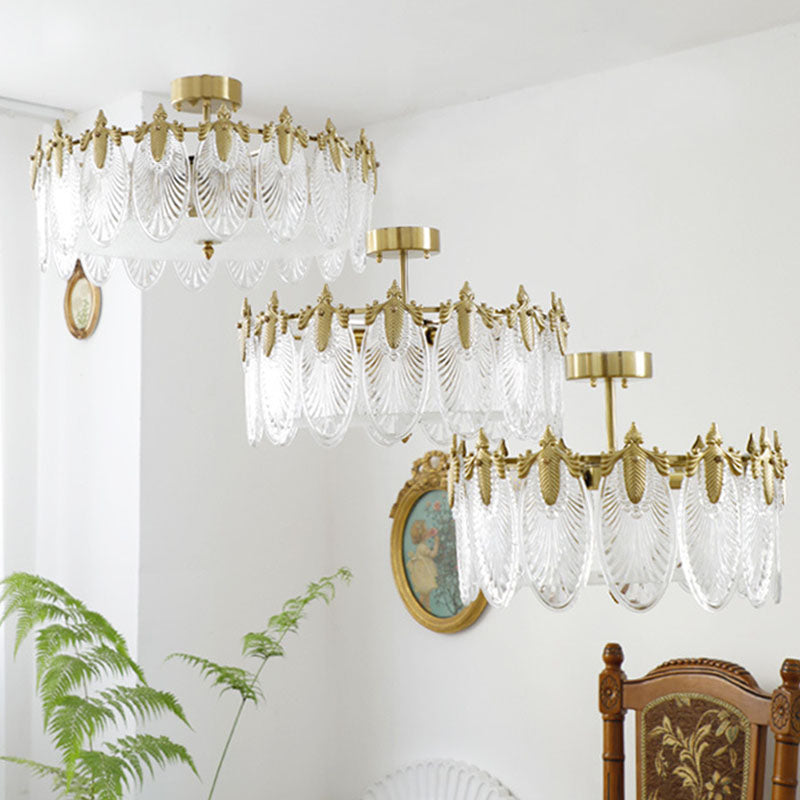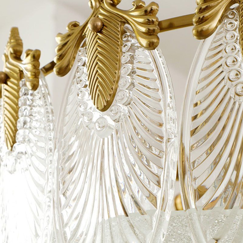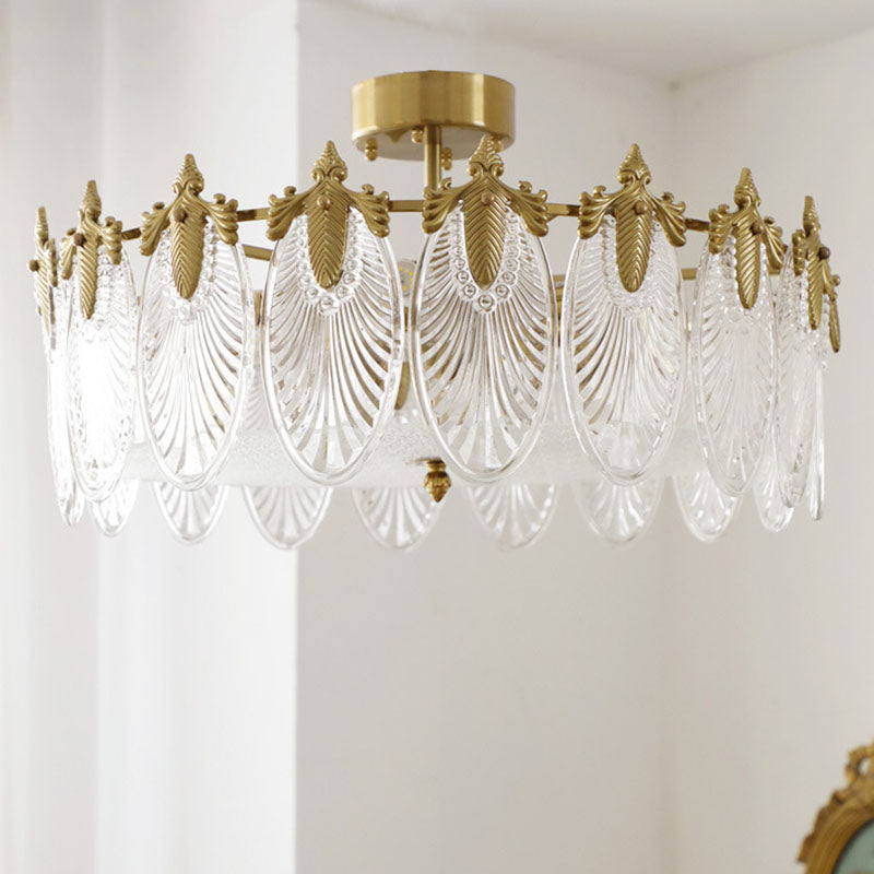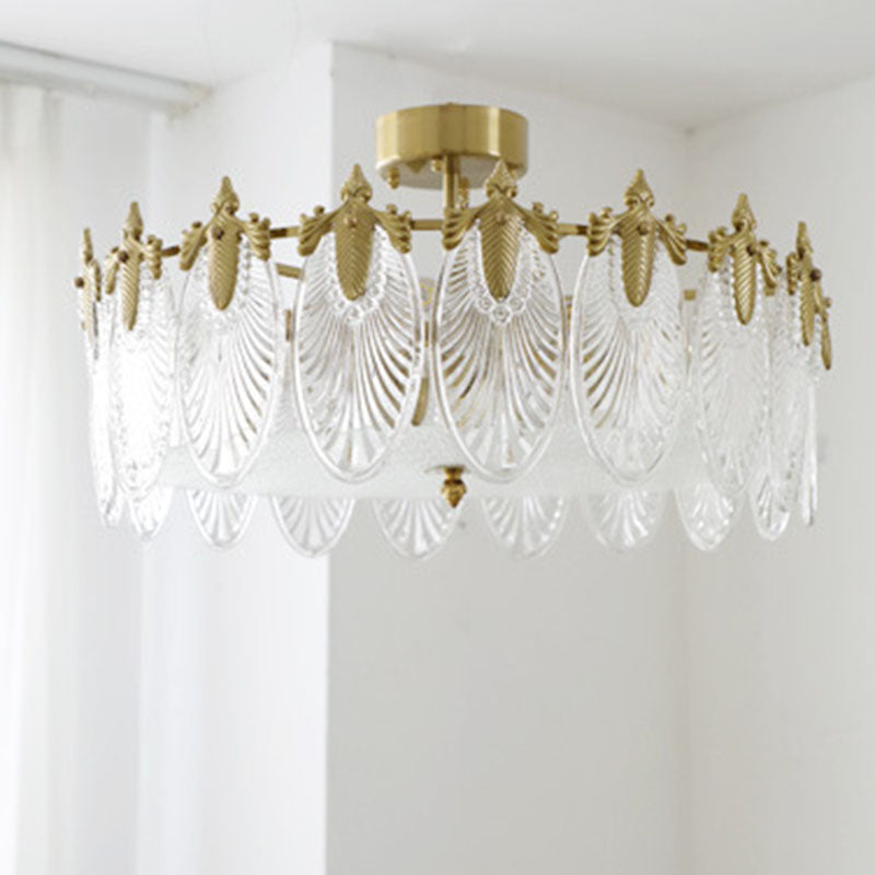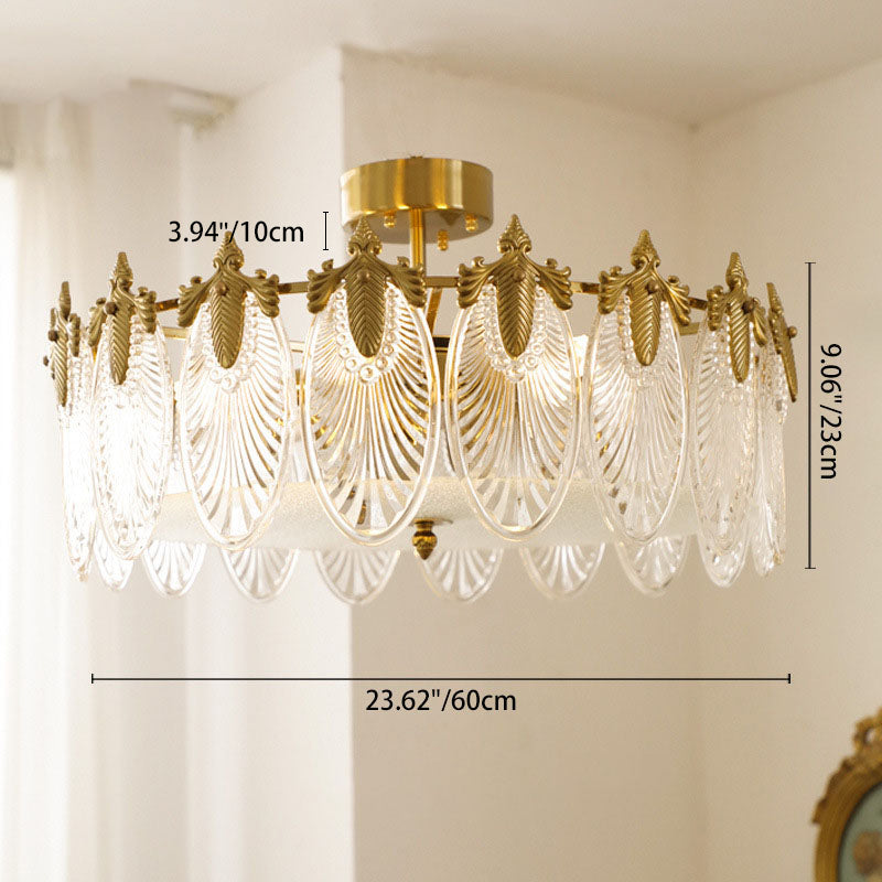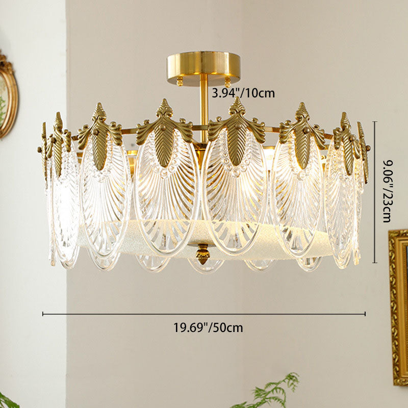 モダンで豪華な銅と鉄のガラスの孔雀の丸型5/6/8ライトセミフラッシュマウント天井ライトリビングルーム用