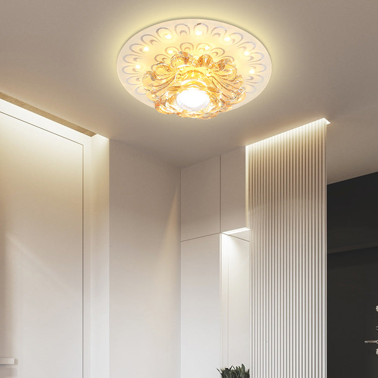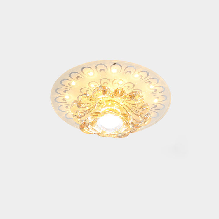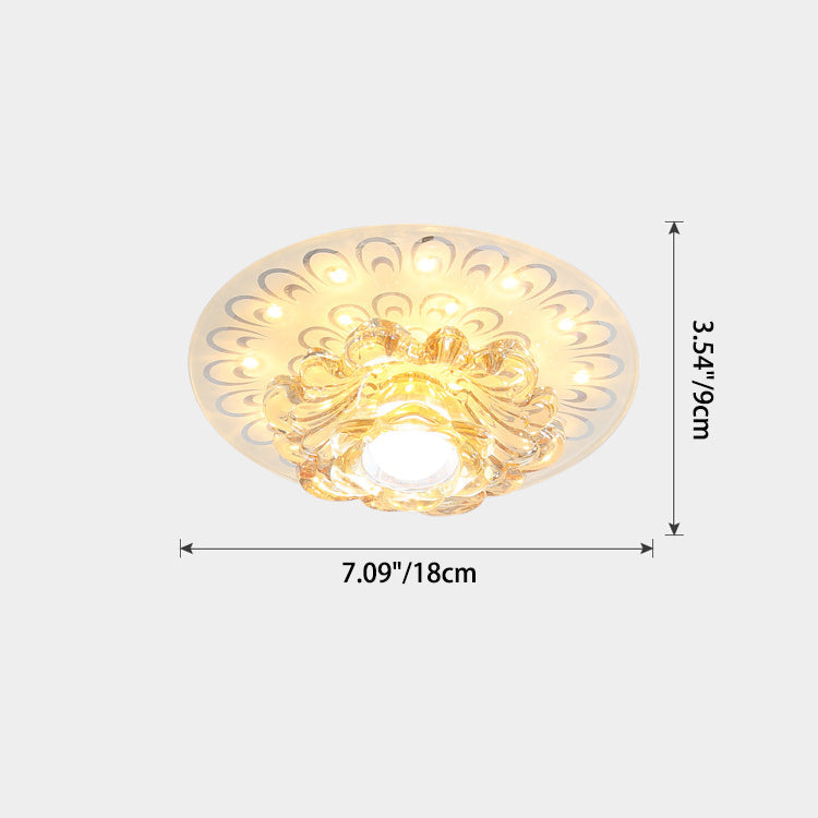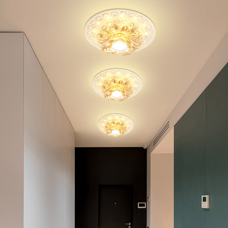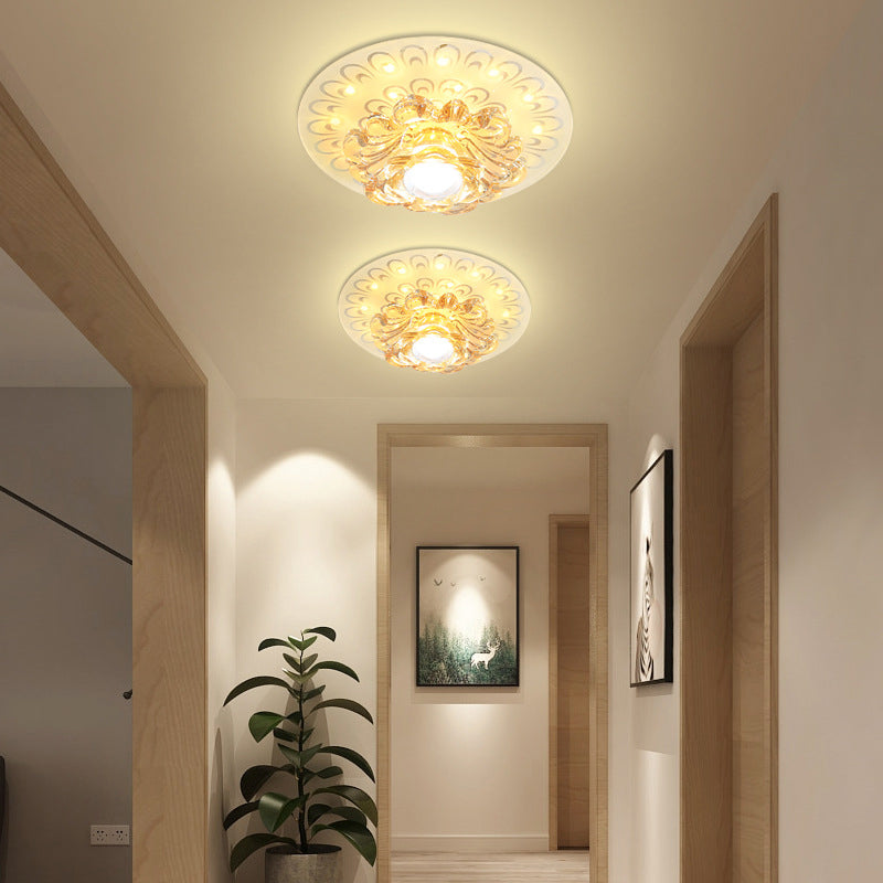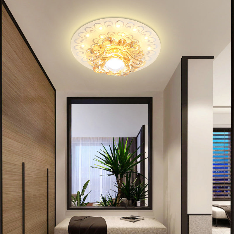 モダンで豪華なクリスタルガラスラウンドフラワーLEDフラッシュマウント天井照明廊下用
