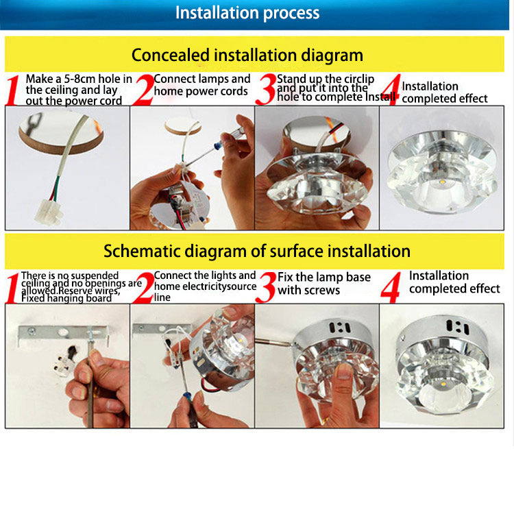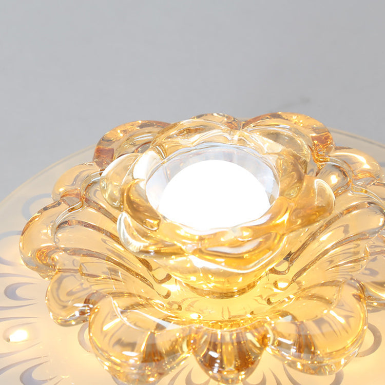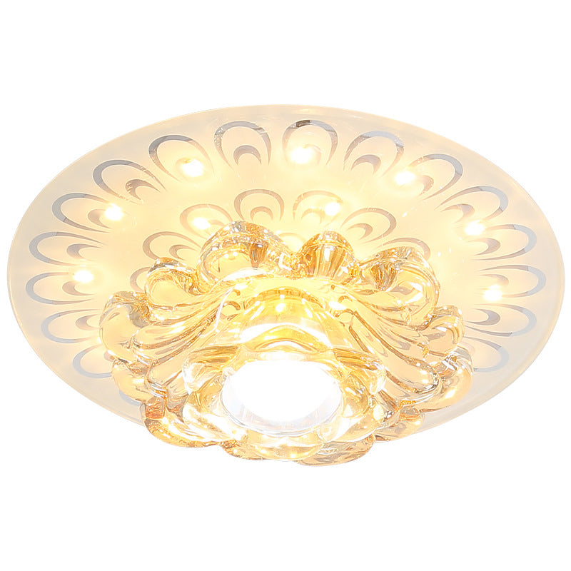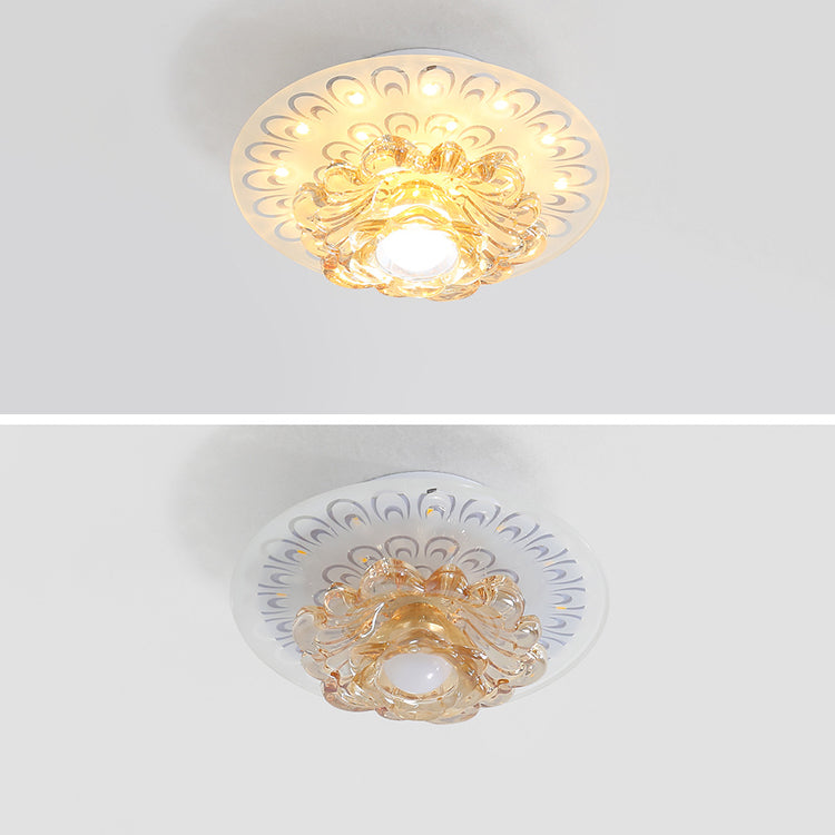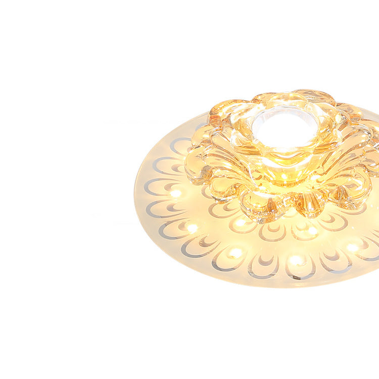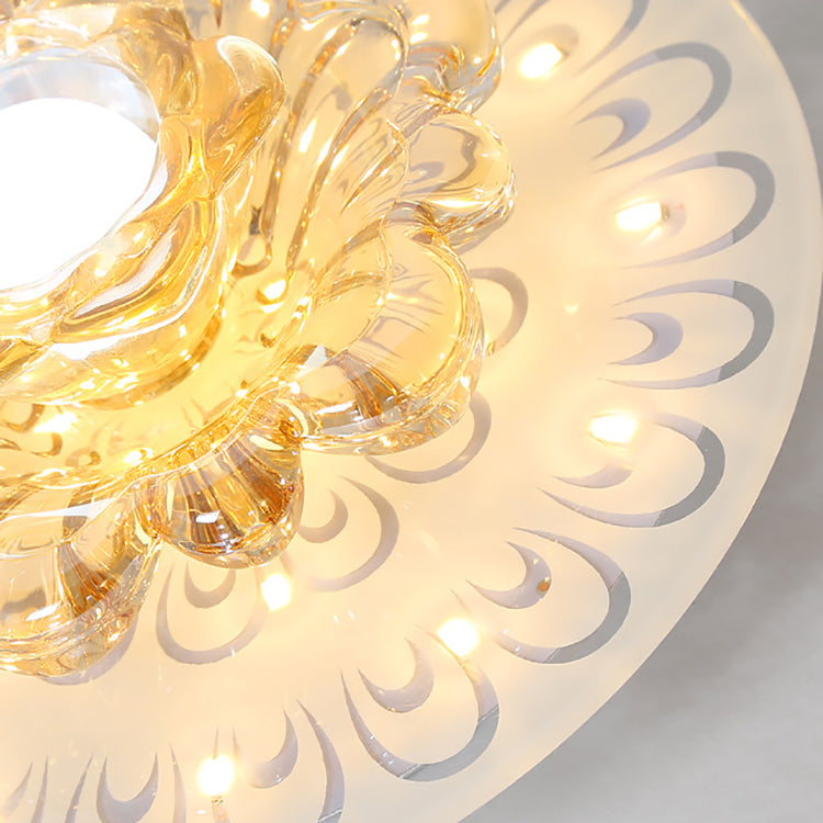 モダンで豪華なクリスタルガラスラウンドフラワーLEDフラッシュマウント天井照明廊下用
