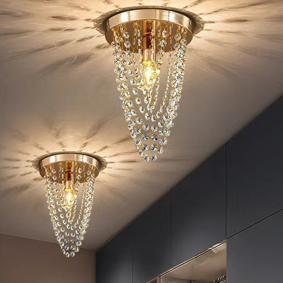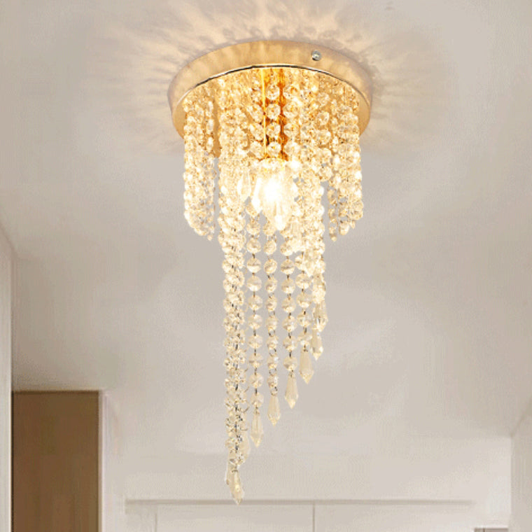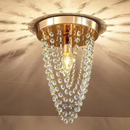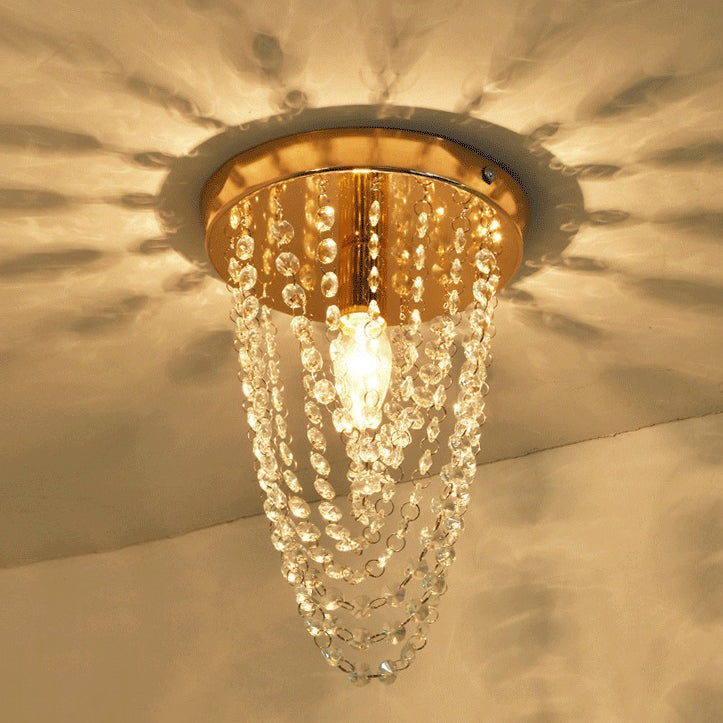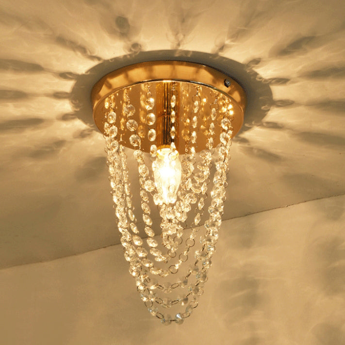 モダンで豪華なクリスタルアイアンビーズ1灯セミフラッシュマウント天井照明(廊下用)