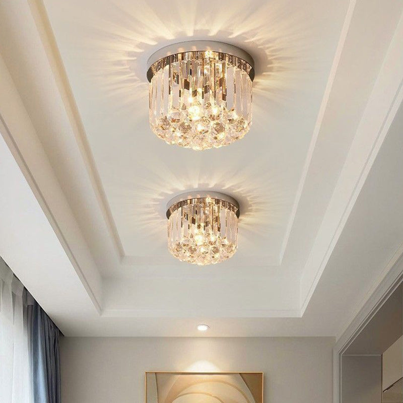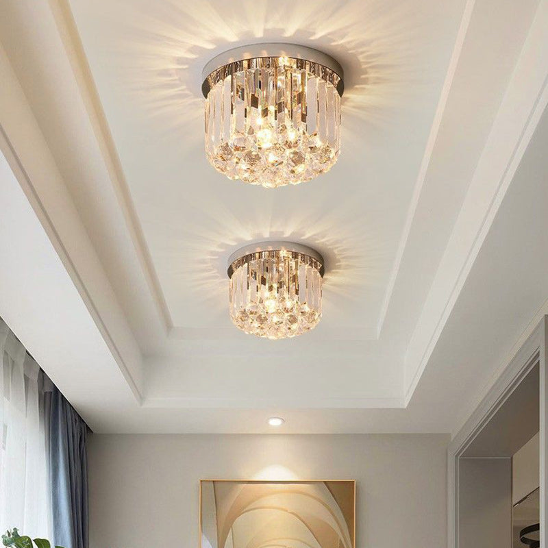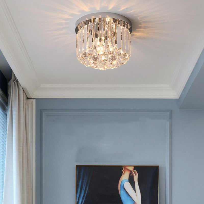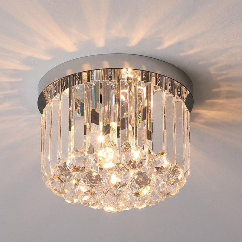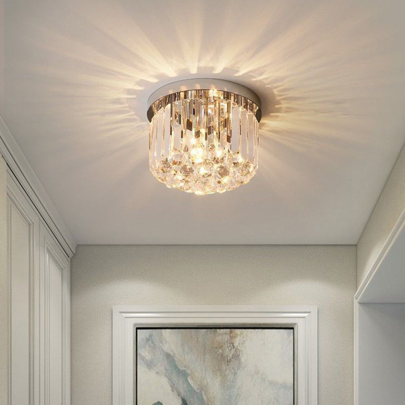 モダンで豪華なシリンダーステンレススチールクリスタル1ライトセミフラッシュマウントシーリングライトリビングルーム用