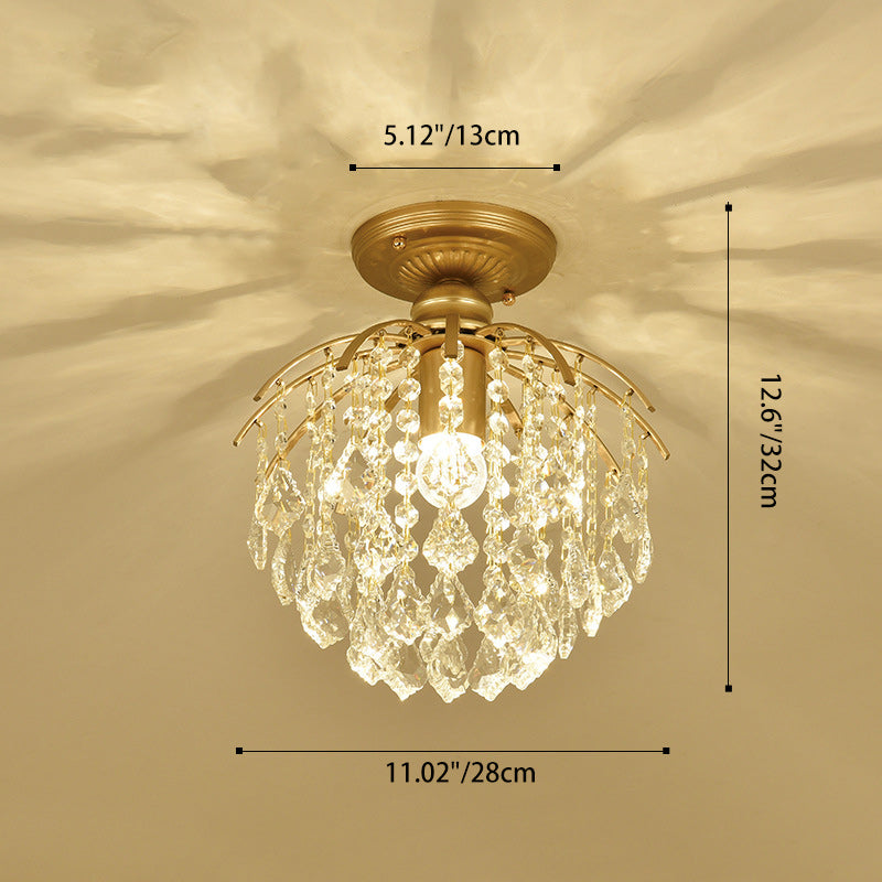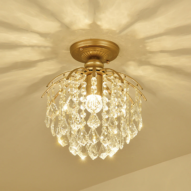 モダンで豪華なアイアンクリスタルブランチ1ライトセミフラッシュマウントシーリングライトリビングルーム用