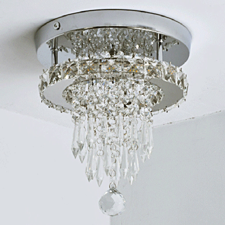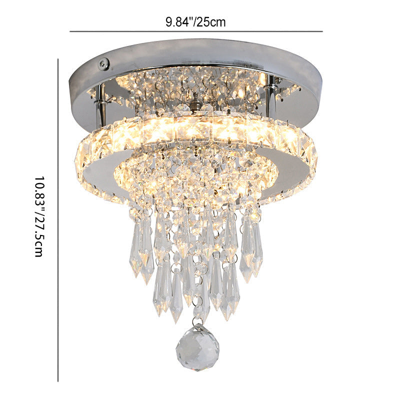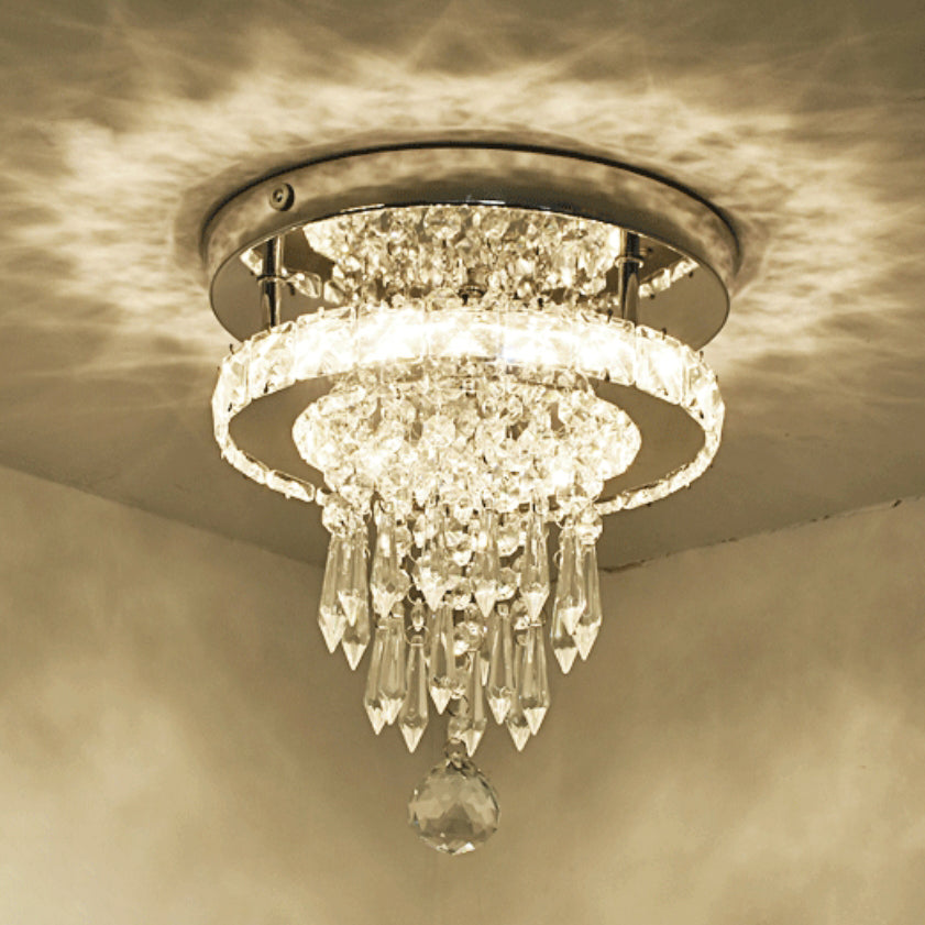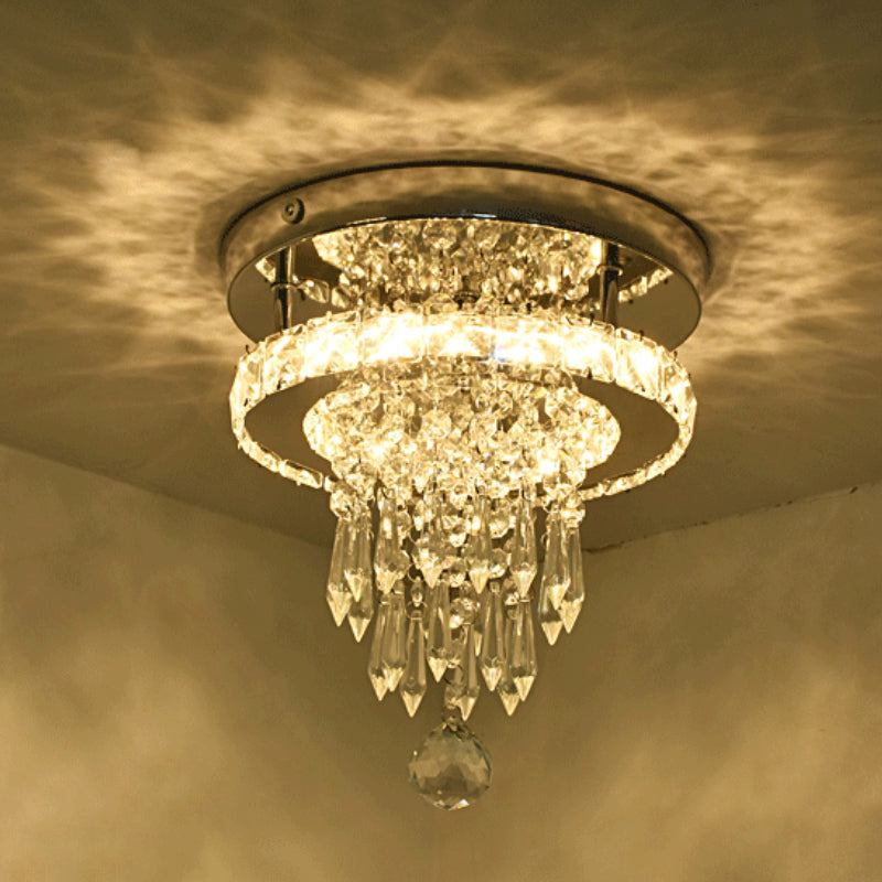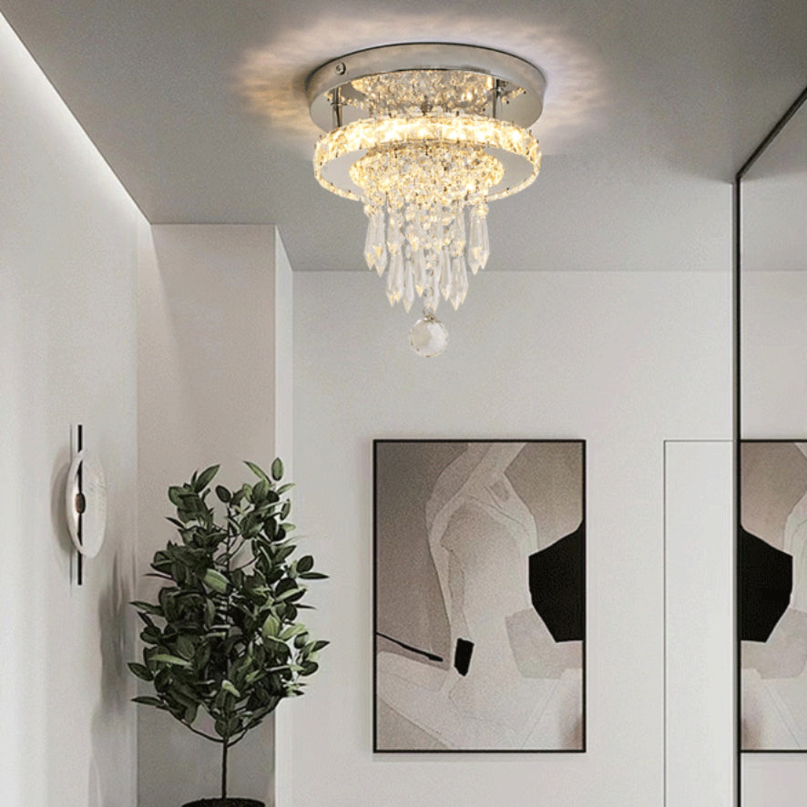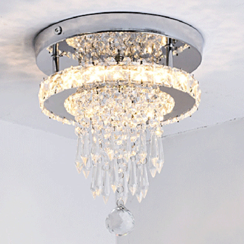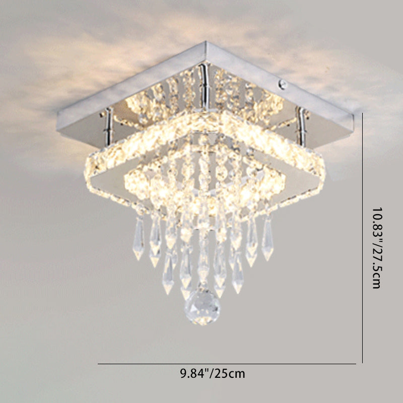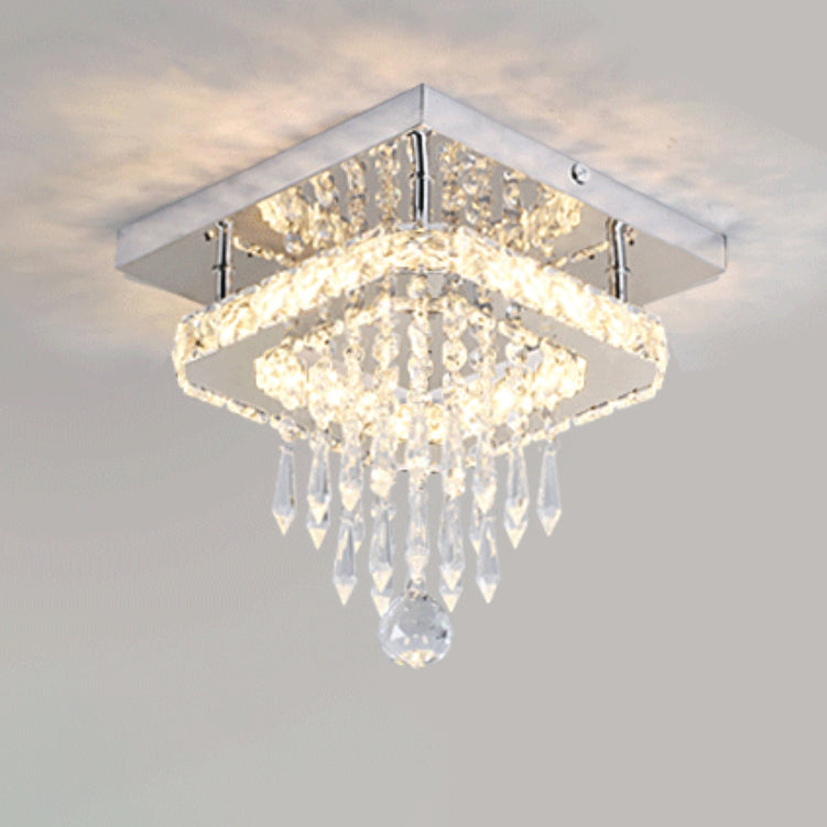 モダンで豪華なステンレススチール製クリスタルスクエアラウンドビーズLEDセミフラッシュマウント天井照明(廊下用)