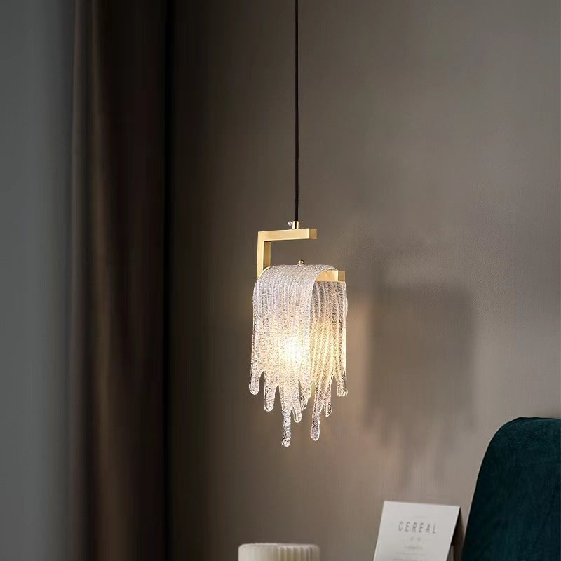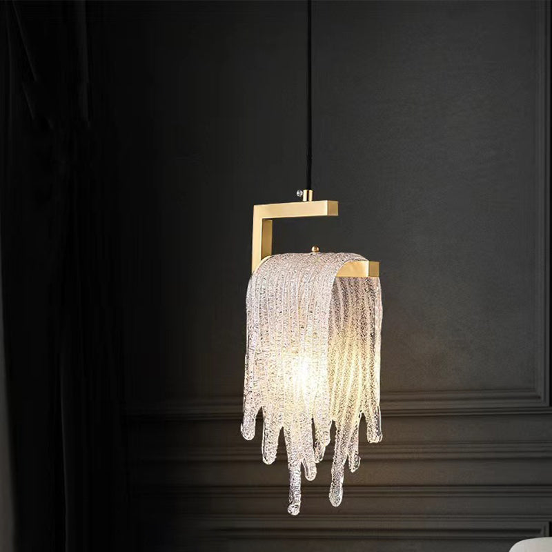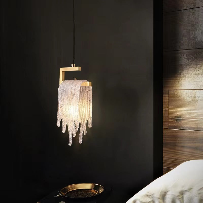 モダンで豪華なティアドロップ型不規則な長方形の銅ガラス1灯ペンダントライト寝室用