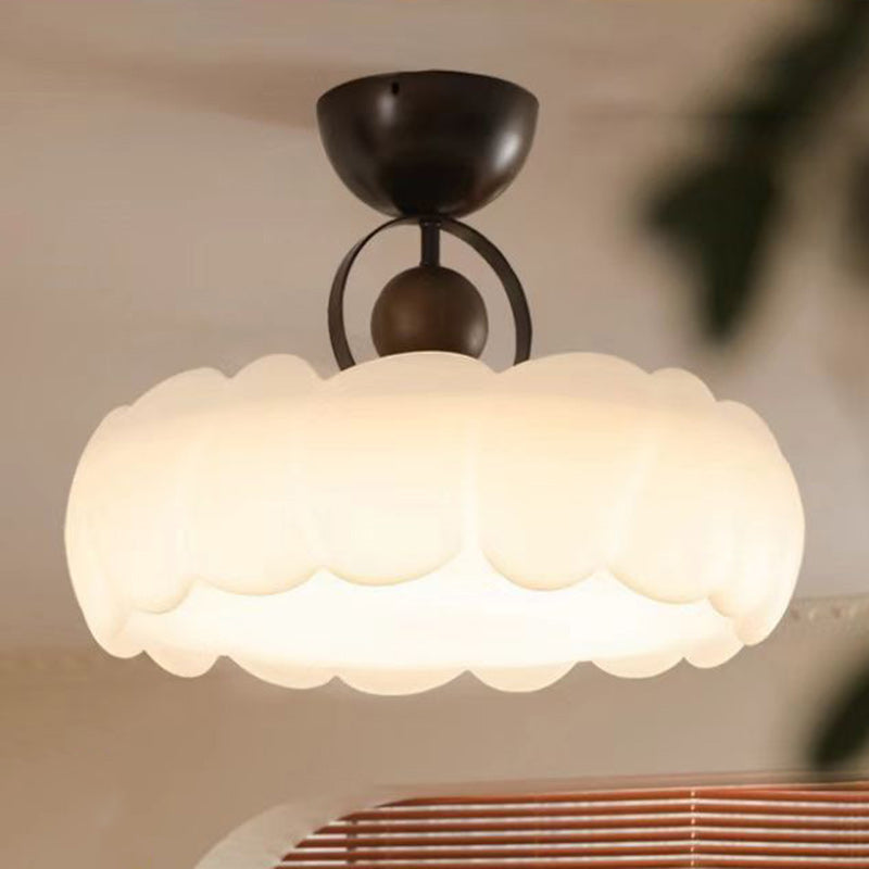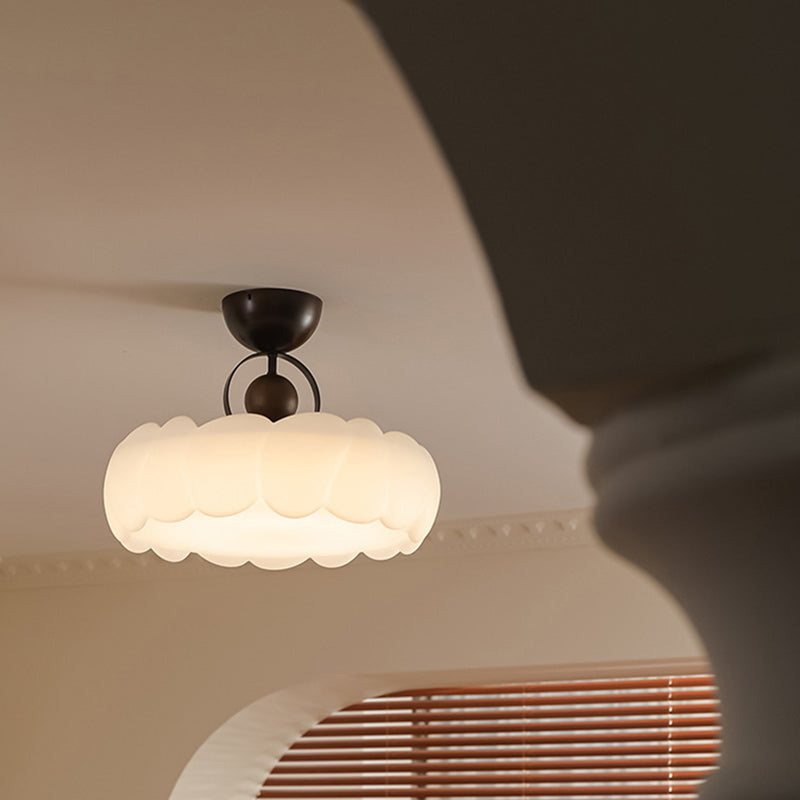 モダンなミッドセンチュリーラウンド花びら型アイアンフレームアクリルシェードLEDセミフラッシュマウントシーリングライトリビングルーム用