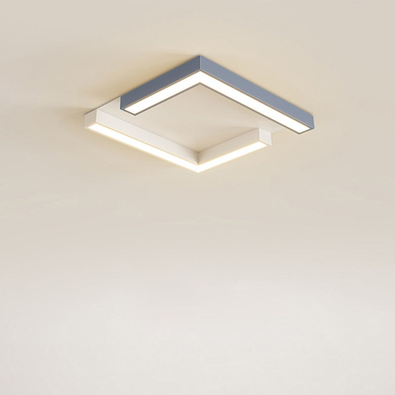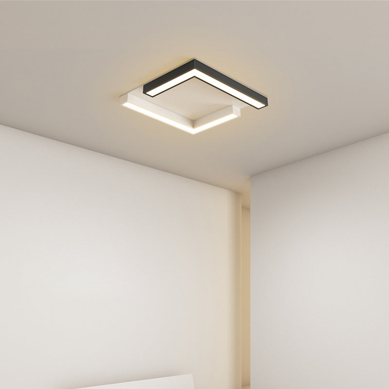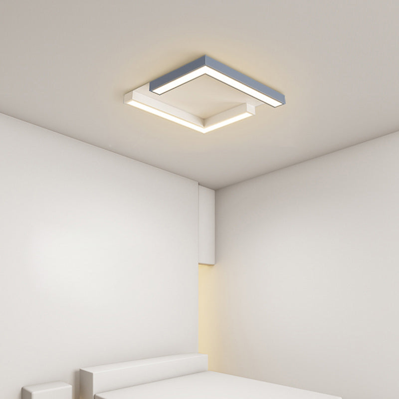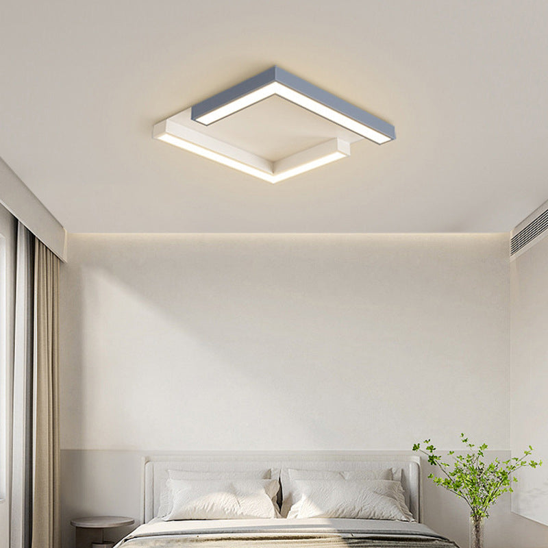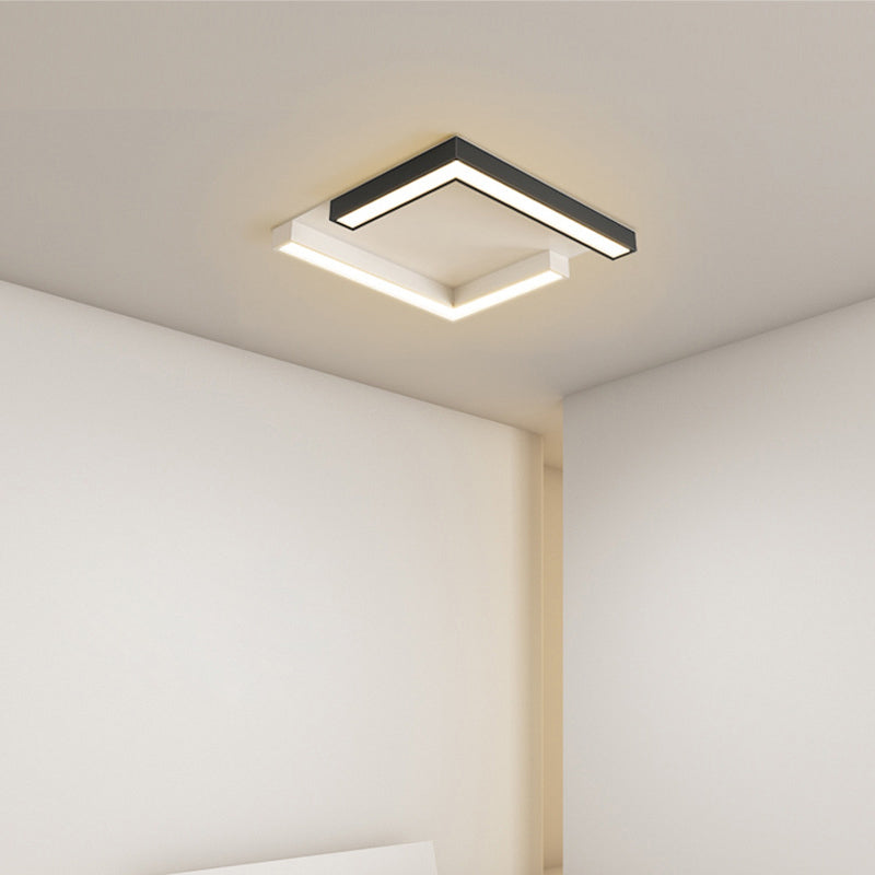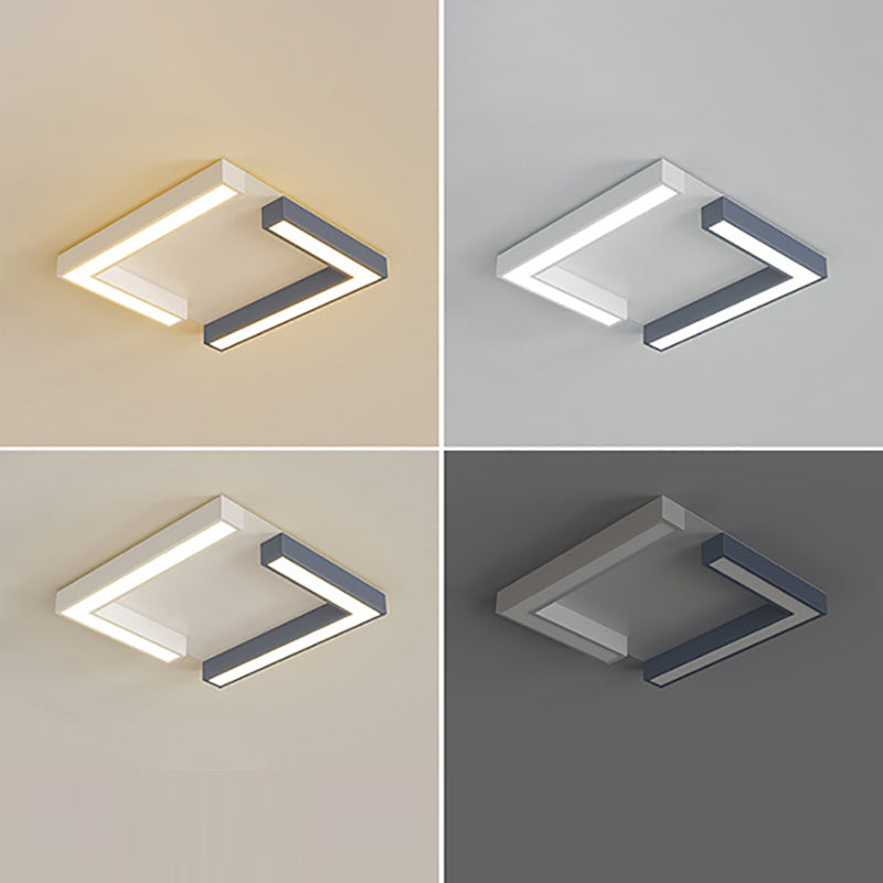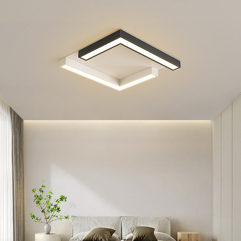 モダンでミニマリストなアクリル幾何学模様のスクエアフレームアイアンLEDフラッシュマウントシーリングライト(リビングルーム用)