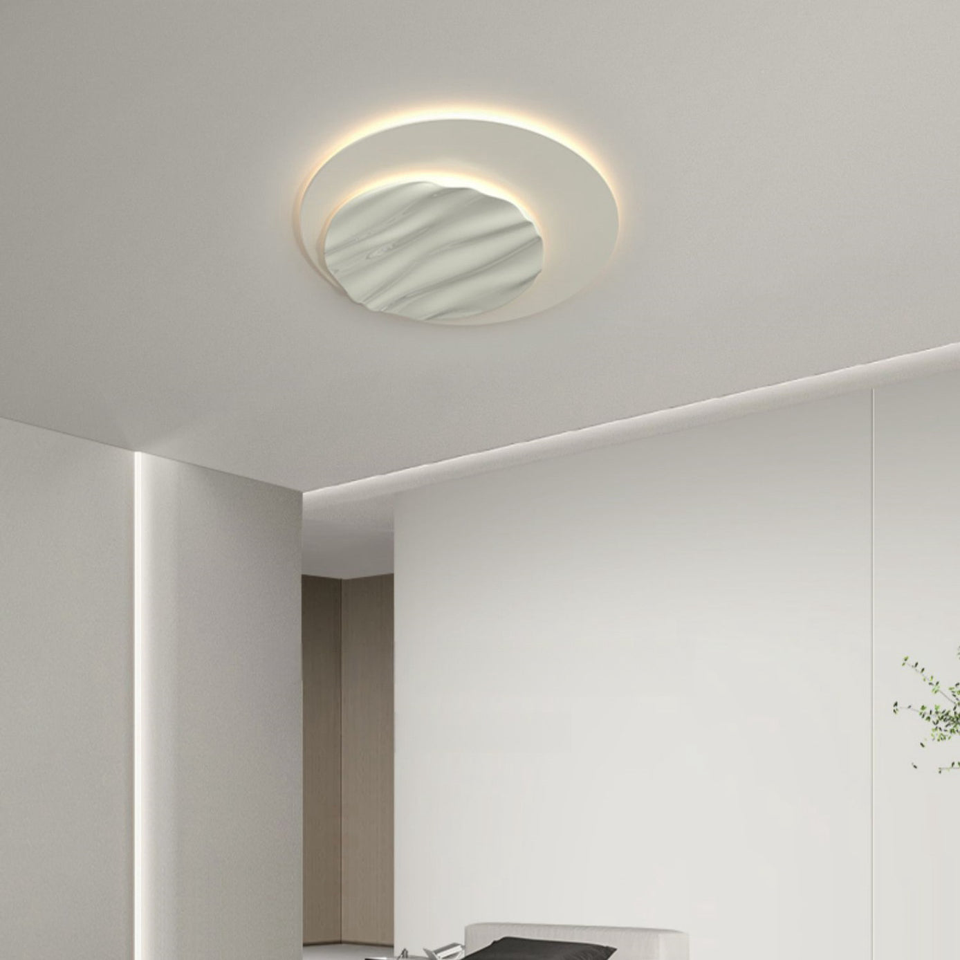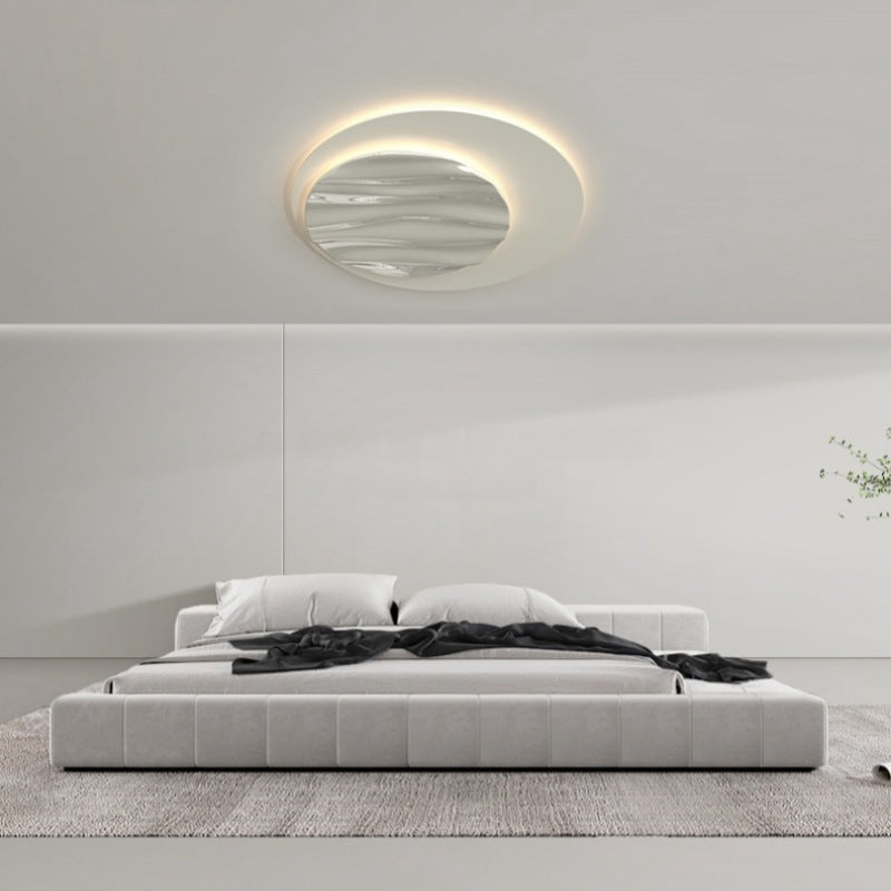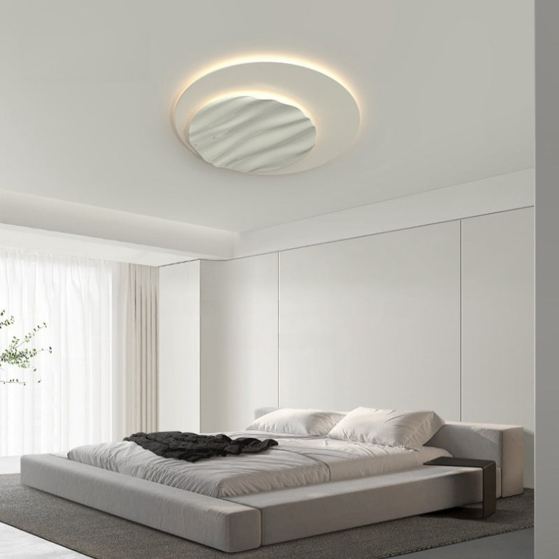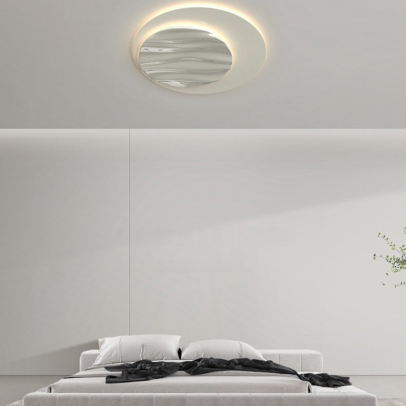 モダンでミニマリストなアルミポリカーボネート製ラウンドリップルLEDフラッシュマウントシーリングライト(寝室用)