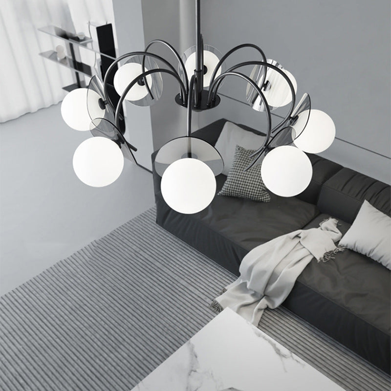 モダンミニマリストブランチカーブロッドオーブガラスランプシェード銅4/5/8 - リビングルーム用ライトシャンデリア