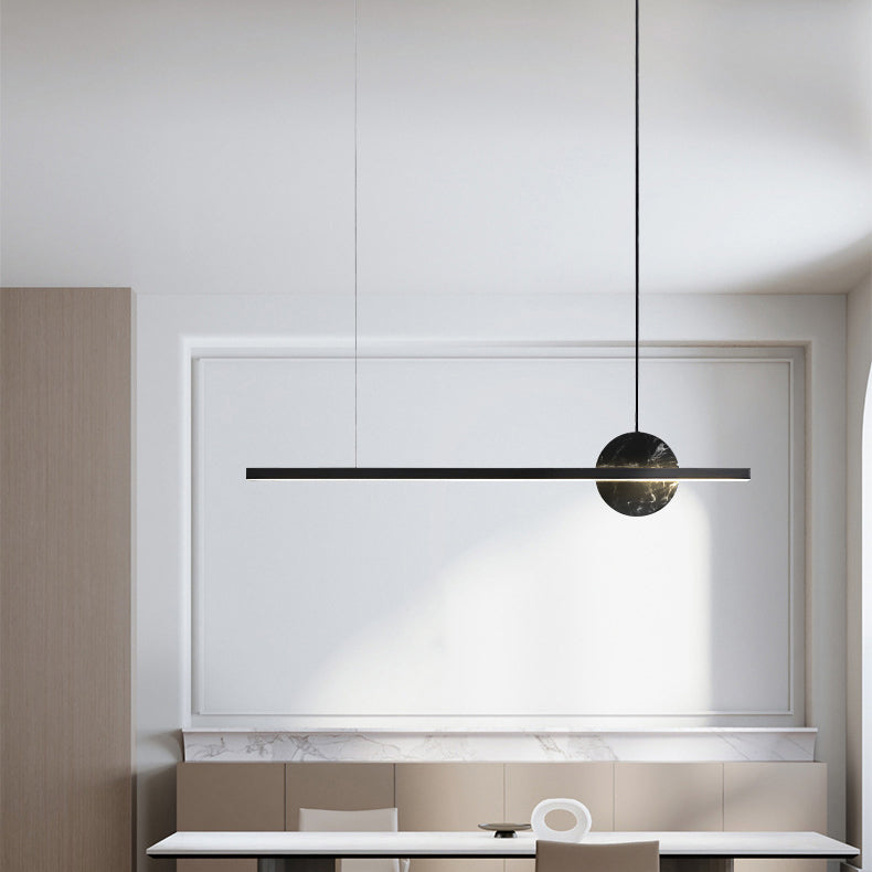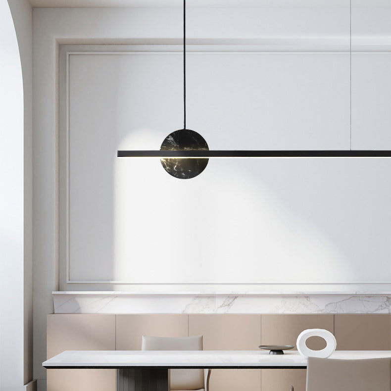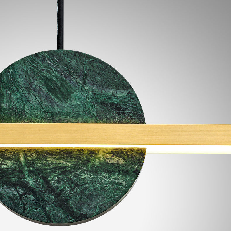 モダンでミニマリストな真鍮大理石の直線型ラウンドLEDシャンデリアアイランドライト(ダイニングルーム用)