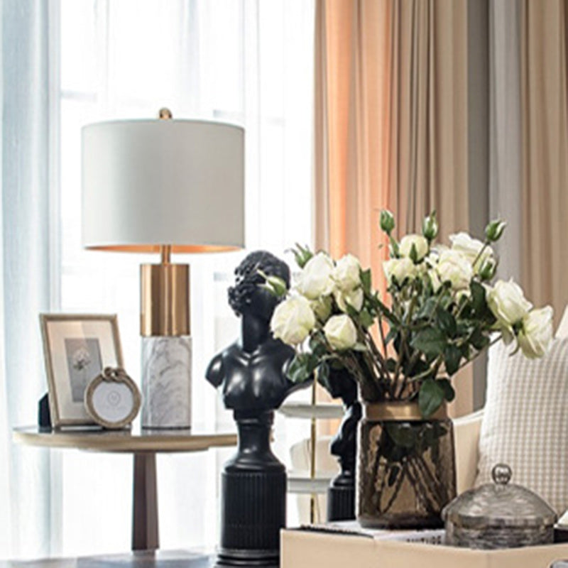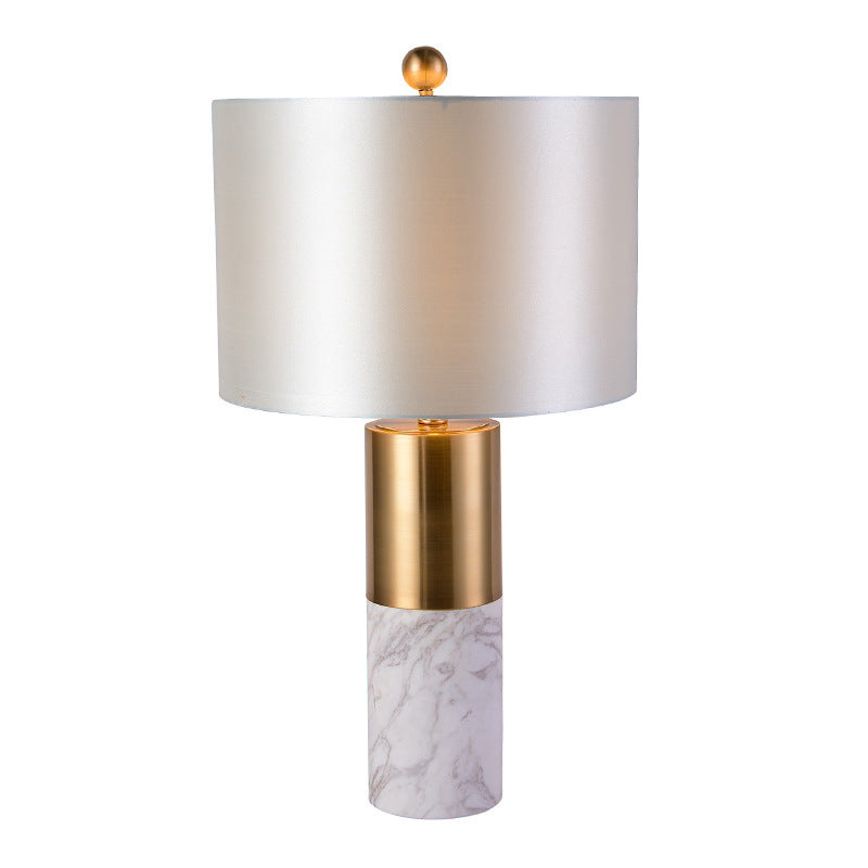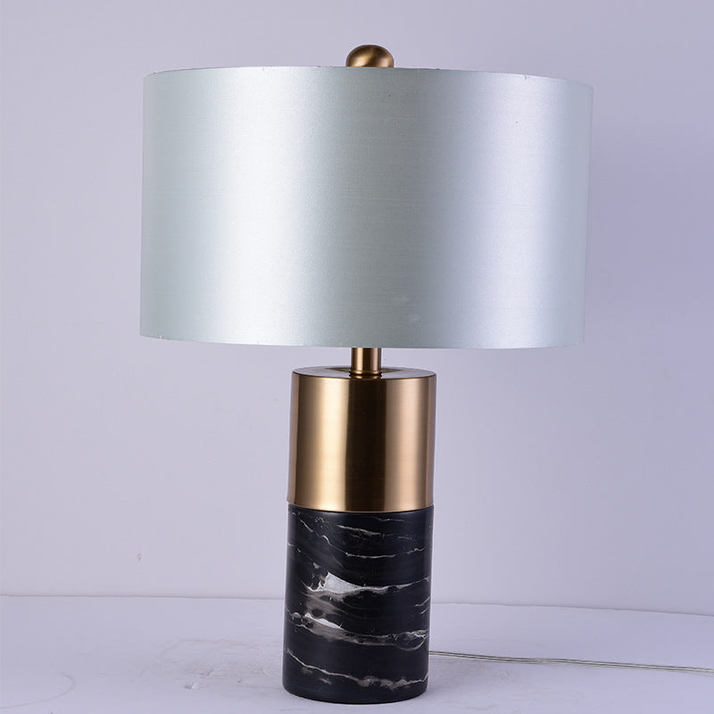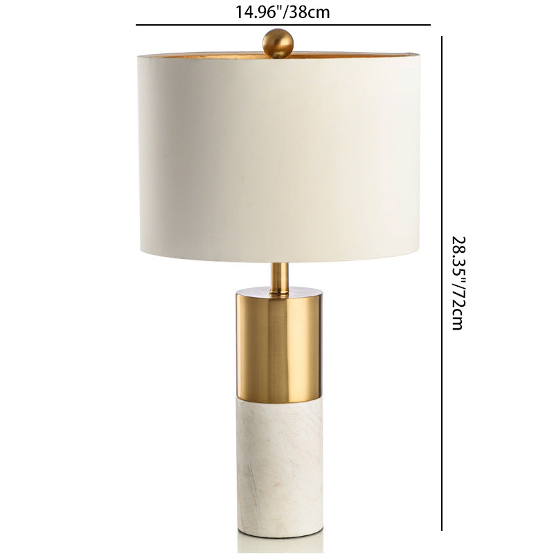 Modern Minimalist Cylinder Marble Fabric 1-Light Table Lamp For Living Room