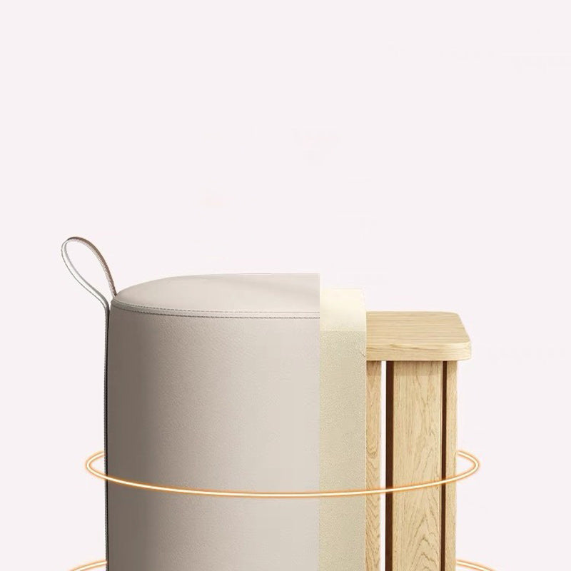 Modern Minimalist Cylinder Oval Microfiber Leather Solid Wood Vanity Stool Backless Armless For Bedroom