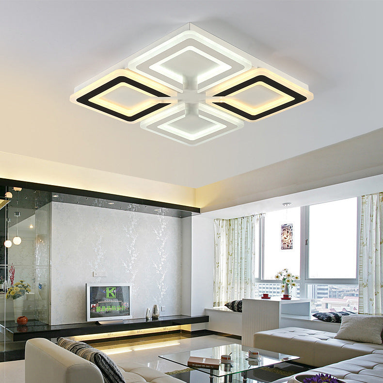 モダンでミニマリストなダイヤモンドアイアンアクリルLEDフラッシュマウントシーリングライト(リビングルーム用)