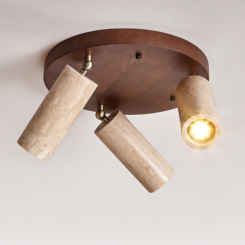 モダンミニマリストドームソリッドウッドイエロートラバーチン3ライトフラッシュマウントシーリングライトリビングルーム用