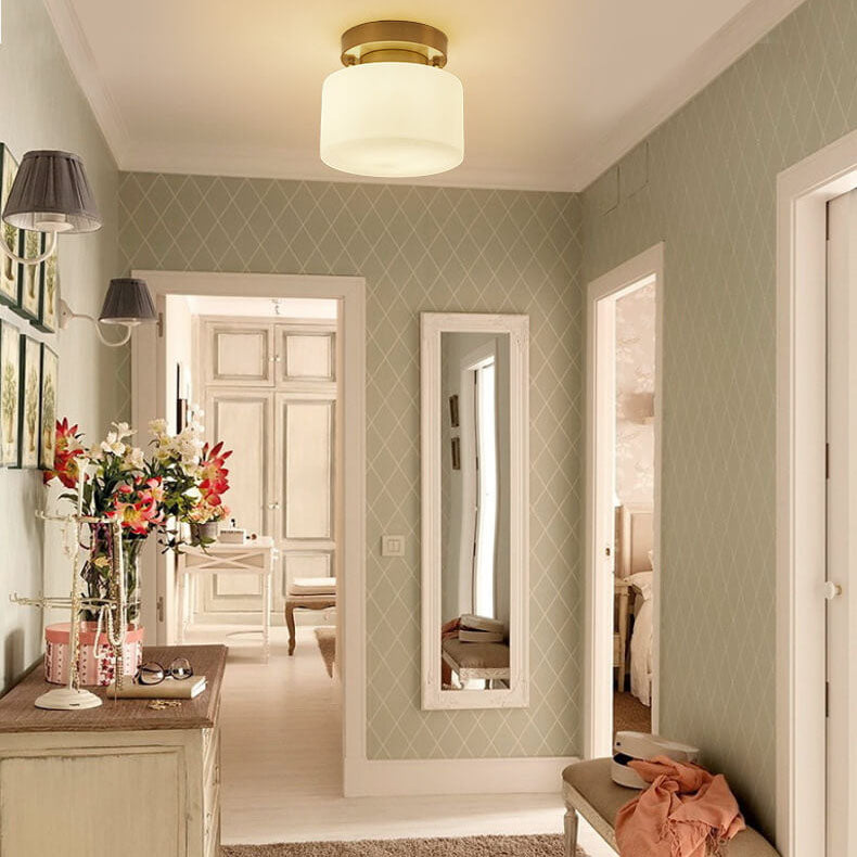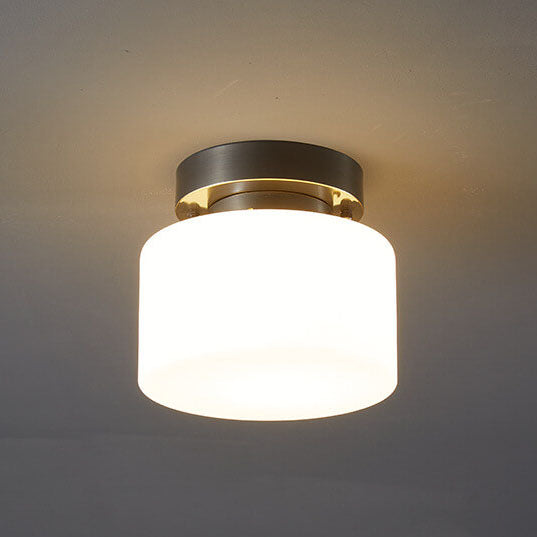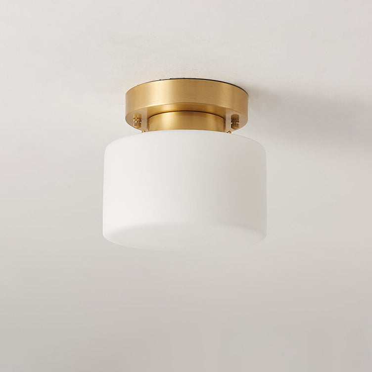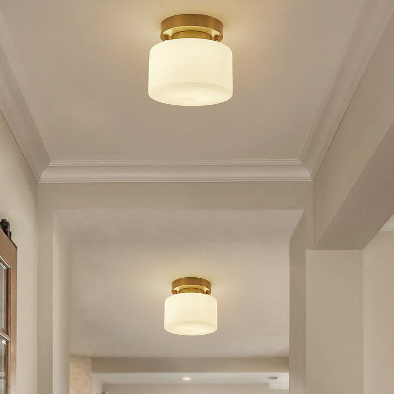 モダンミニマリストドラムガラス銅1ライトセミフラッシュマウントシーリングライト