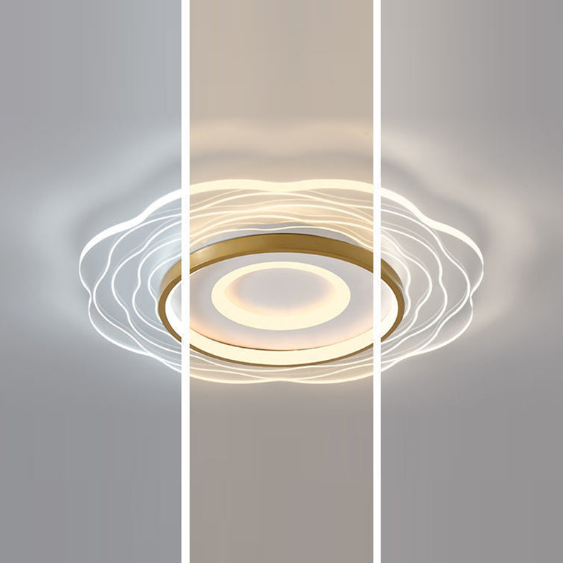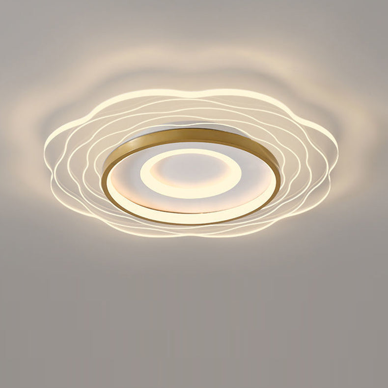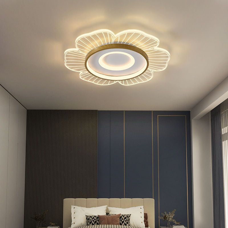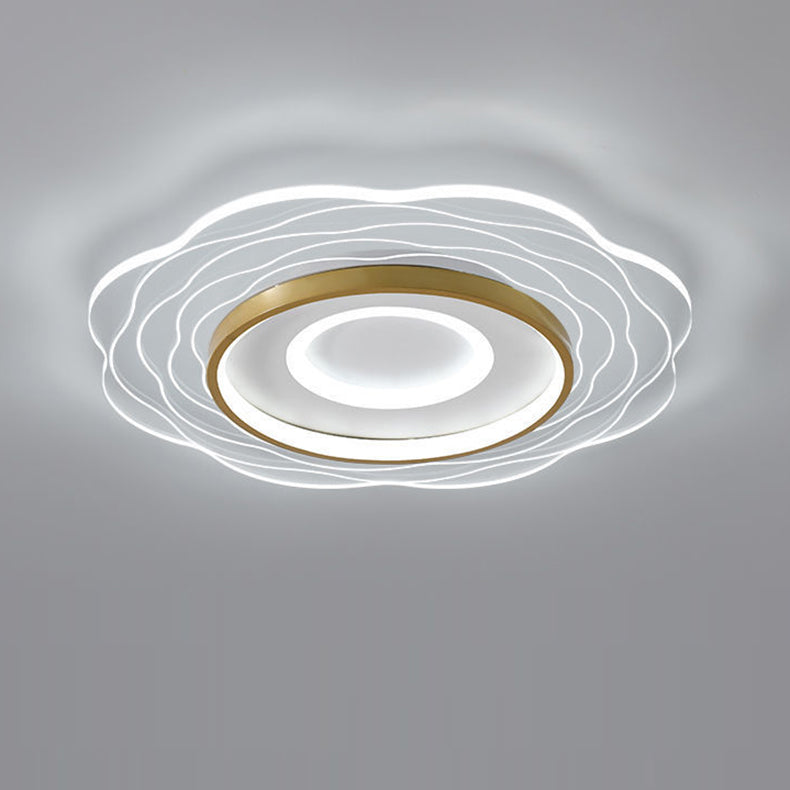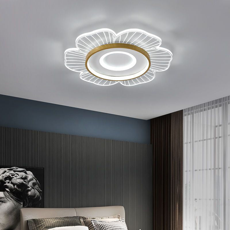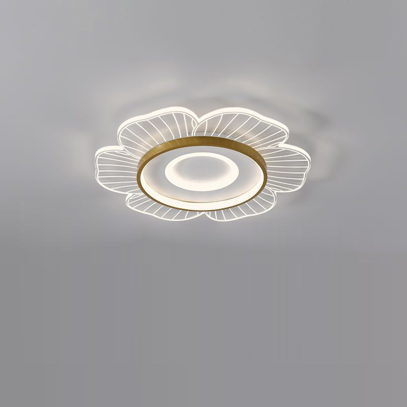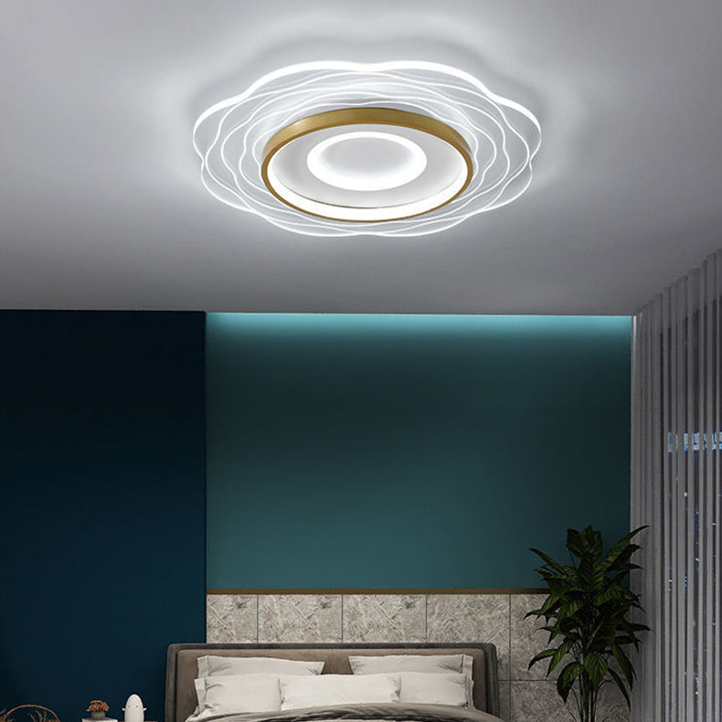 モダンでミニマリストな花柄アルミアクリルLEDフラッシュマウントシーリングライト(リビングルーム用)