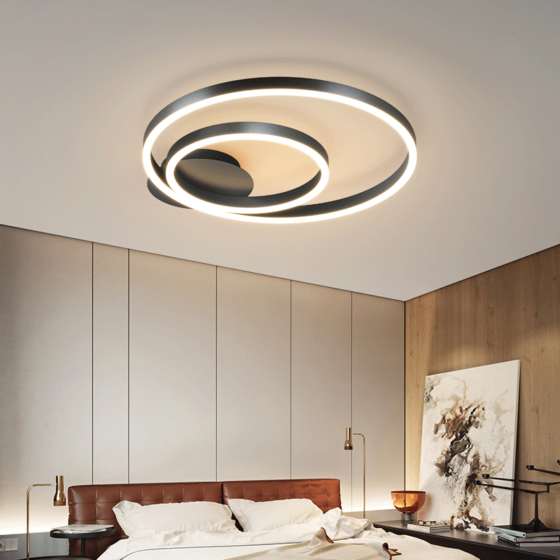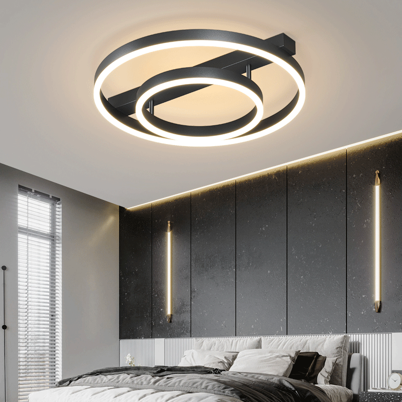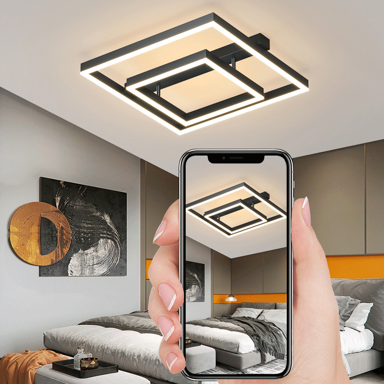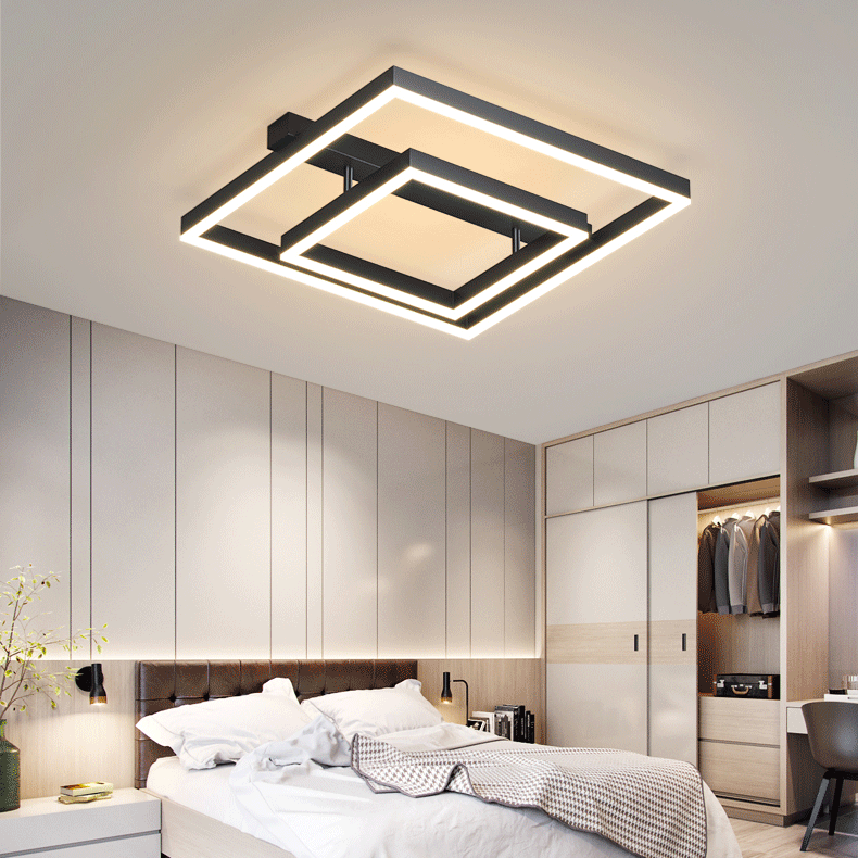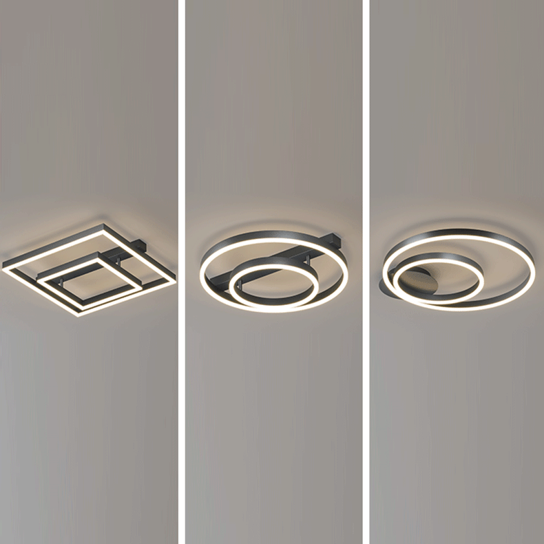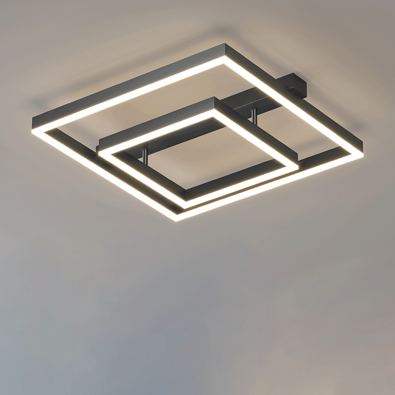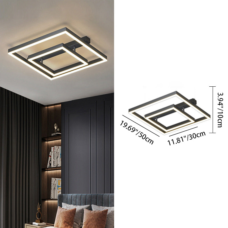 モダンでミニマリストな幾何学模様のスクエアサークルアルミラインLEDフラッシュマウントシーリングライト(リビングルーム用)