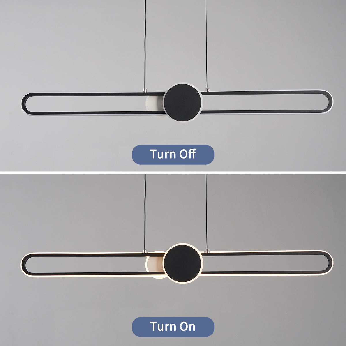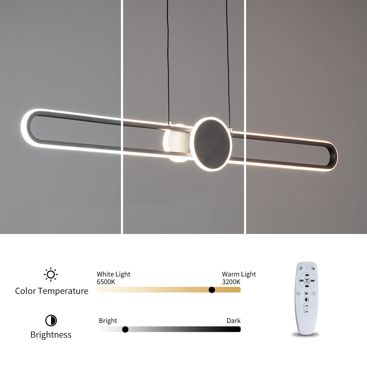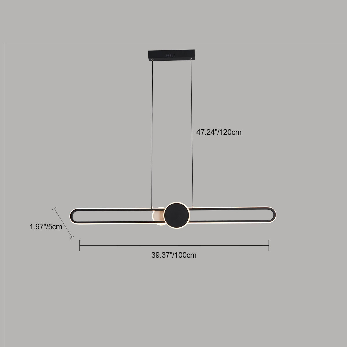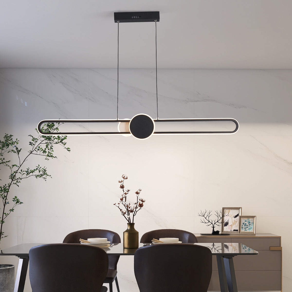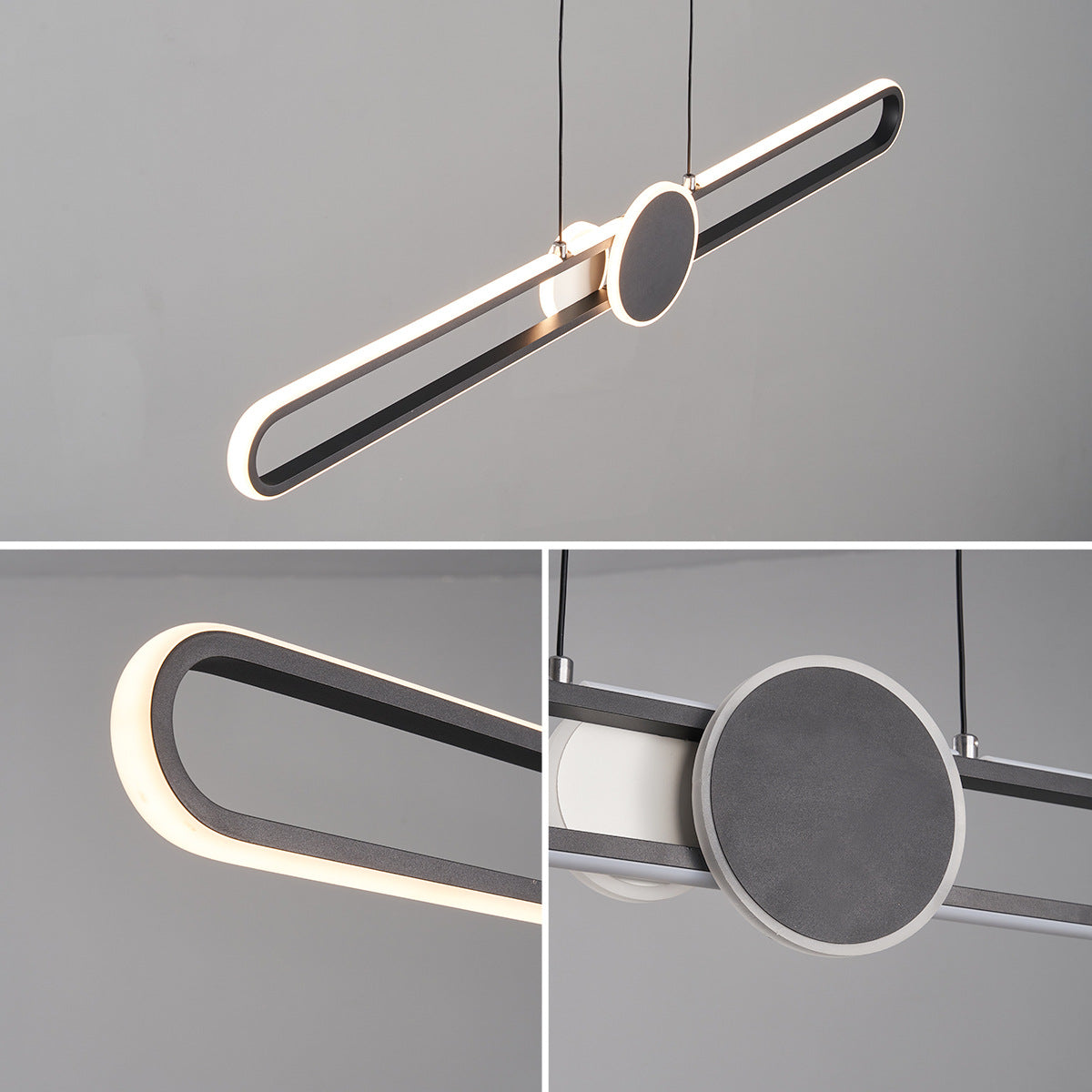 モダンでミニマリストなオーバルフレームのアイアンアルミLED調光シャンデリアアイランドライト(ダイニングルーム用)