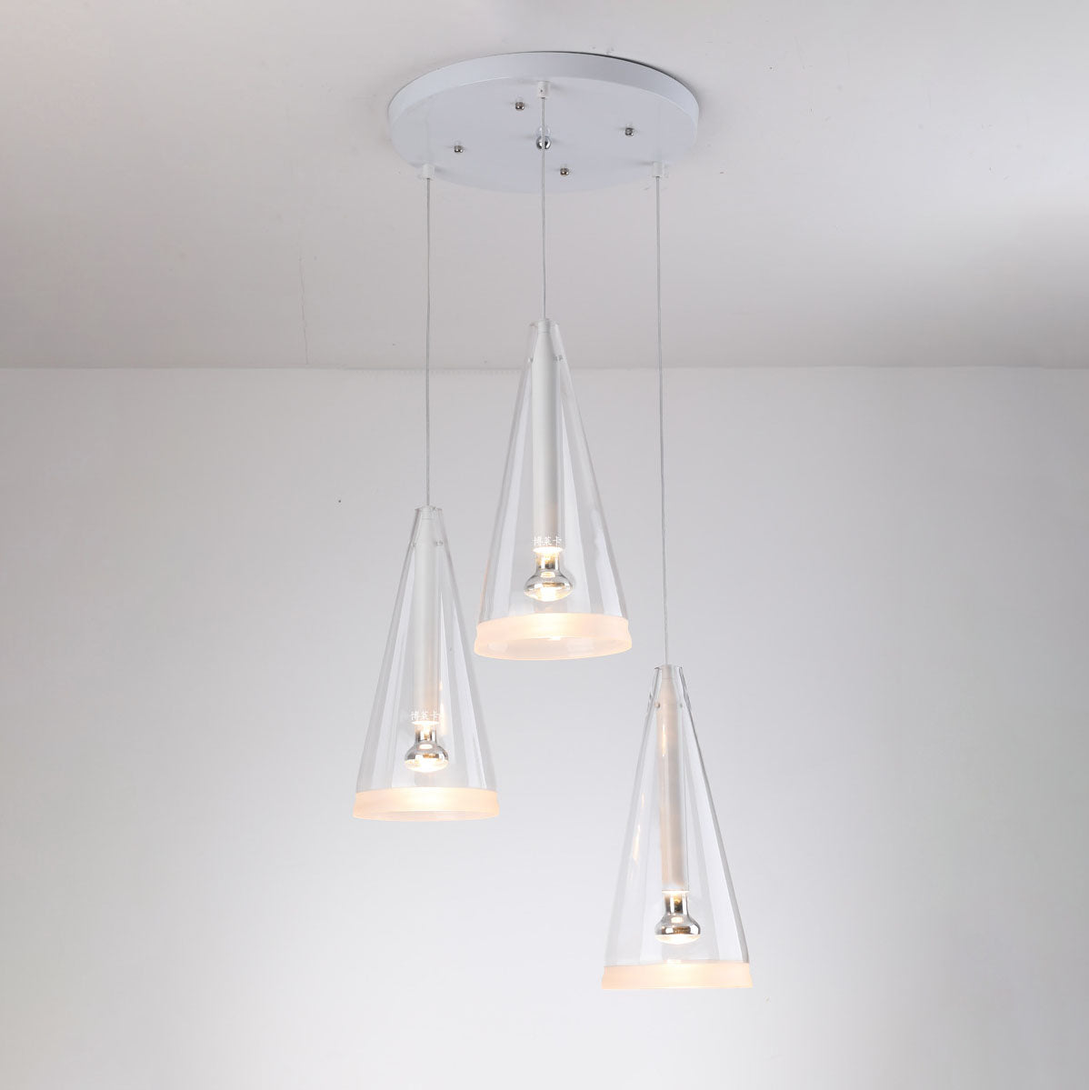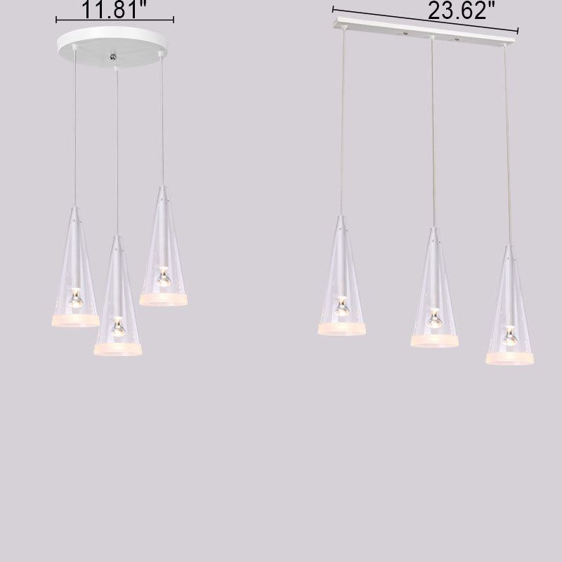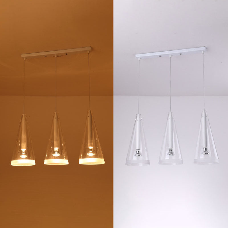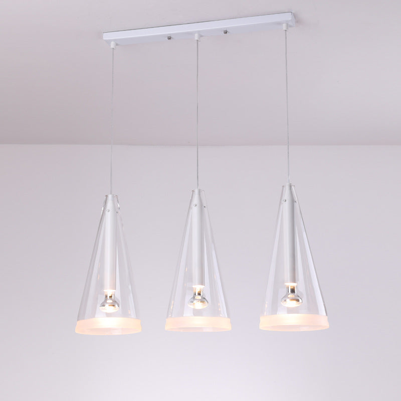 モダンミニマリストピュアホワイトクリアコーンガラス1/3ライトアイランドライトシャンデリア