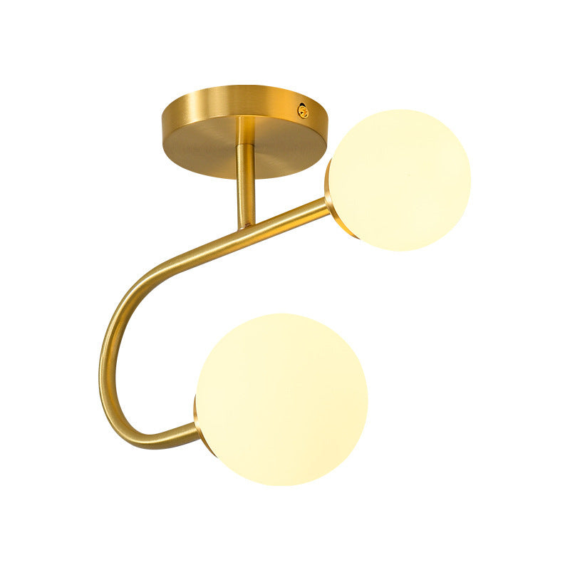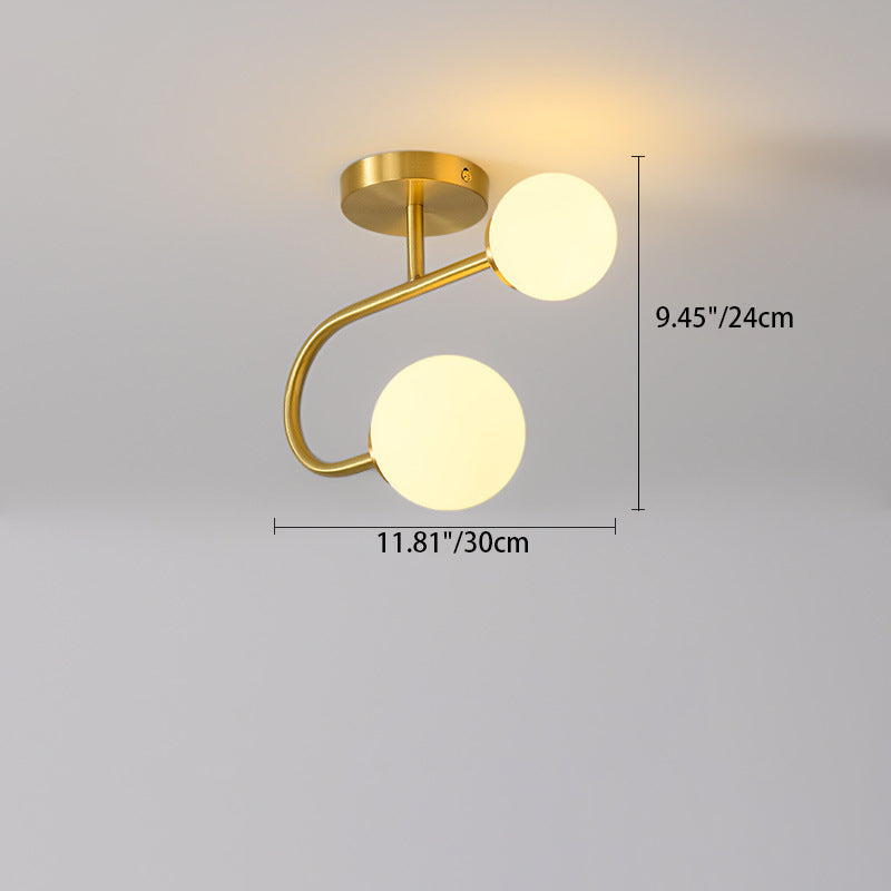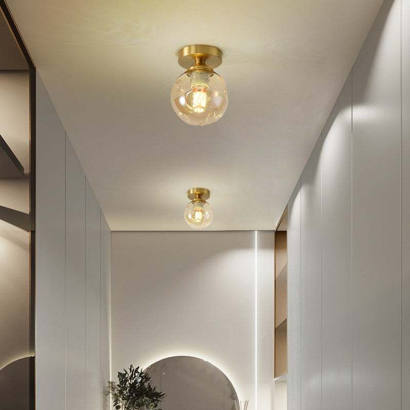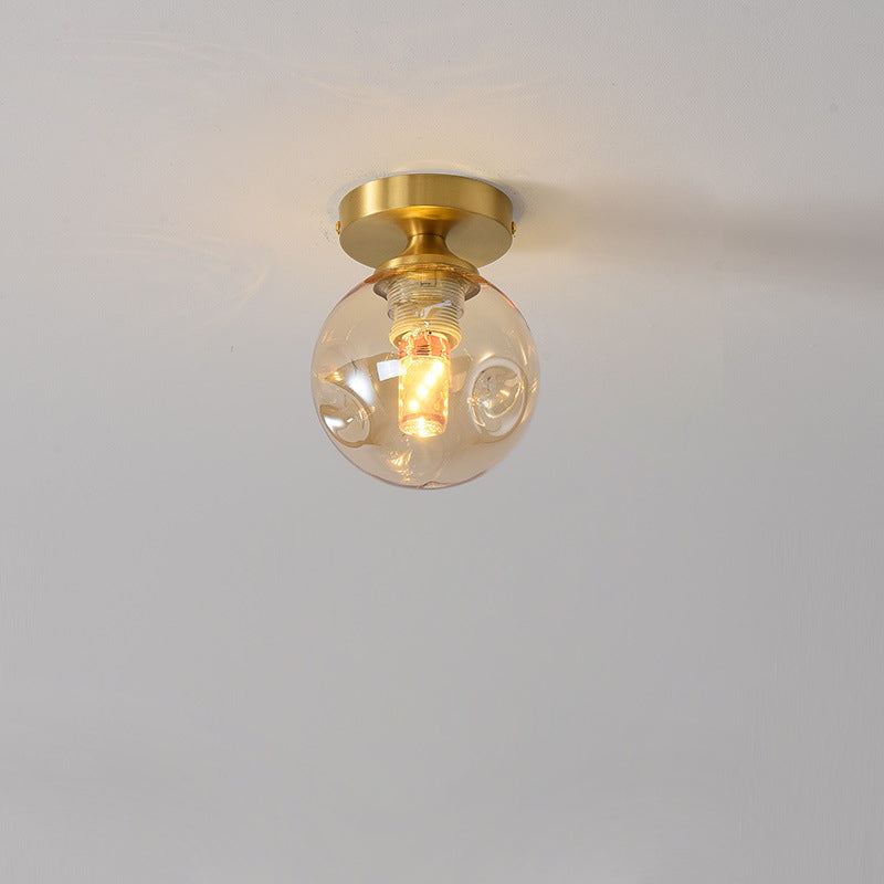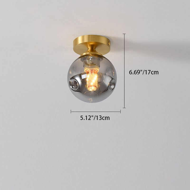 モダンミニマリストラウンドボールシリンダーラウンドガラス銅1/2ライトセミフラッシュマウントシーリングライトリビングルーム用