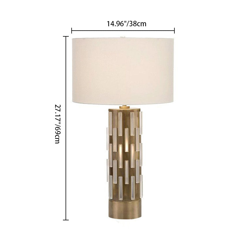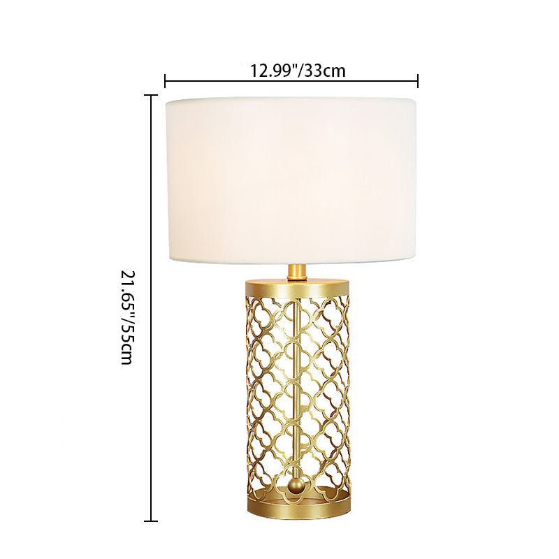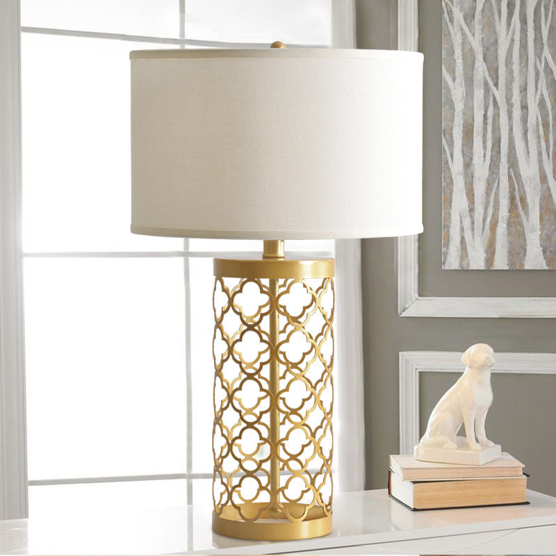 Modern Minimalist Round Cylinder Cutout Fabric Metal 1-Light Table Lamp For Bedroom