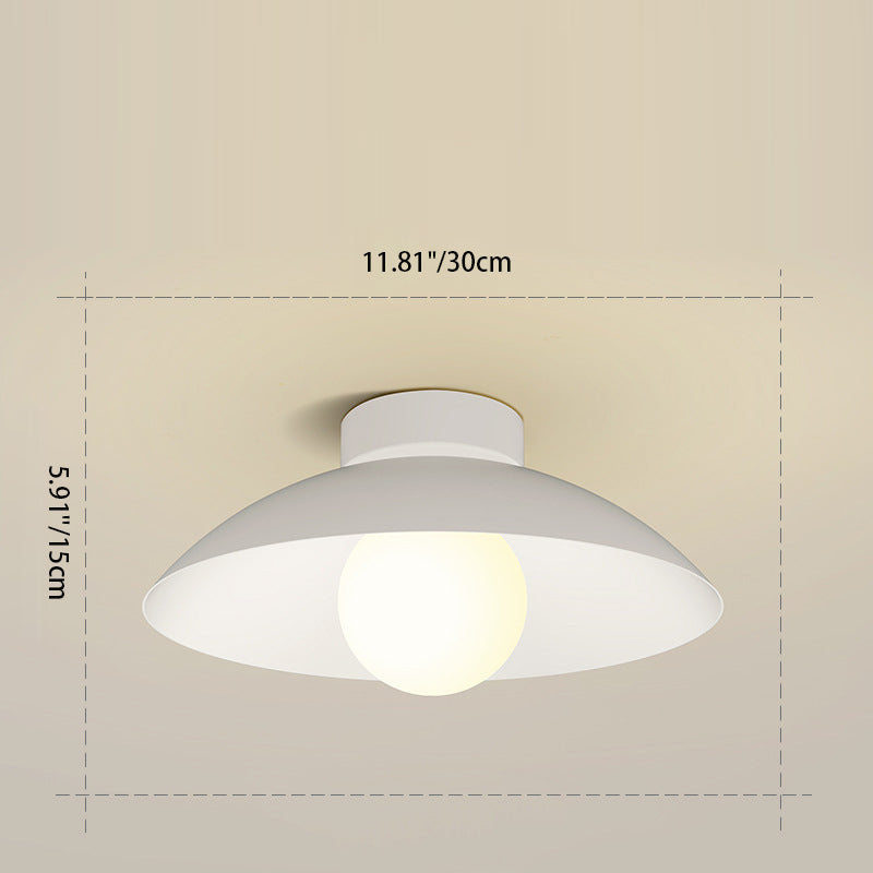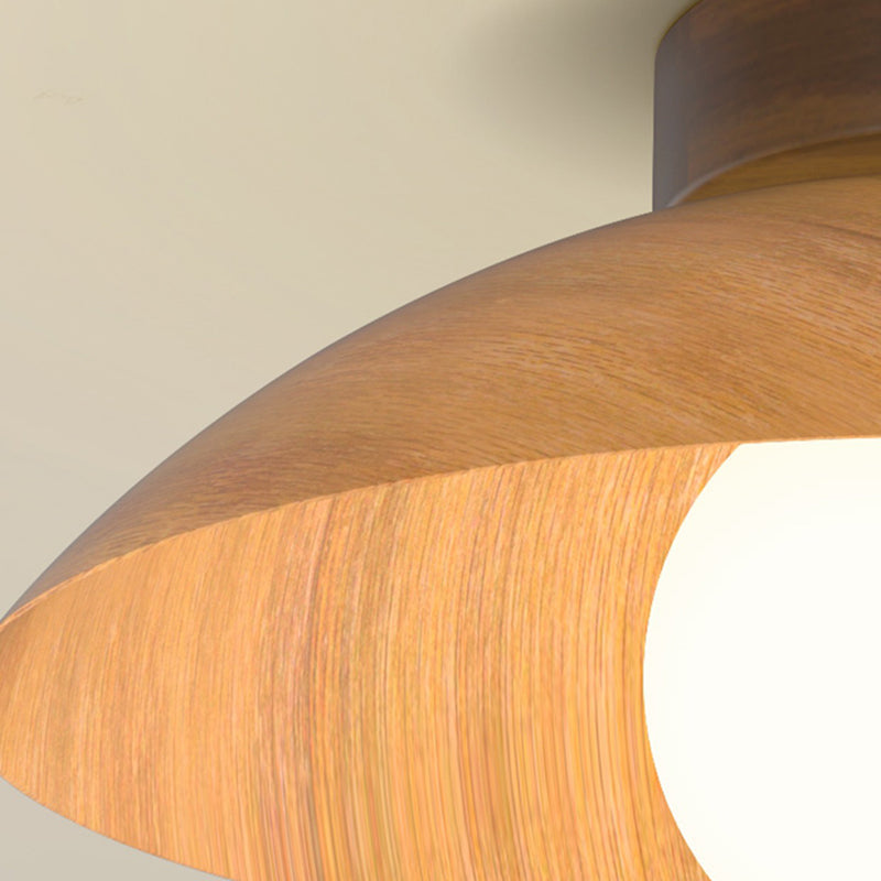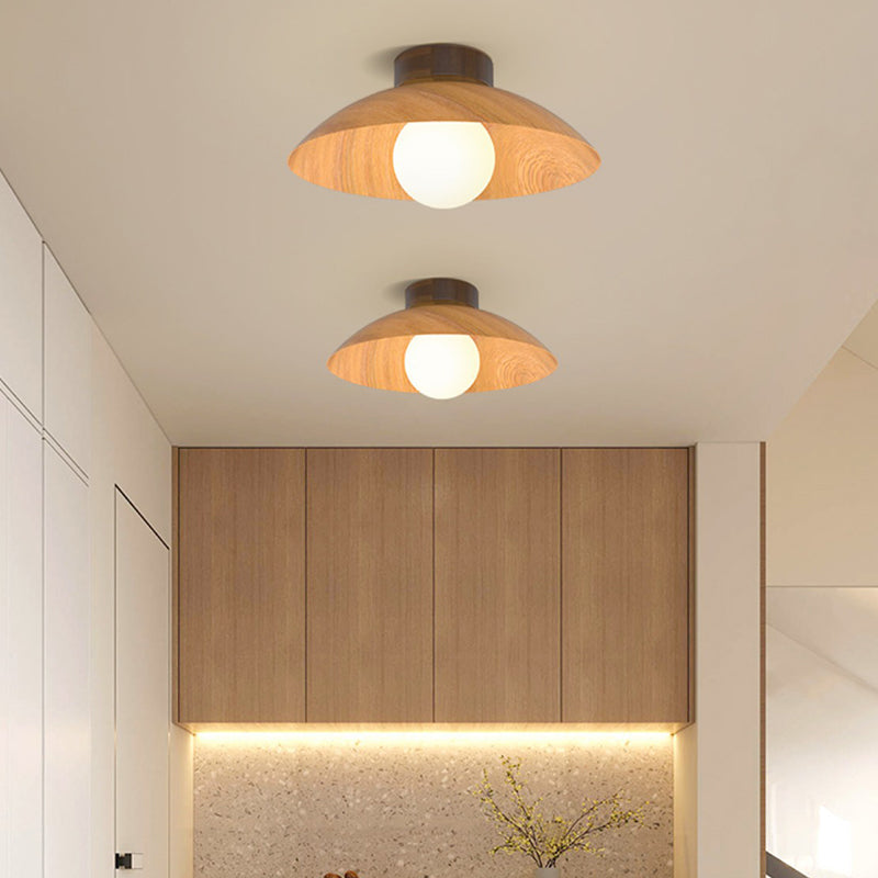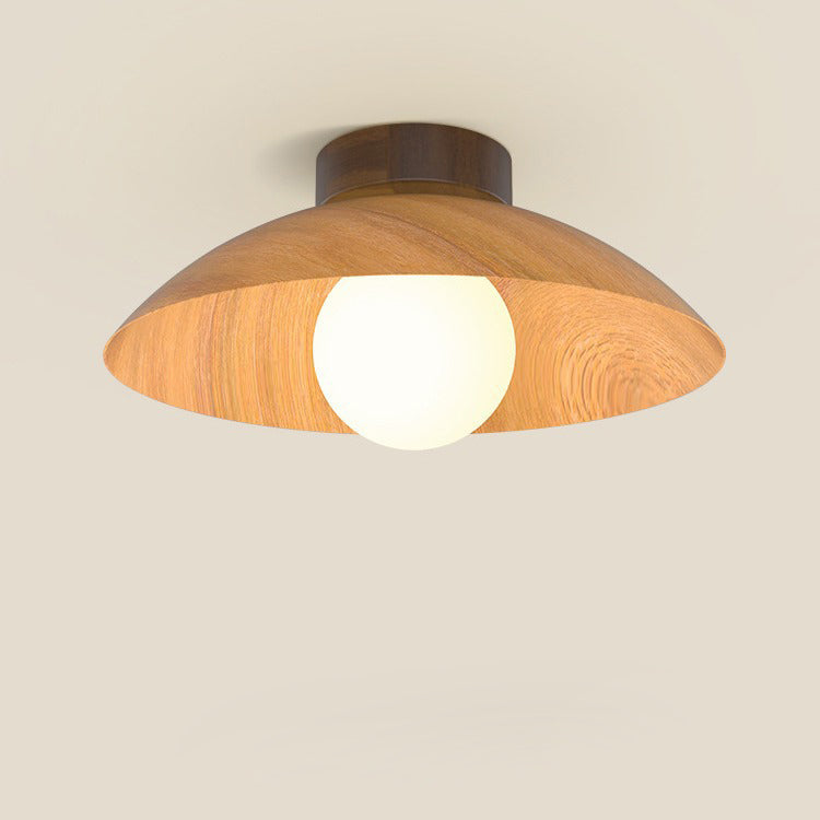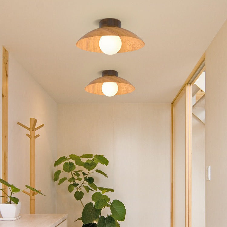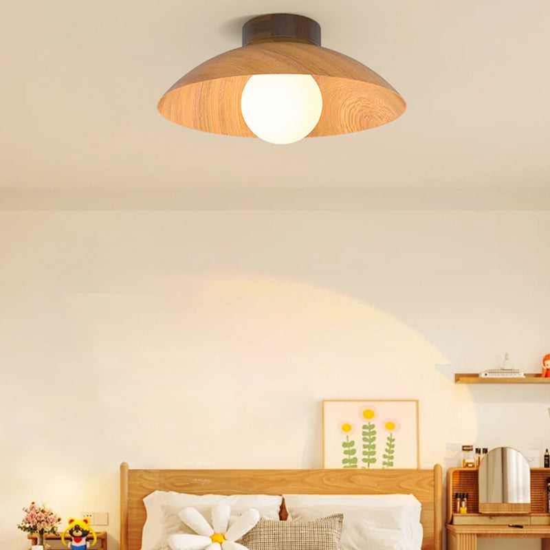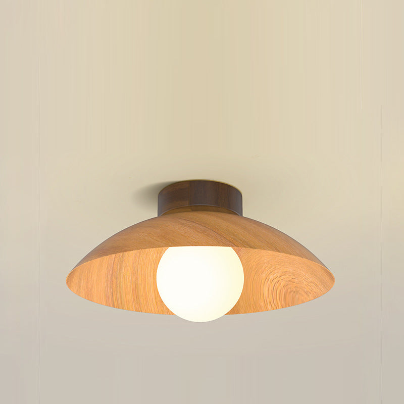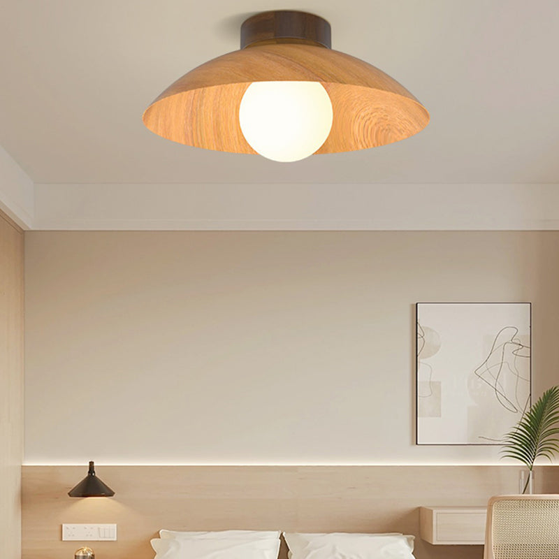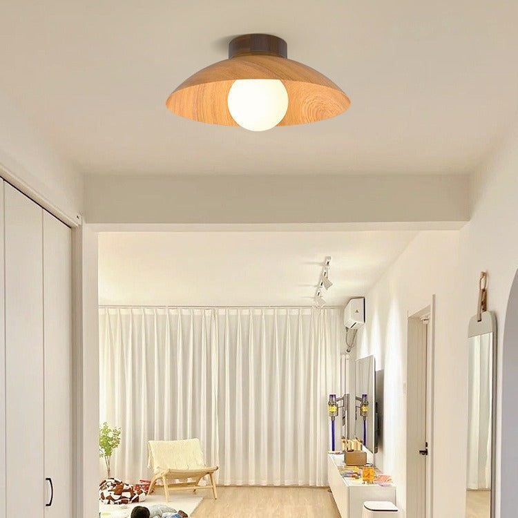 モダンミニマリストラウンドドーム木目調アイアンシェード1灯セミフラッシュマウントシーリングライトリビングルーム用
