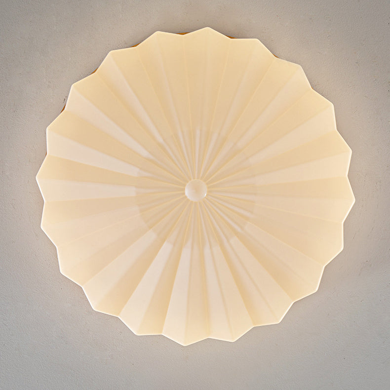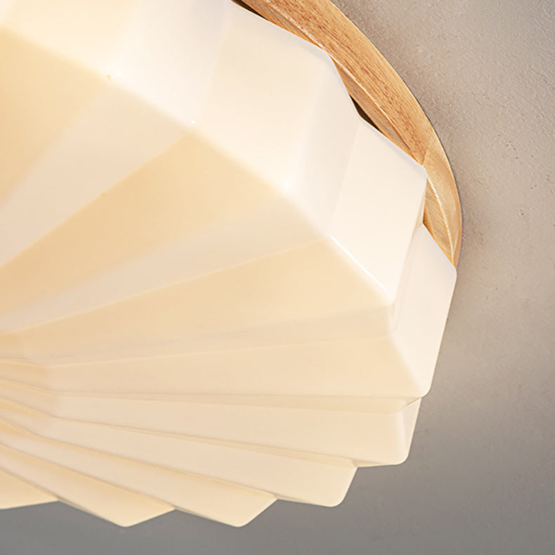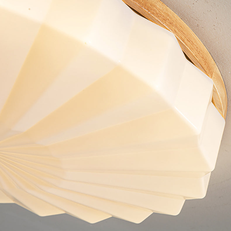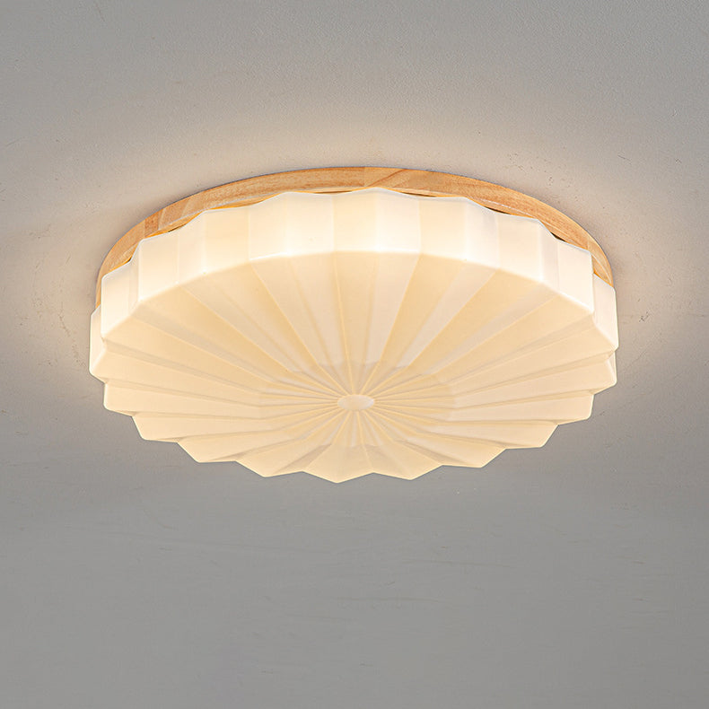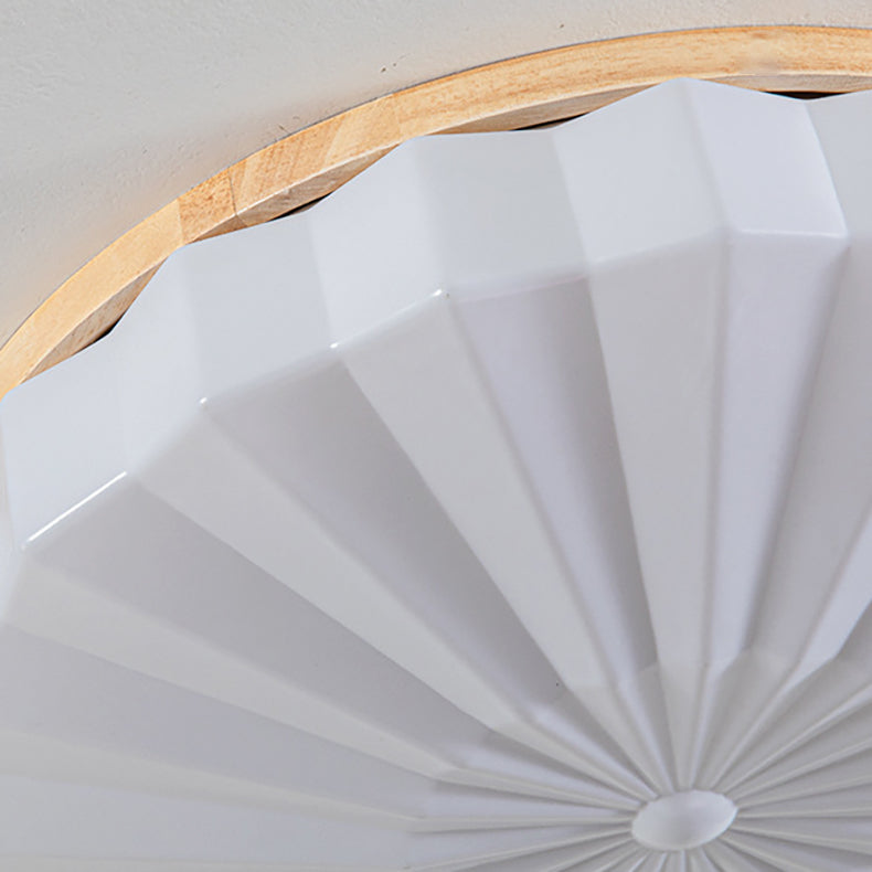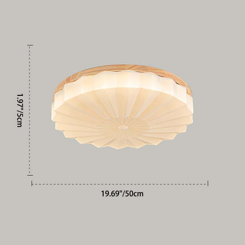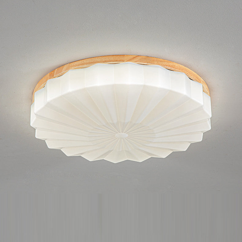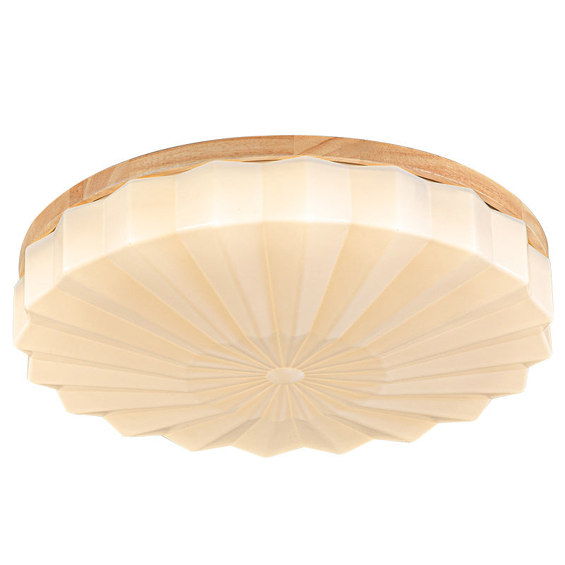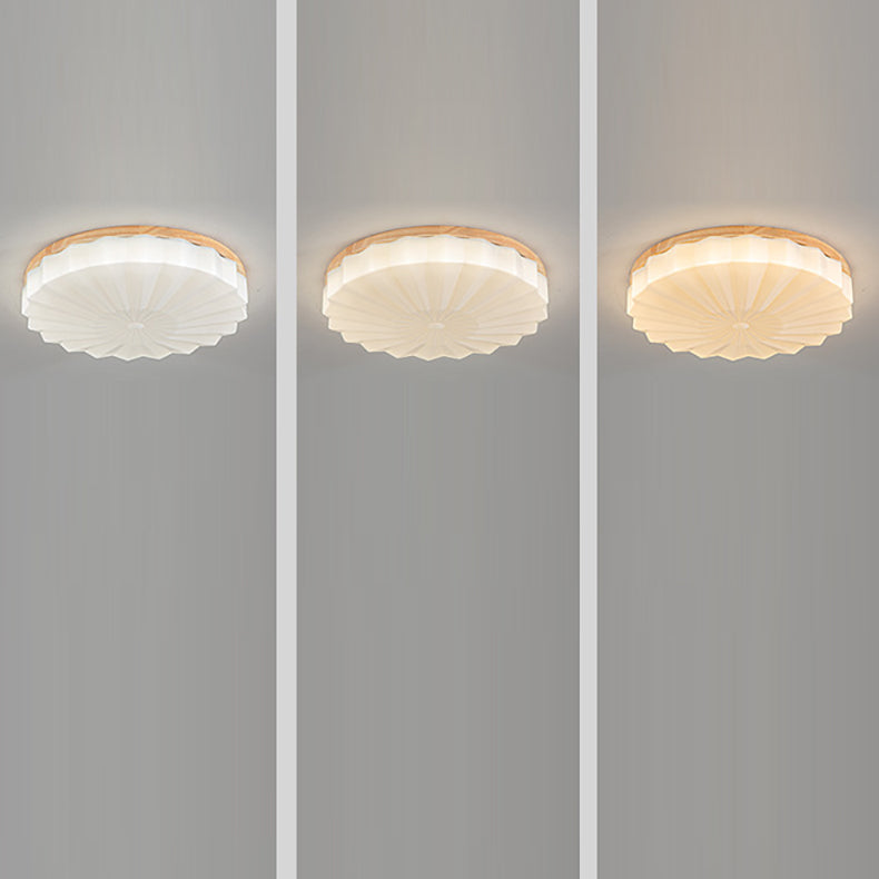 モダンでミニマリストなラウンドフラワーウッドアイアンアクリルLEDフラッシュマウントシーリングライトリビングルーム用