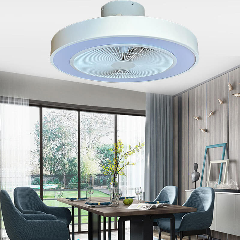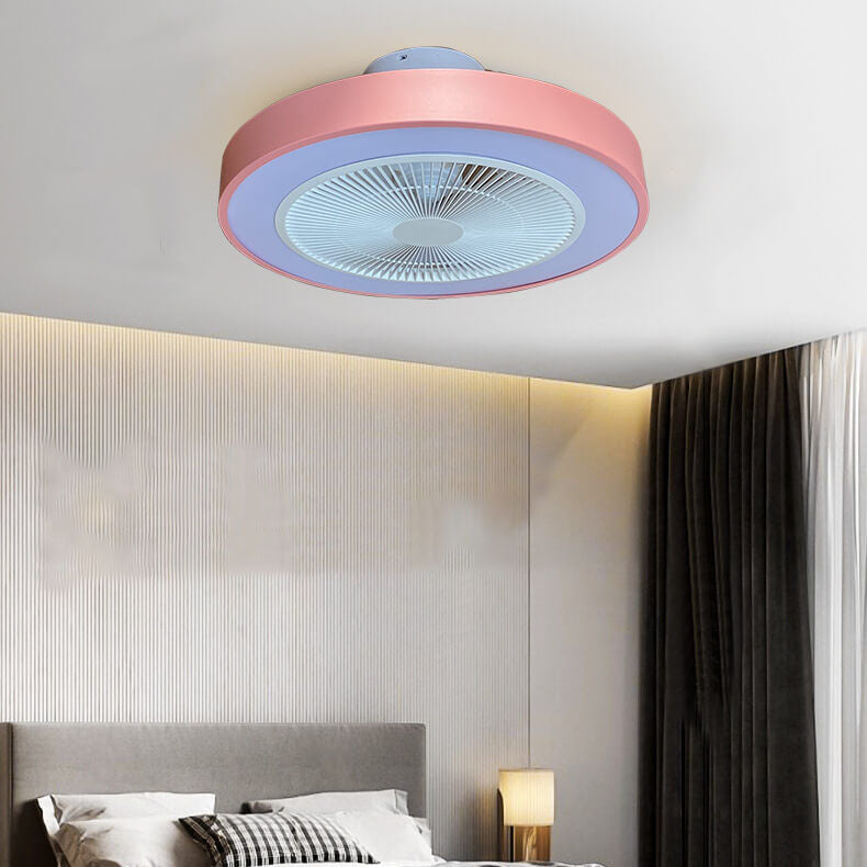 モダンミニマリストソリッドカラーアイアン銅LEDフラッシュマウントシーリングファンライト