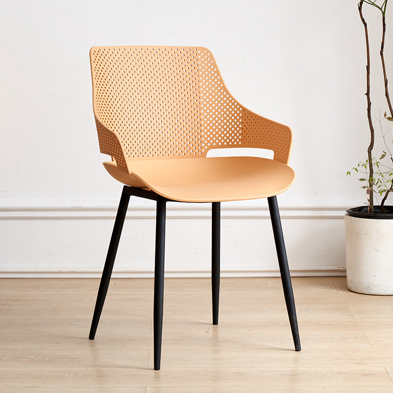 Modern Minimalist Square Hollowed Out Dots Backrest Plastic Iron Dining Chair Armrest For Dining Room