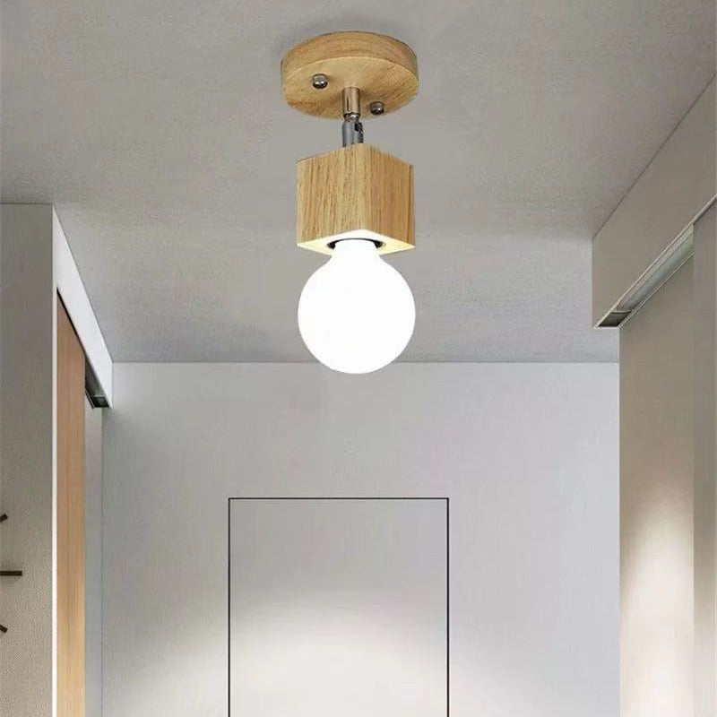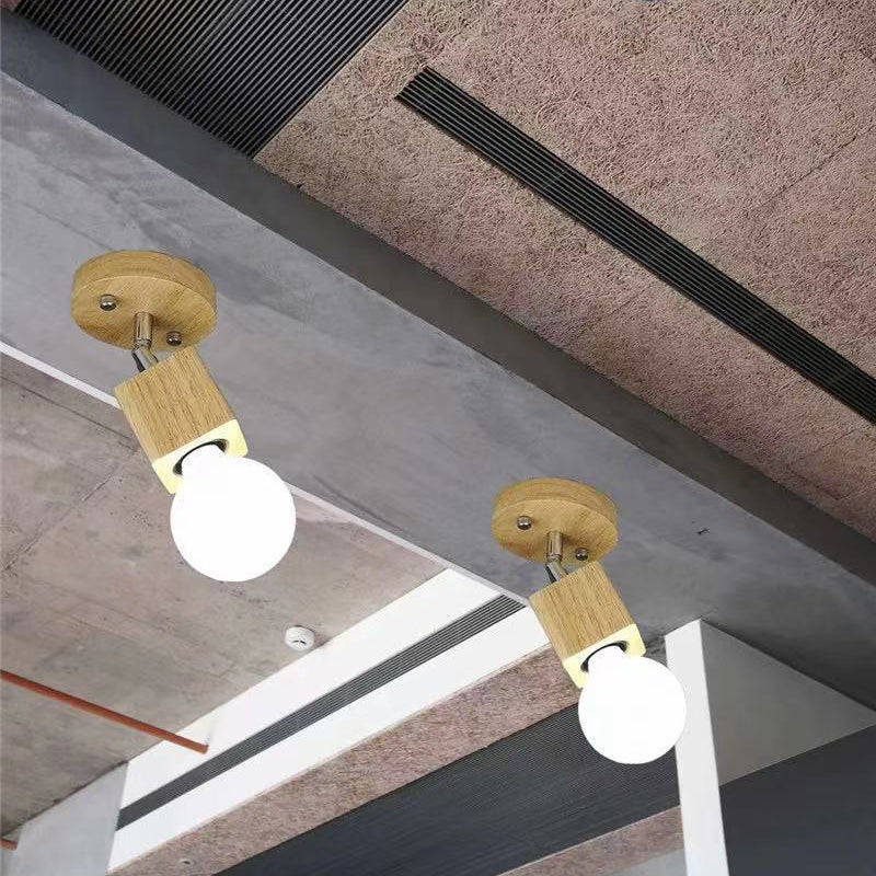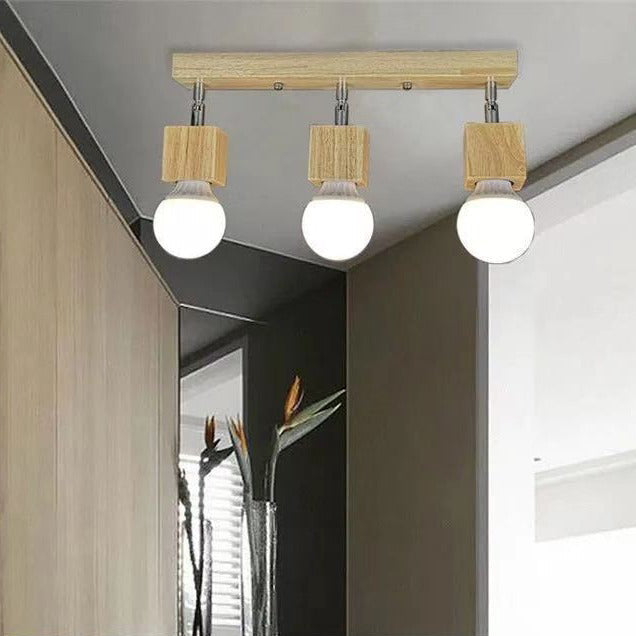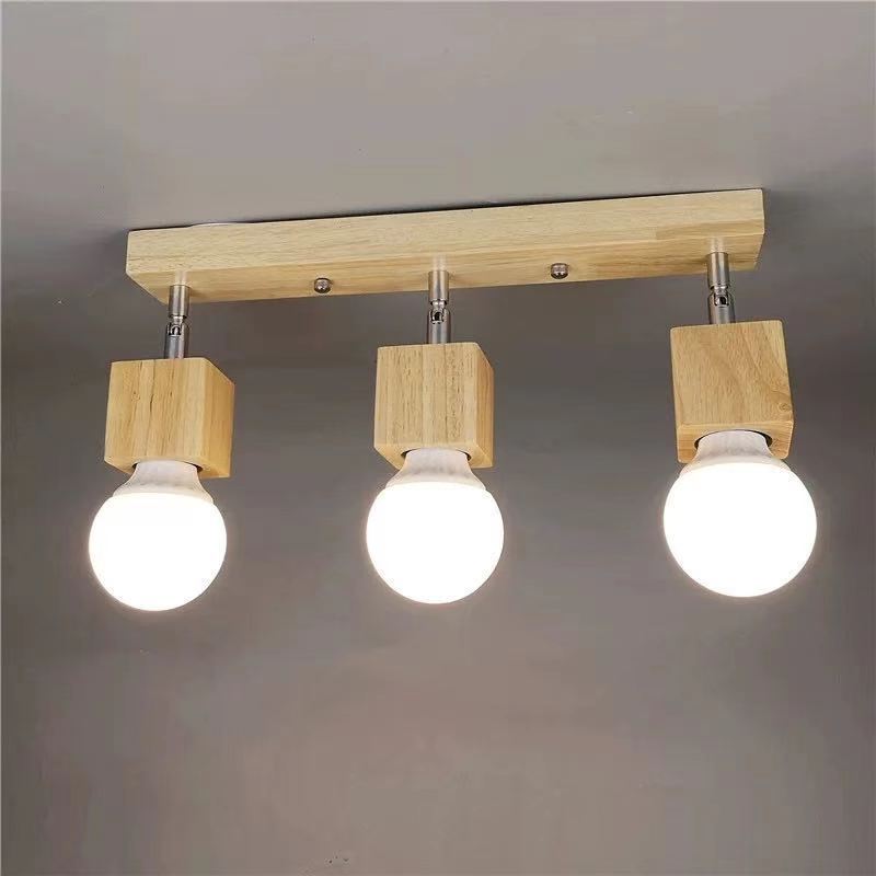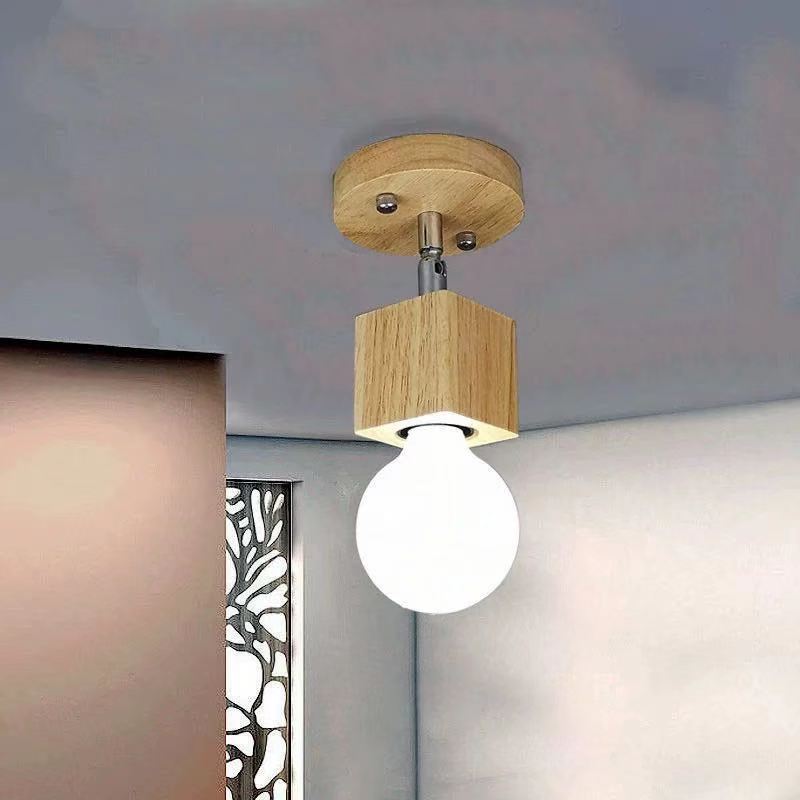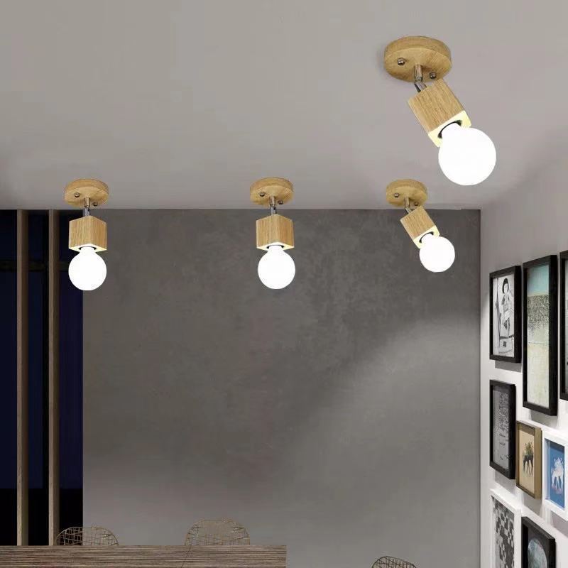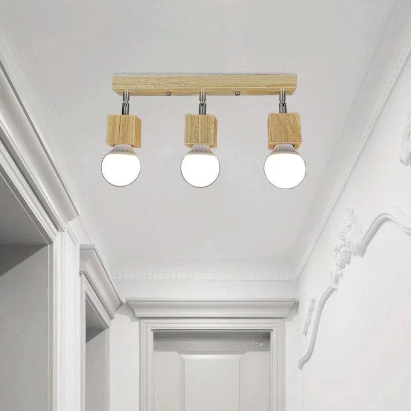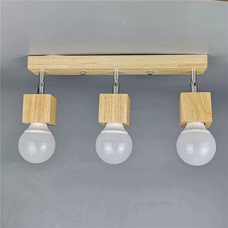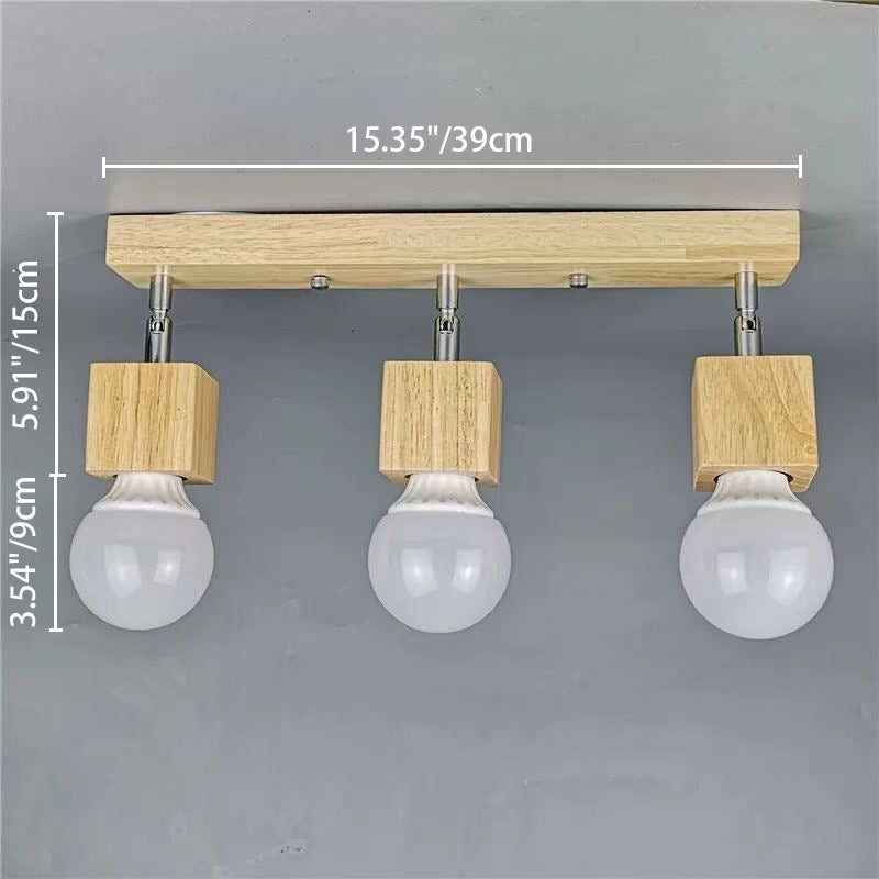 モダンミニマリストスクエアオーブウッド1/3ライトセミフラッシュマウントシーリングライト寝室用