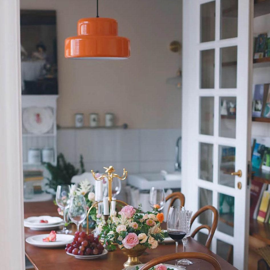 モダンなオレンジの二重層メタル1灯ペンダントライト