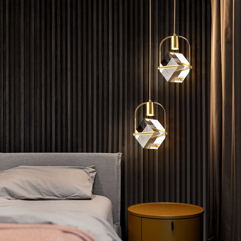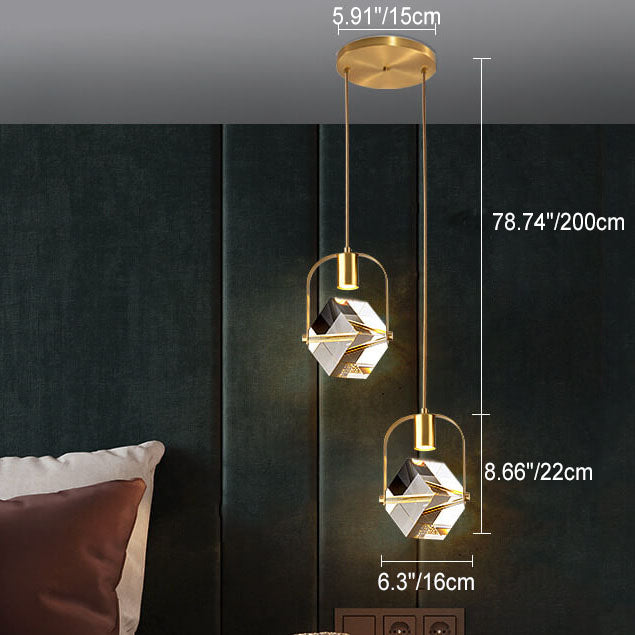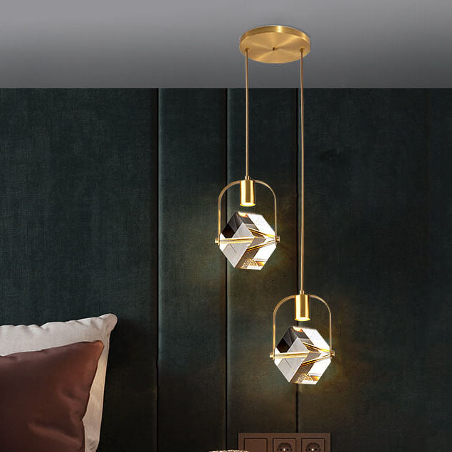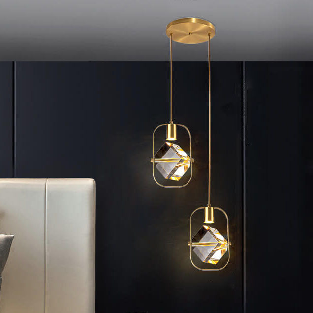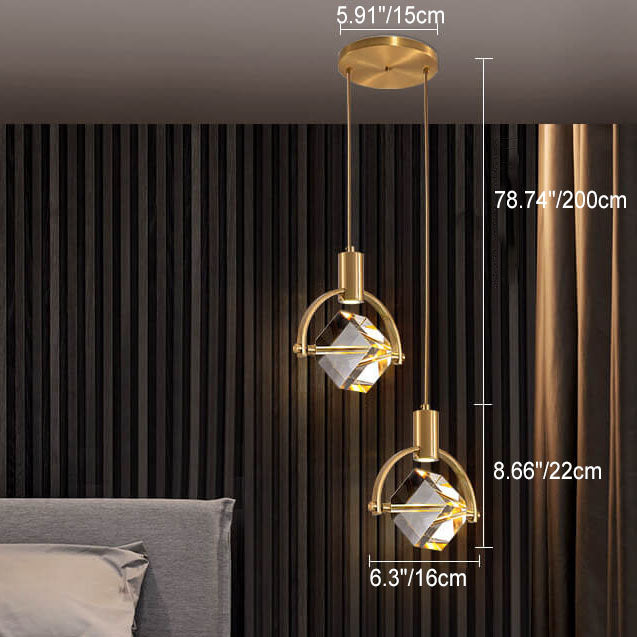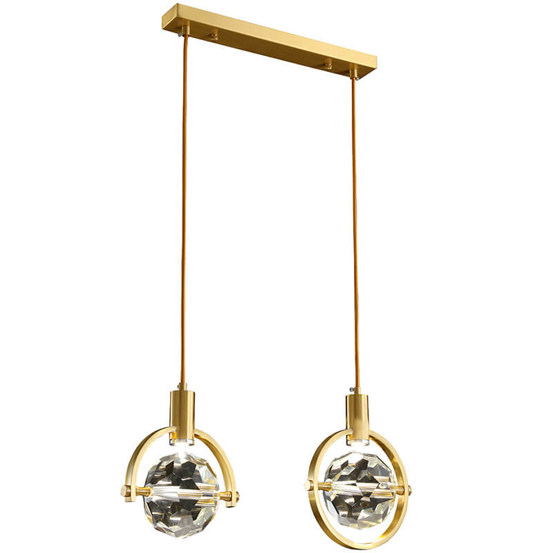 モダンでシンプルな鉄と銅のスクエアサークルロングライン2灯シャンデリア