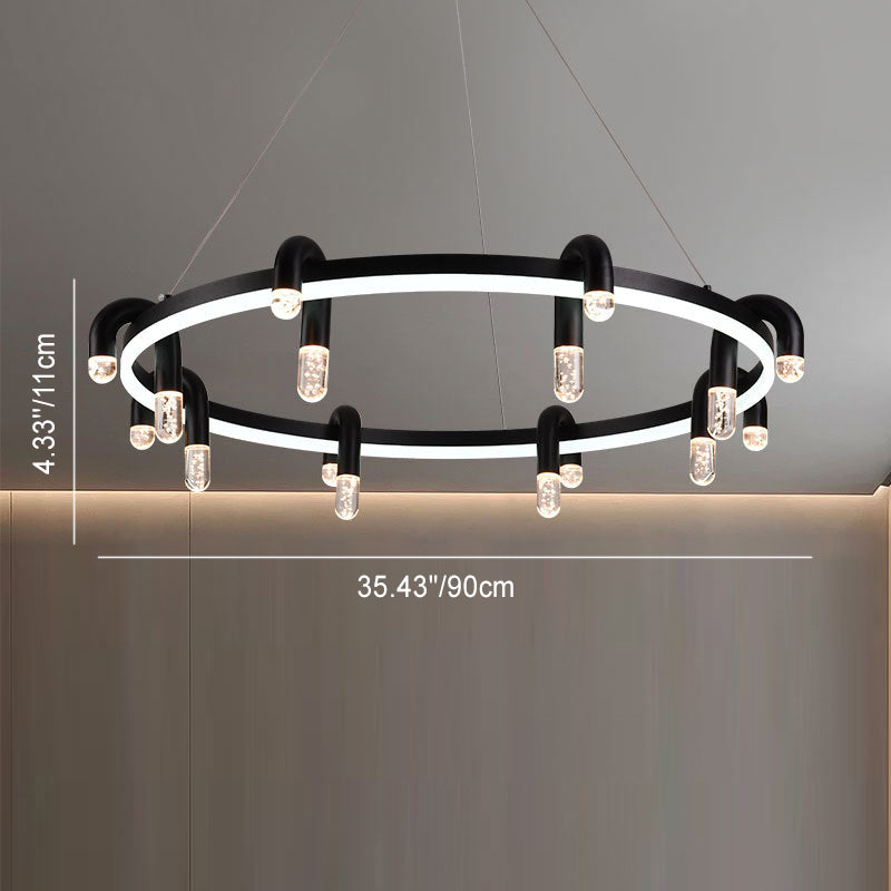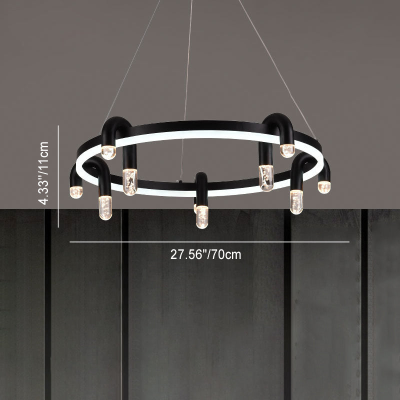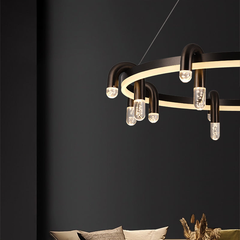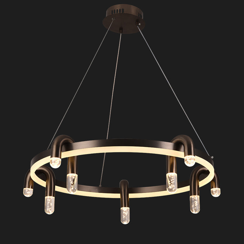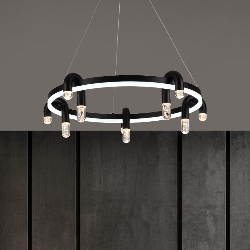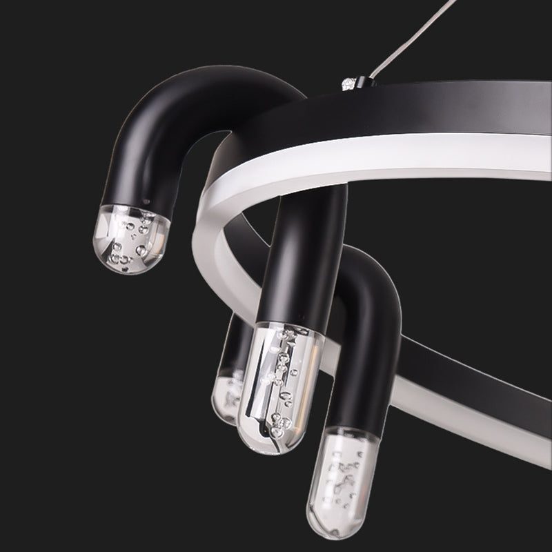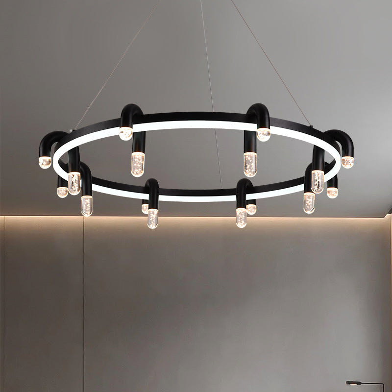 リビングルームに最適な、モダンでシンプルな円形アイアンアルミLEDシャンデリア