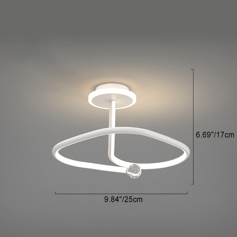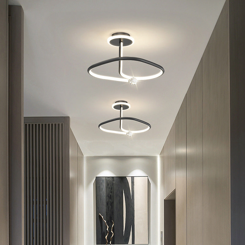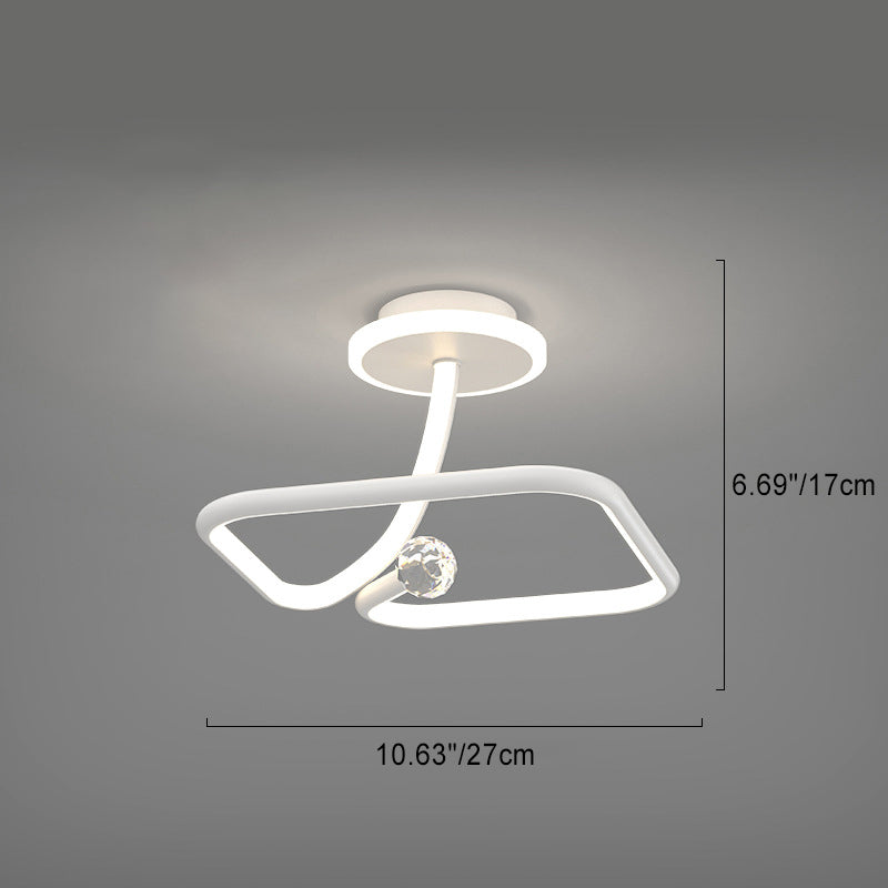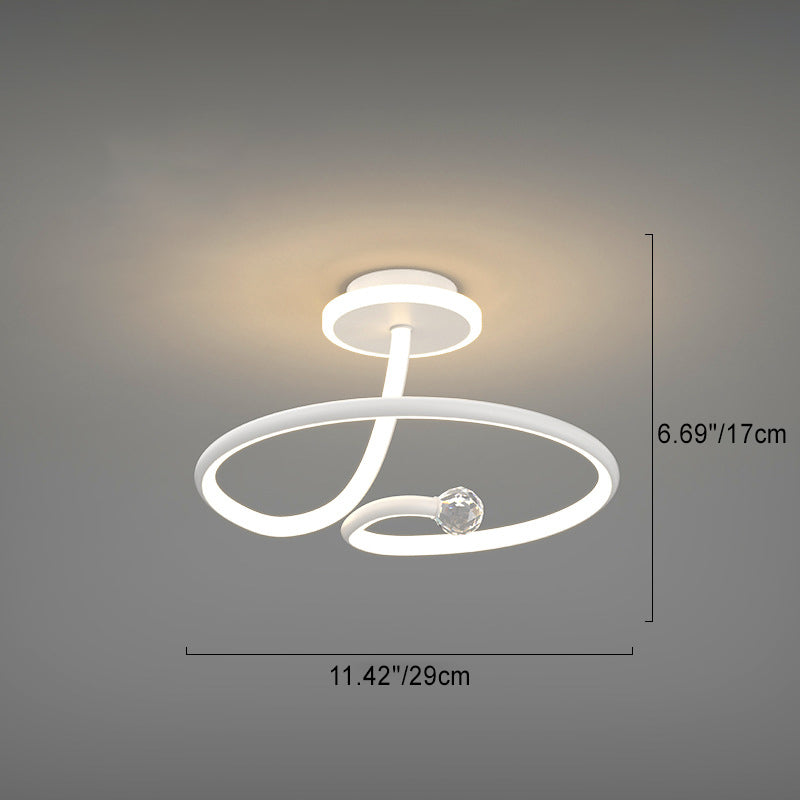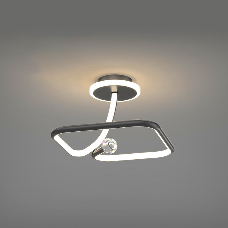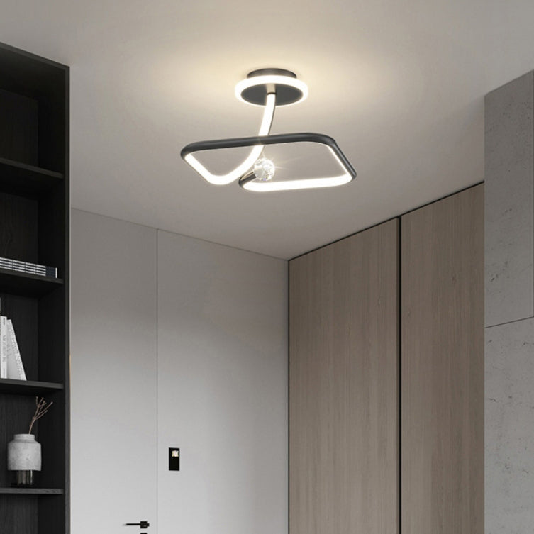 モダンでシンプルな幾何学的な曲線を描くアルミアクリルランプシェードとアイアン製LEDセミフラッシュマウント天井照明(廊下用)