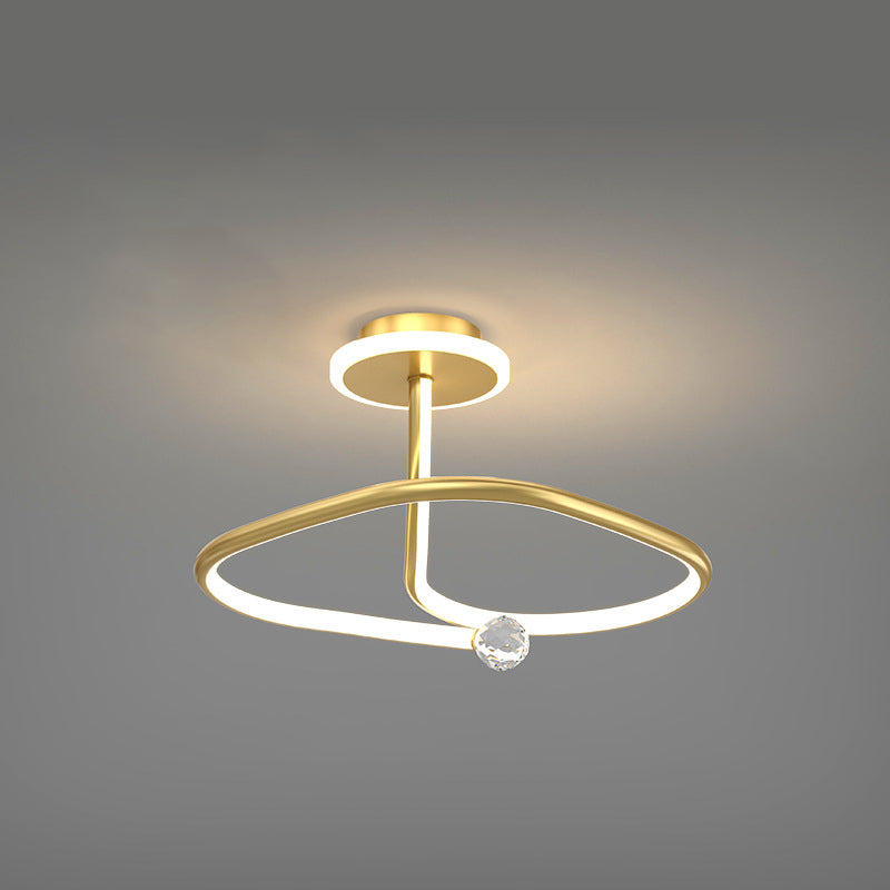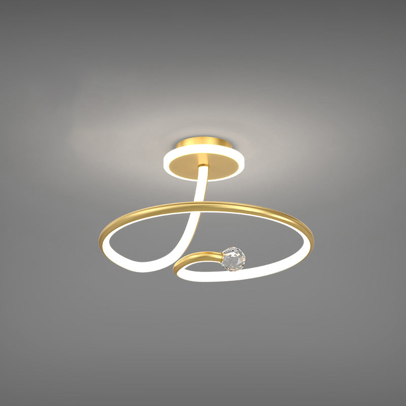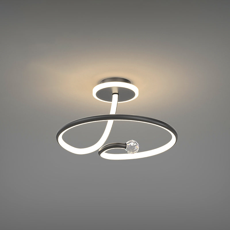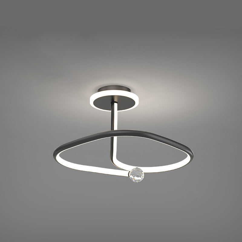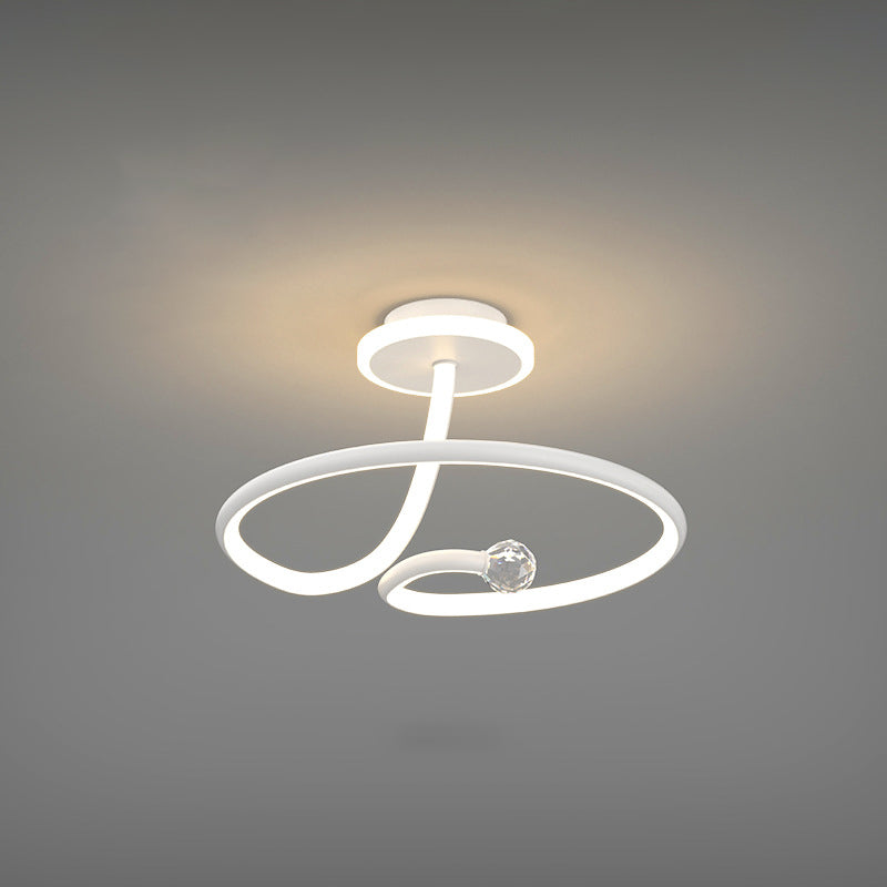 モダンでシンプルな幾何学的な曲線を描くアルミアクリルランプシェードとアイアン製LEDセミフラッシュマウント天井照明(廊下用)