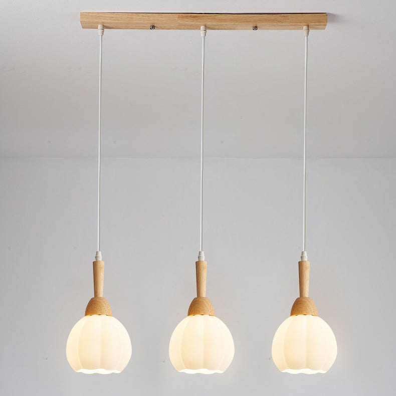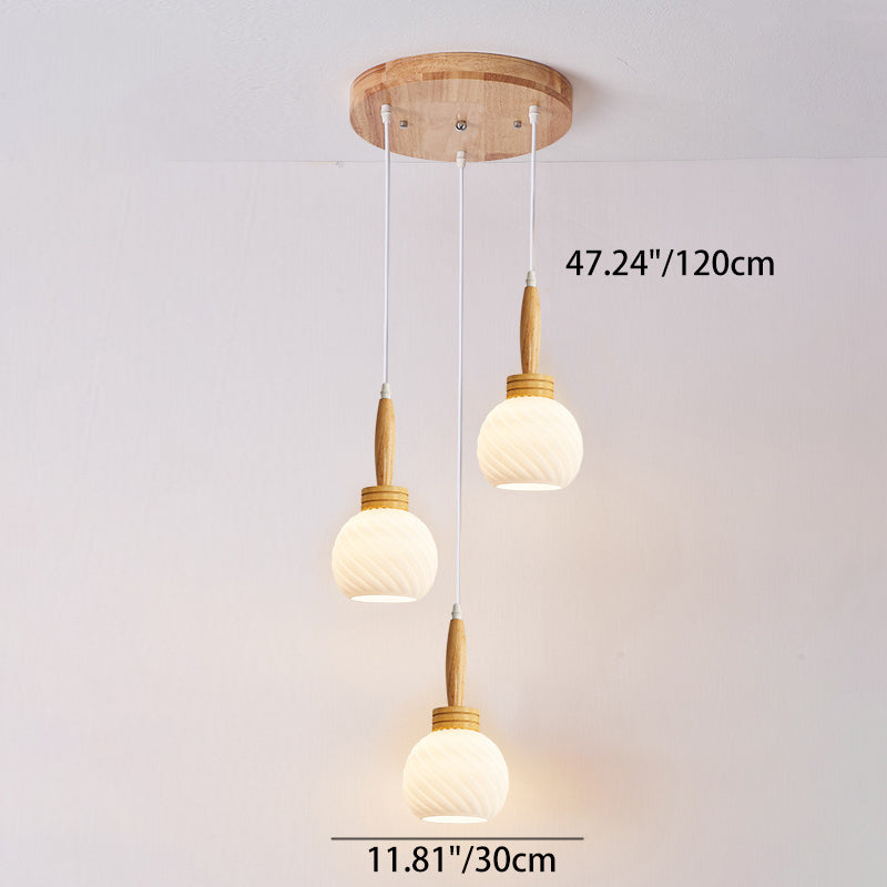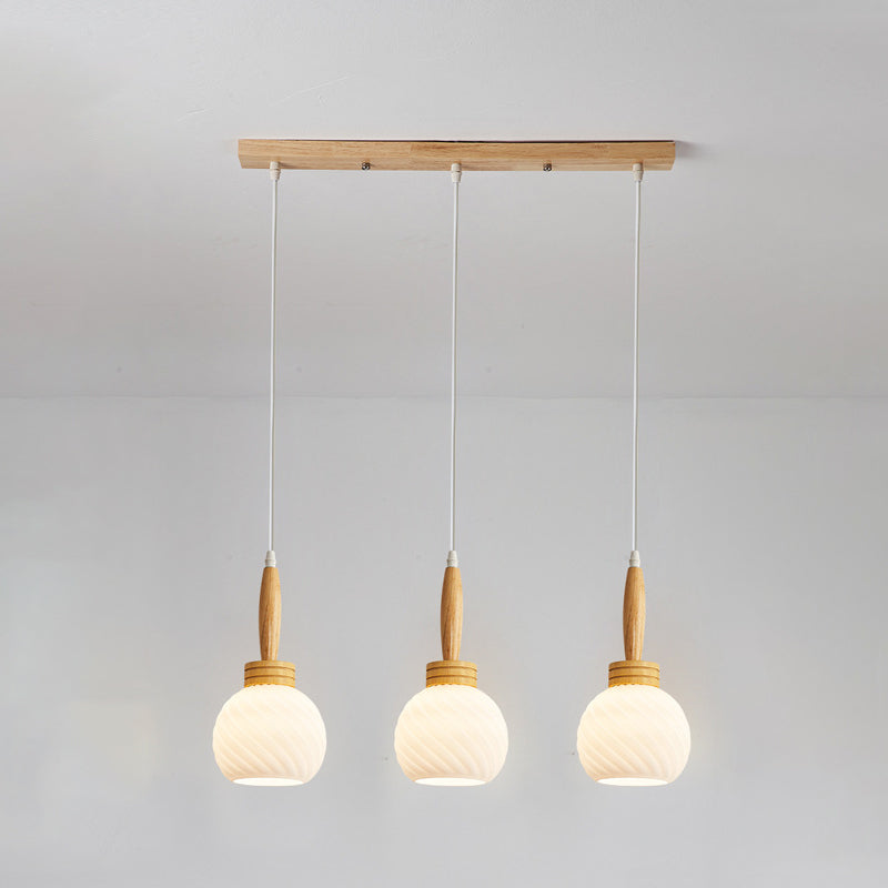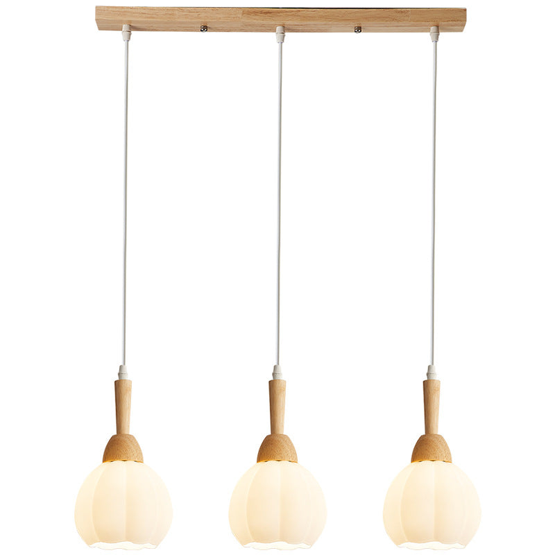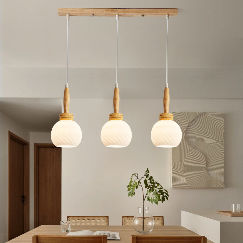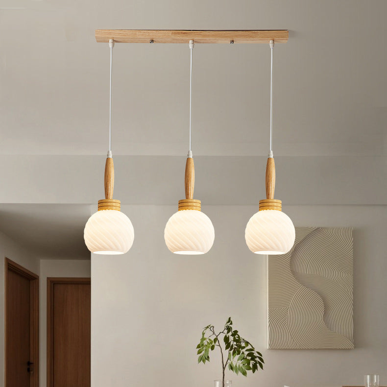 モダンでシンプルなロングプレートラウンドオーブガラス木製3ライトシャンデリアリビングルーム用