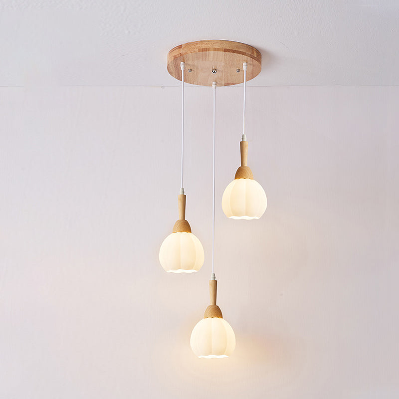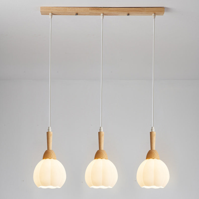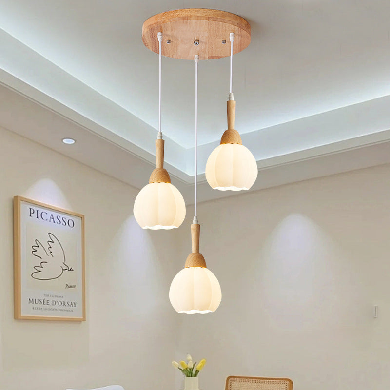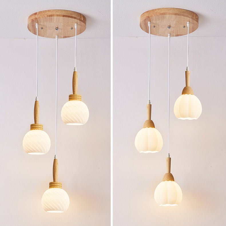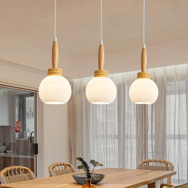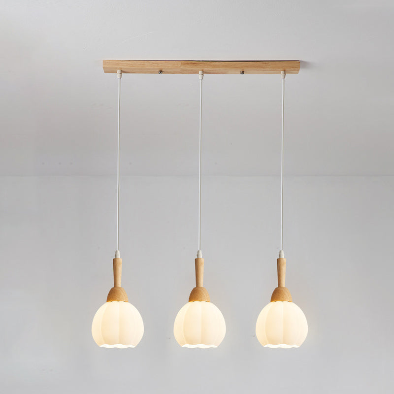 モダンでシンプルなロングプレートラウンドオーブガラス木製3ライトシャンデリアリビングルーム用