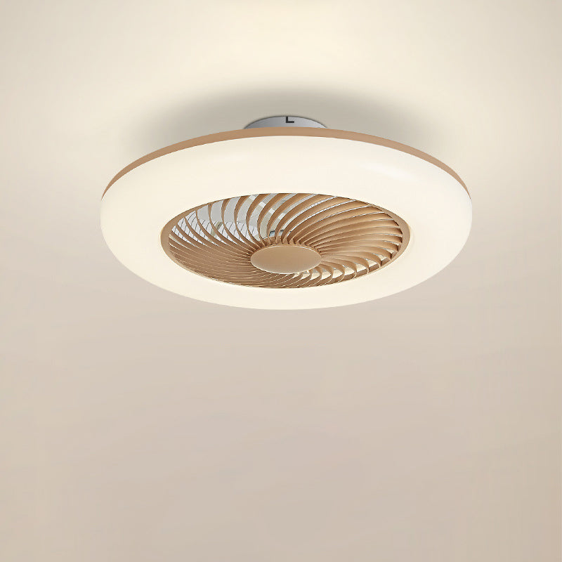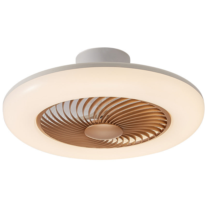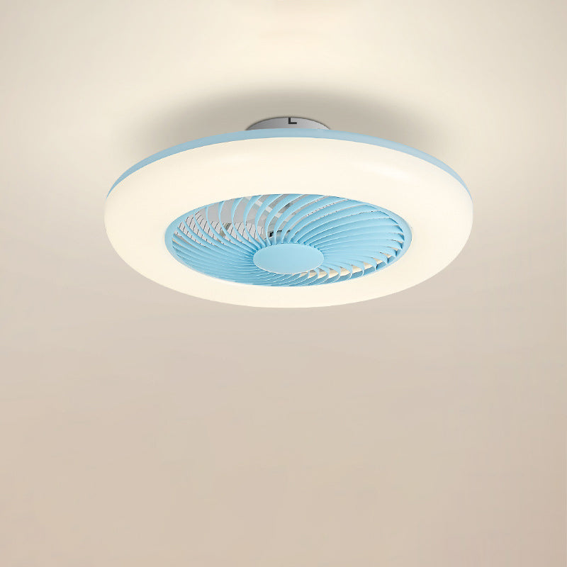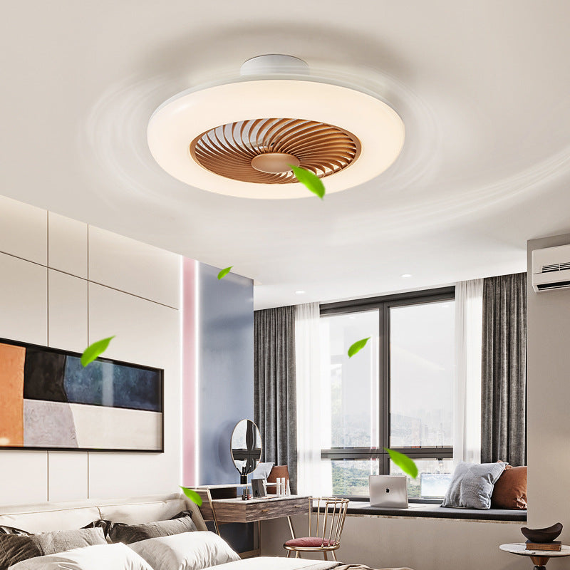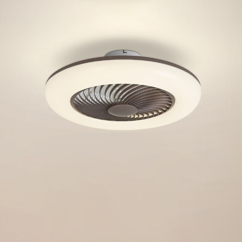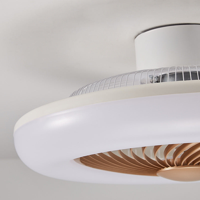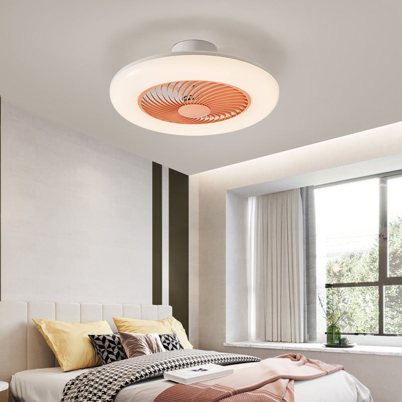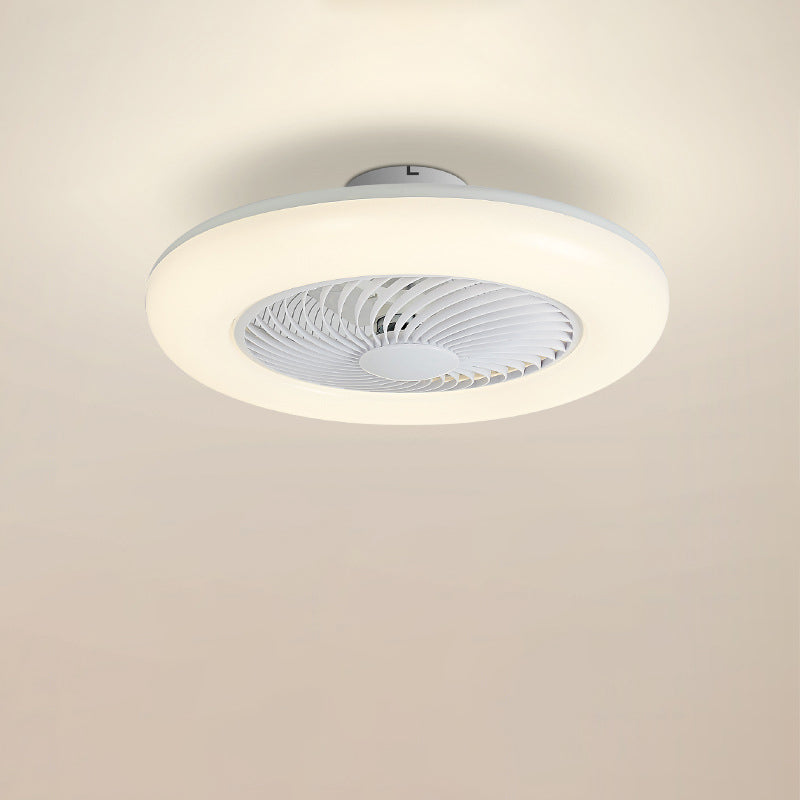 モダンでシンプルなラウンド型アイアンABSアクリルLEDセミフラッシュマウントシーリングファンライト(寝室用)