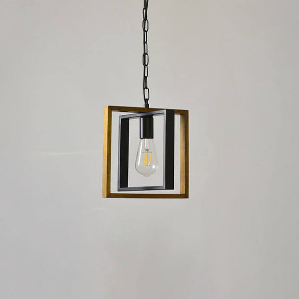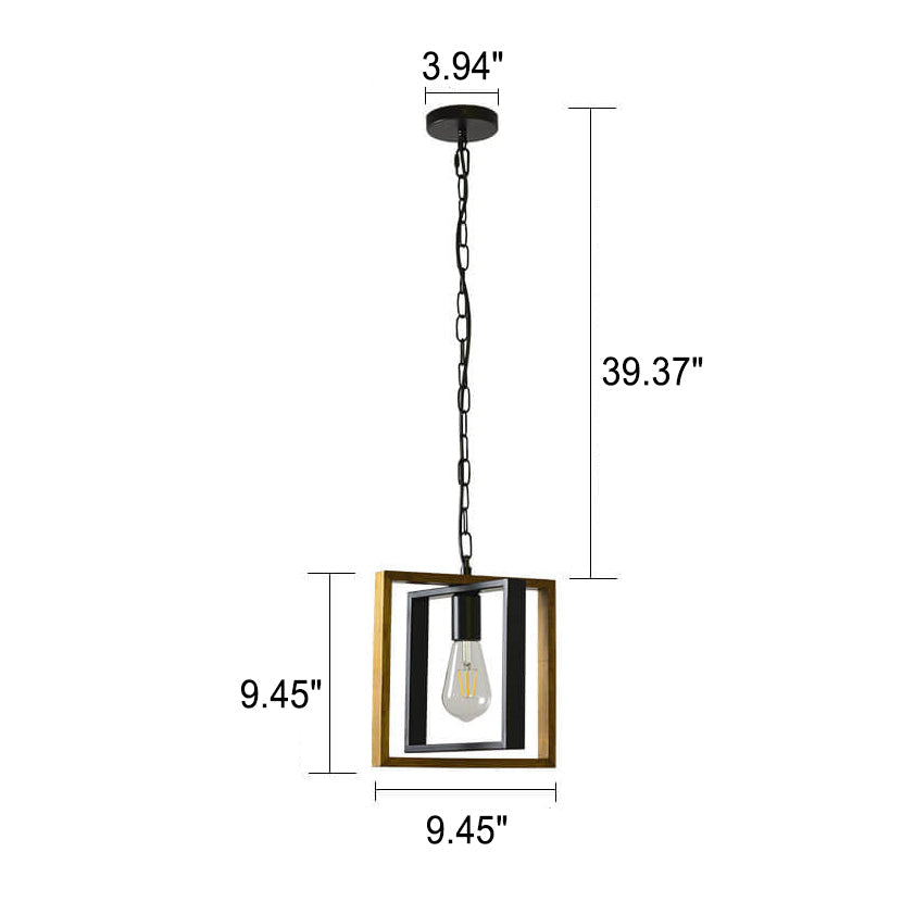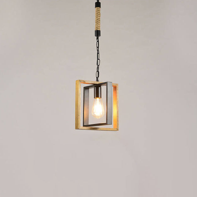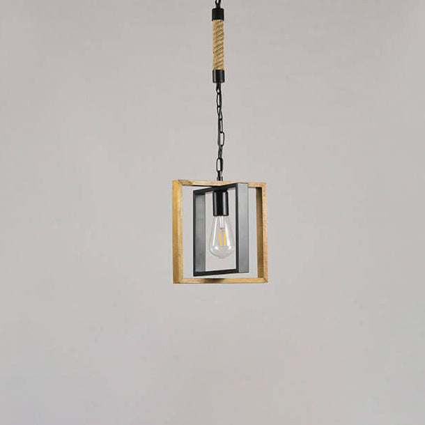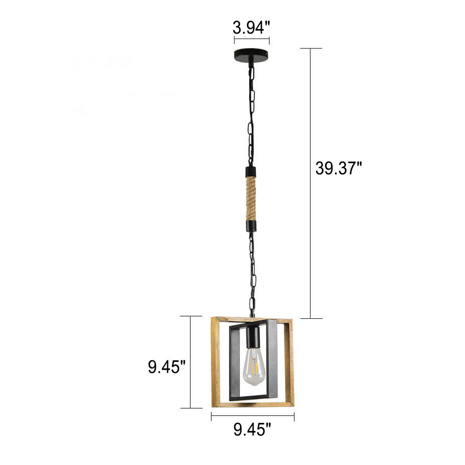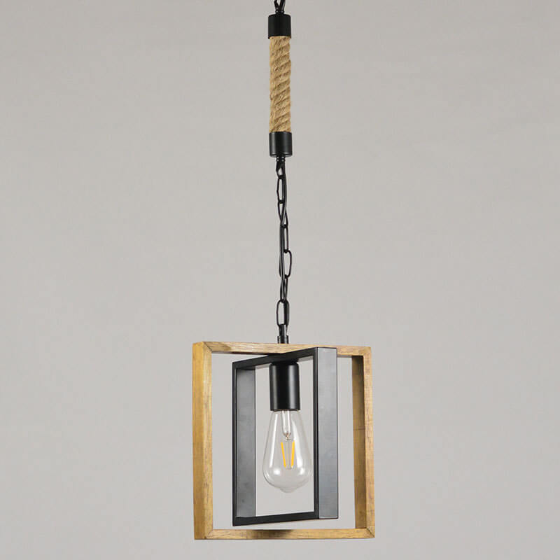 モダンヴィンテージインダストリアル長方形撚糸鉄製1灯ペンダントライト