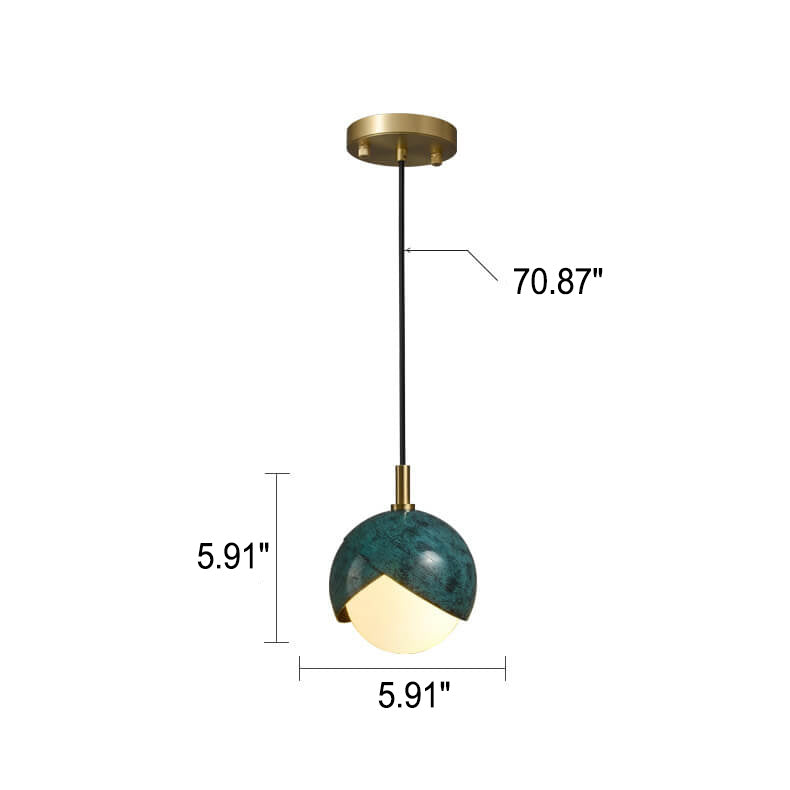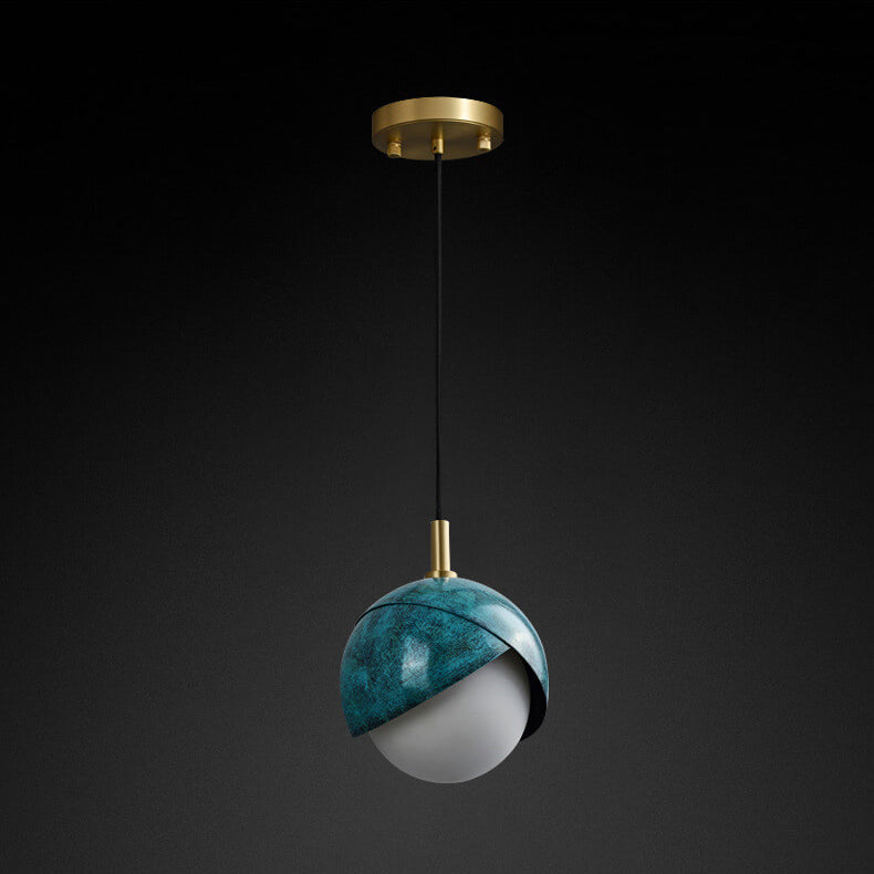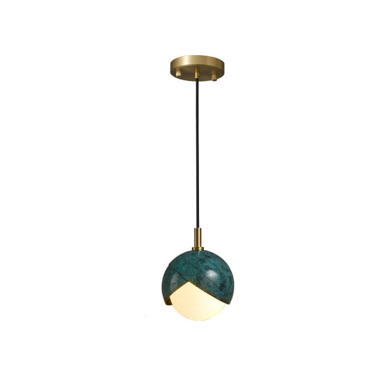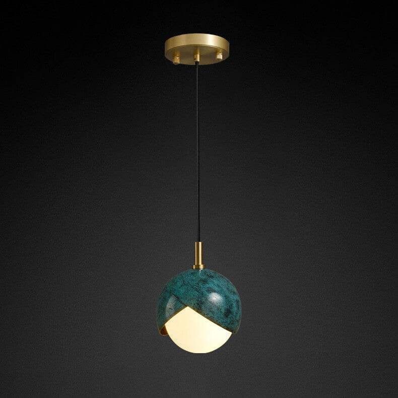 北欧風エメラルドガラスオーブ真鍮1灯ペンダントライト