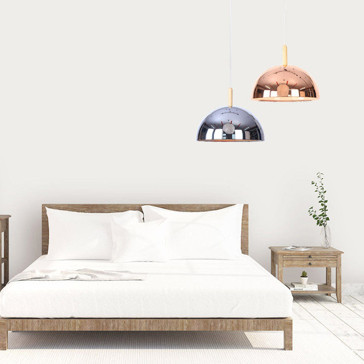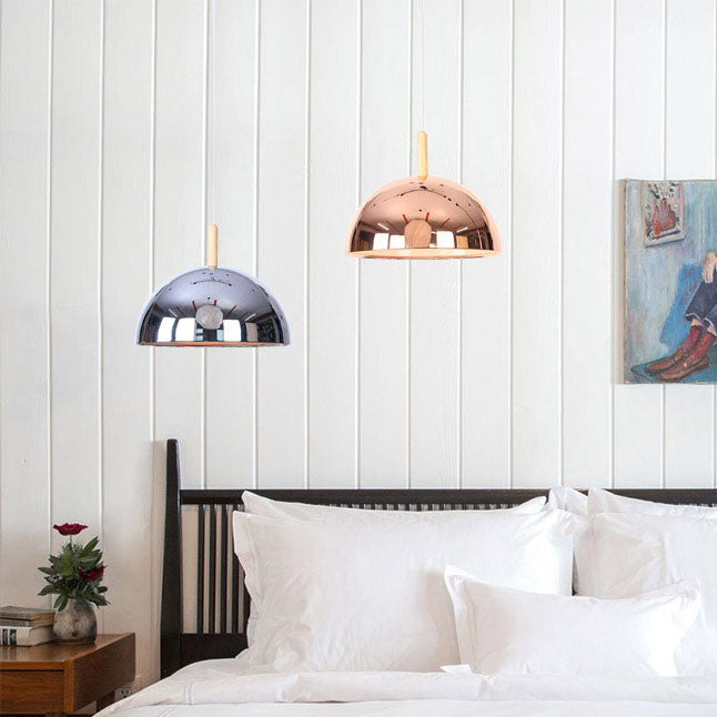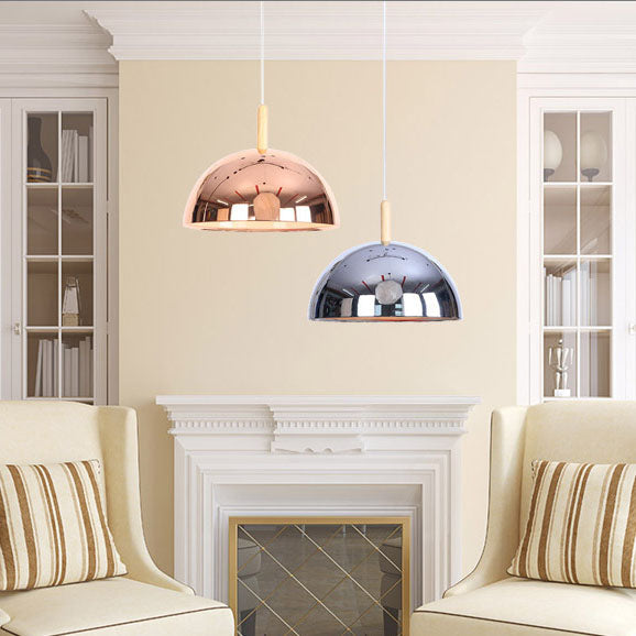 北欧風シンプルアイアンドーム木製1灯ペンダントライト