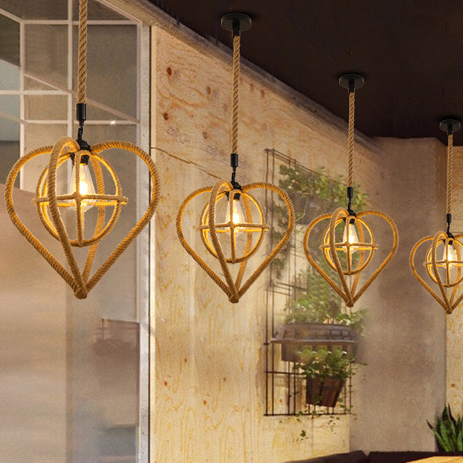 レトロでクリエイティブな麻縄編みの1灯ペンダントライト