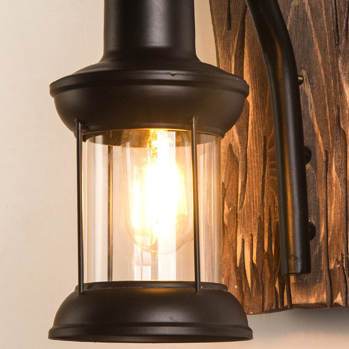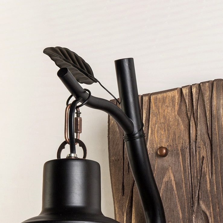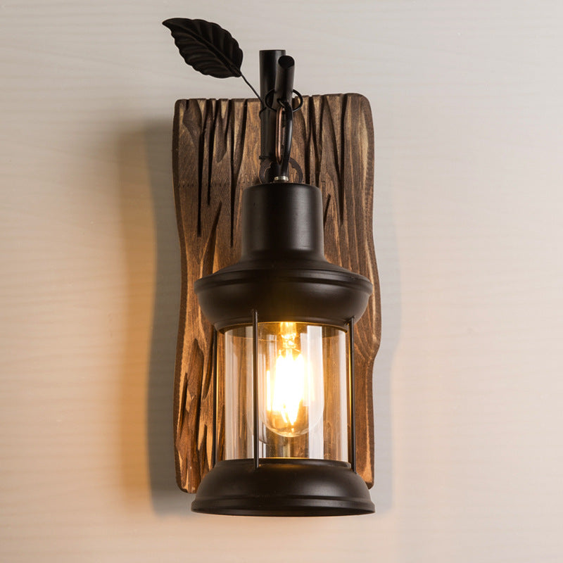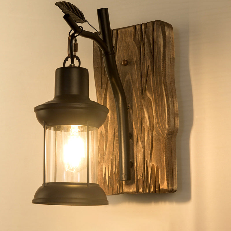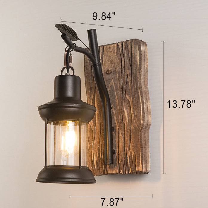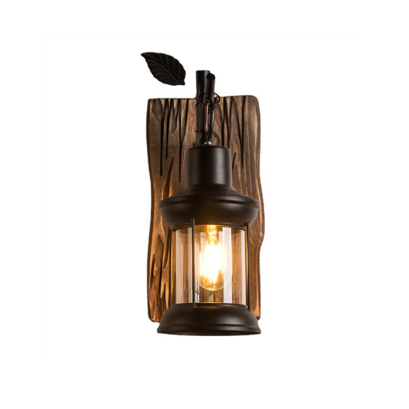 レトロでクリエイティブな木の枝と葉のランタン木製1灯壁取り付け用燭台ランプ