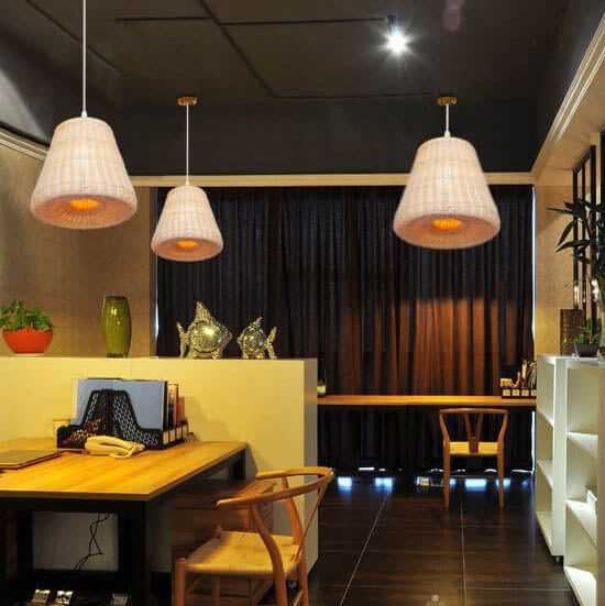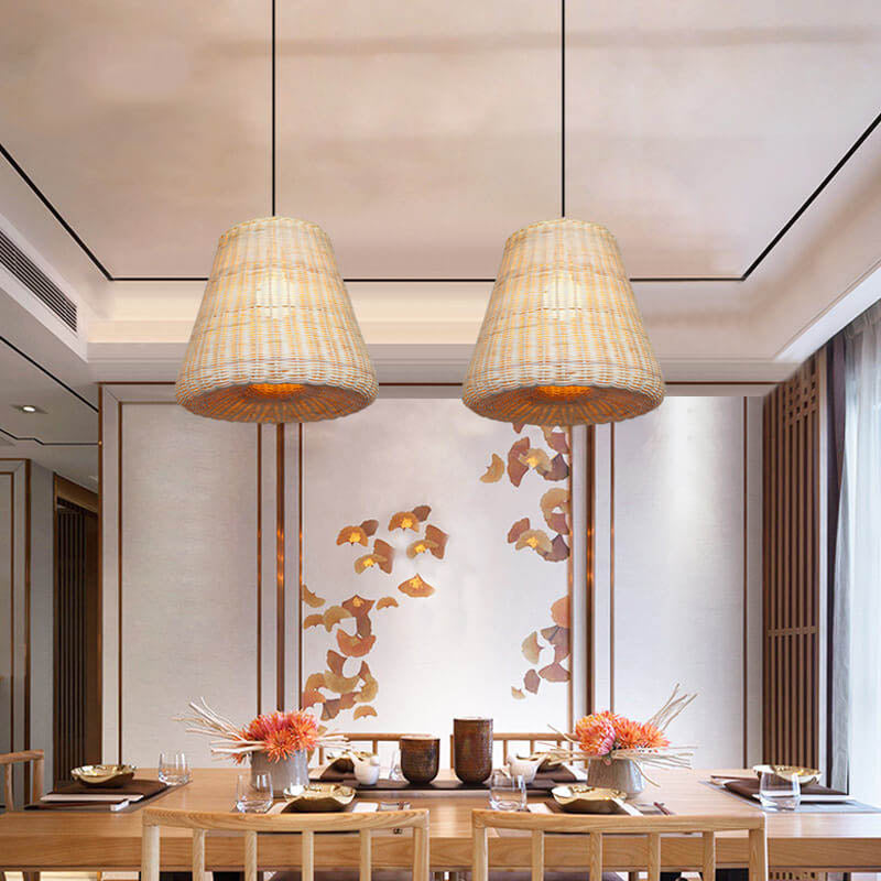 素朴な籐編みシリンダードーム1灯ペンダントライト