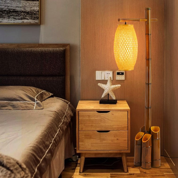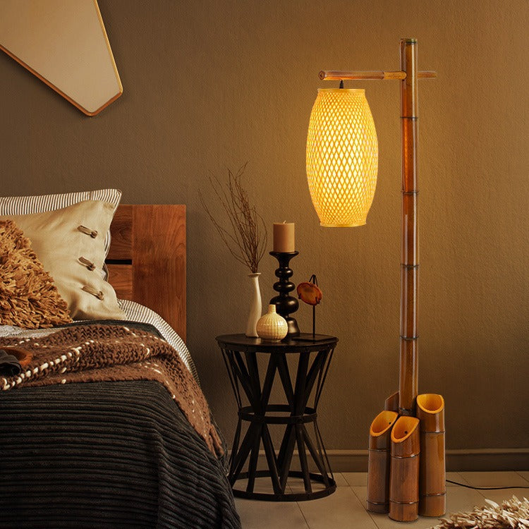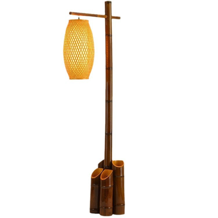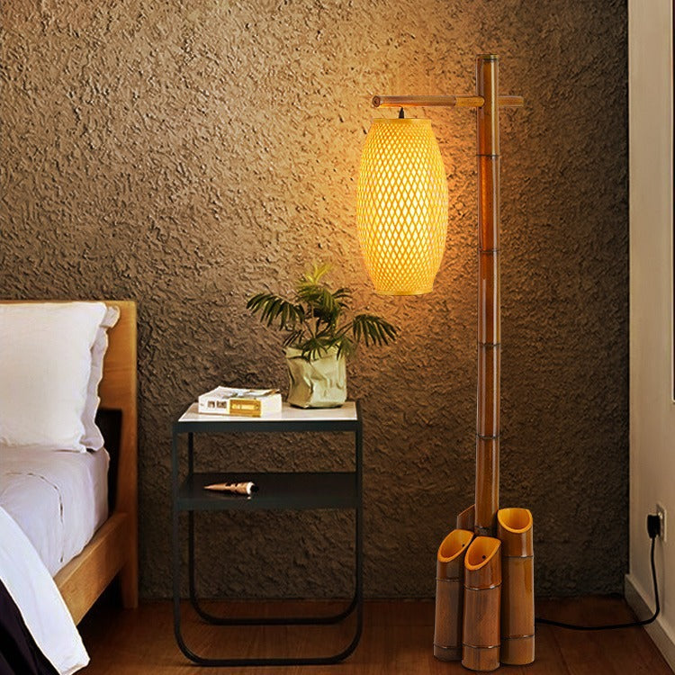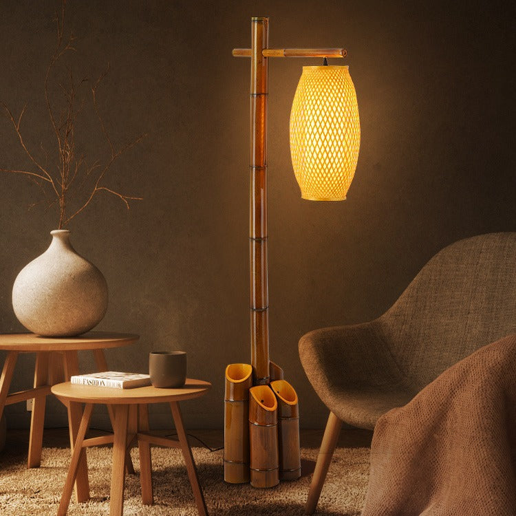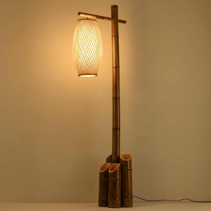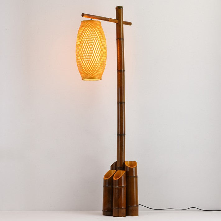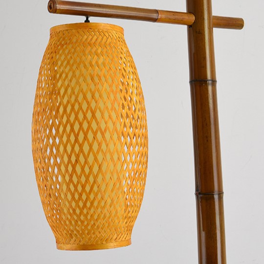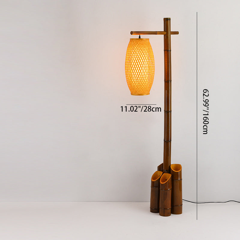 Traditional Chinese Bamboo Tube Weaving Lantern Shade 1-Light Standing Floor Lamp For Dining Room
